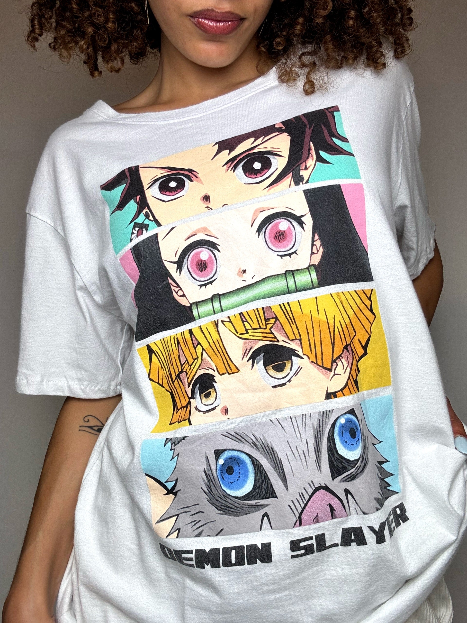 Tee shirt blanc DEMON SLAYER M vintage