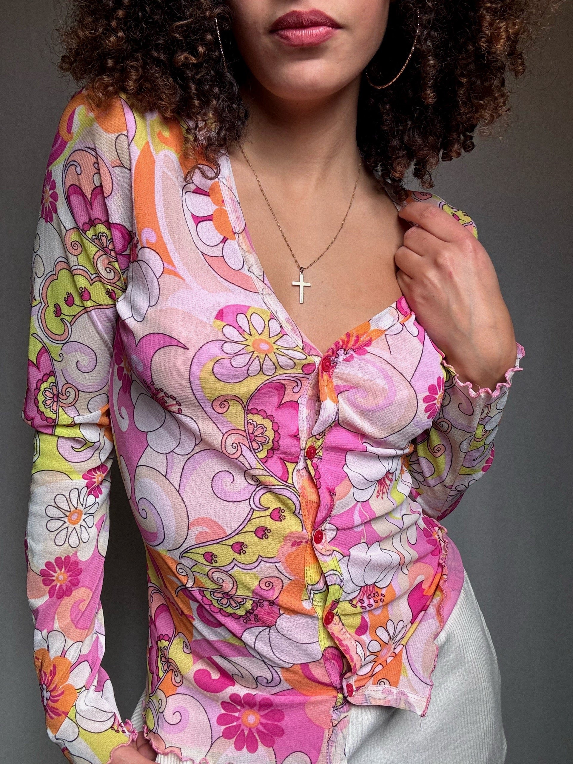Top en mesh imprimé roses M vintage
