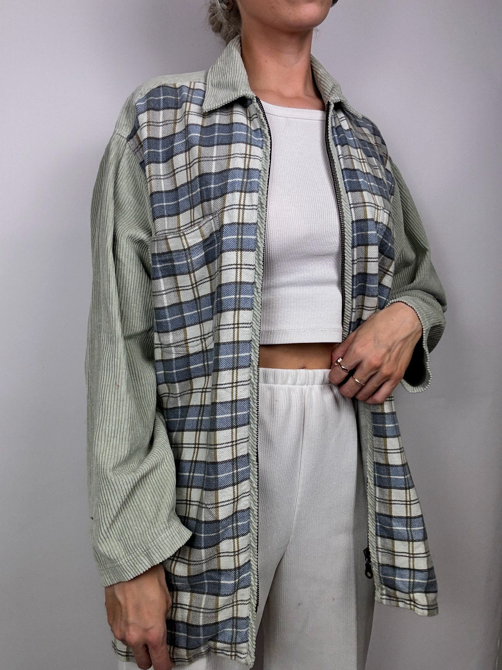 Vintage blue and gray plaid shirt with mesh sleeves