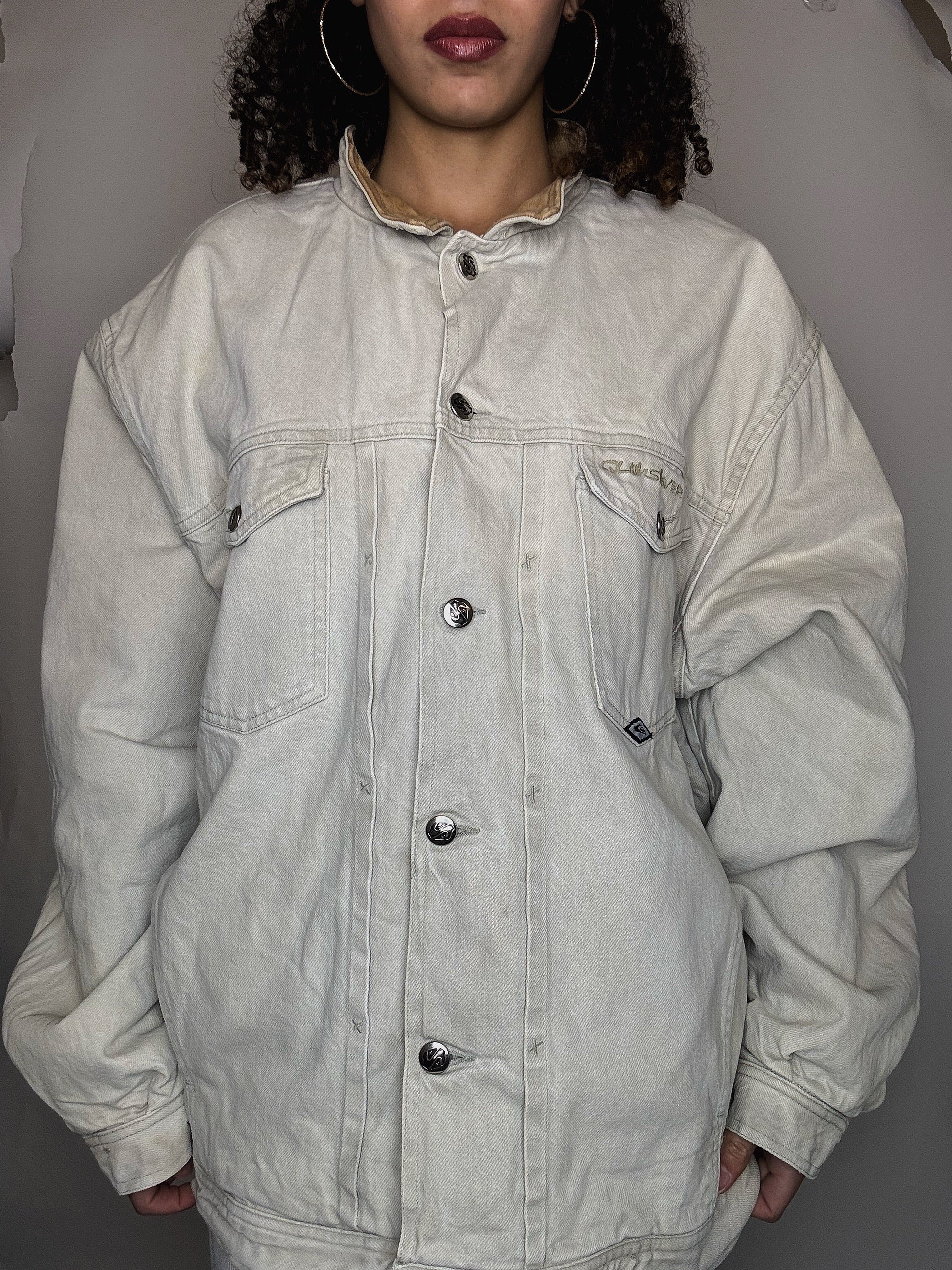 Veste doublée beige avec col en cuir XL vintage