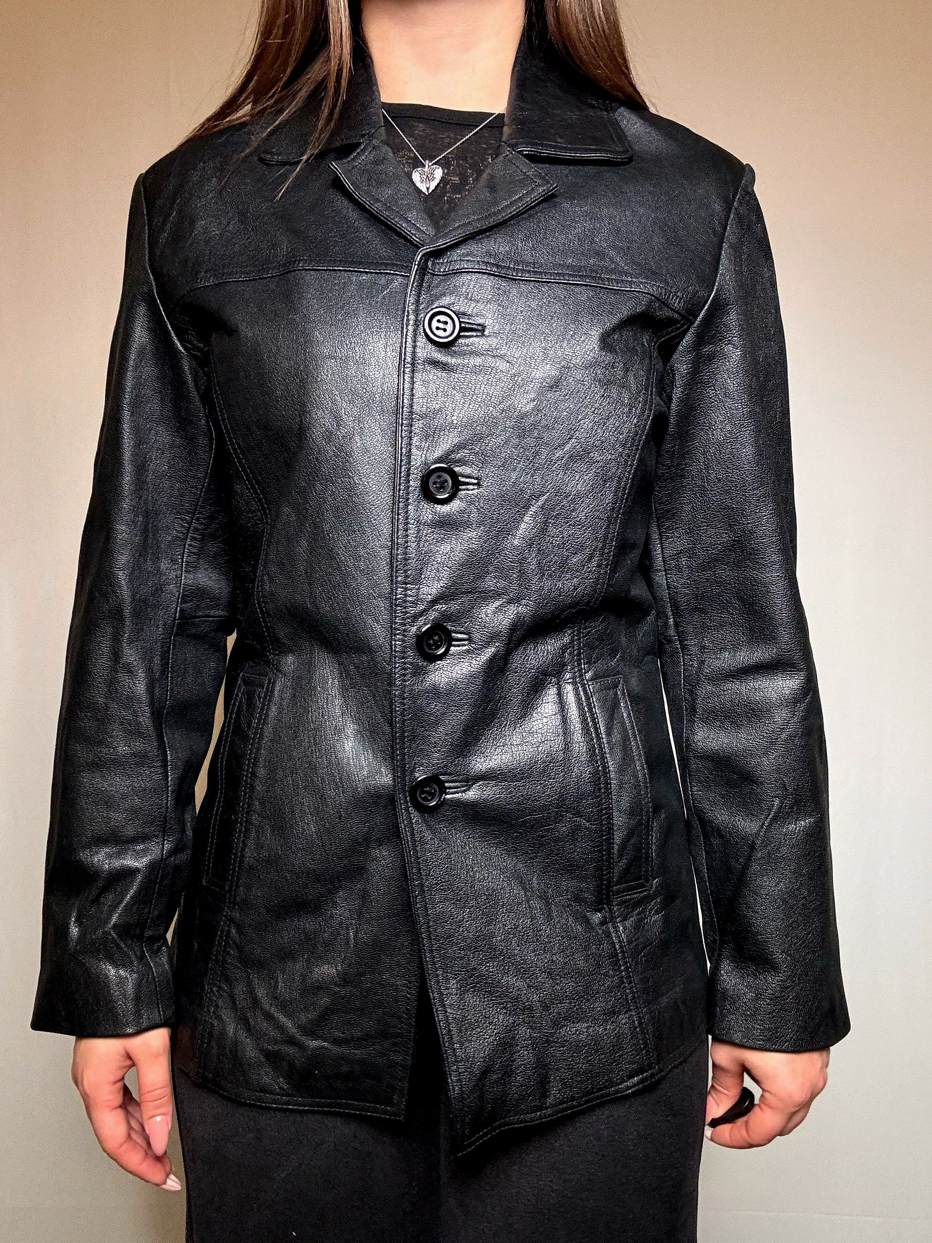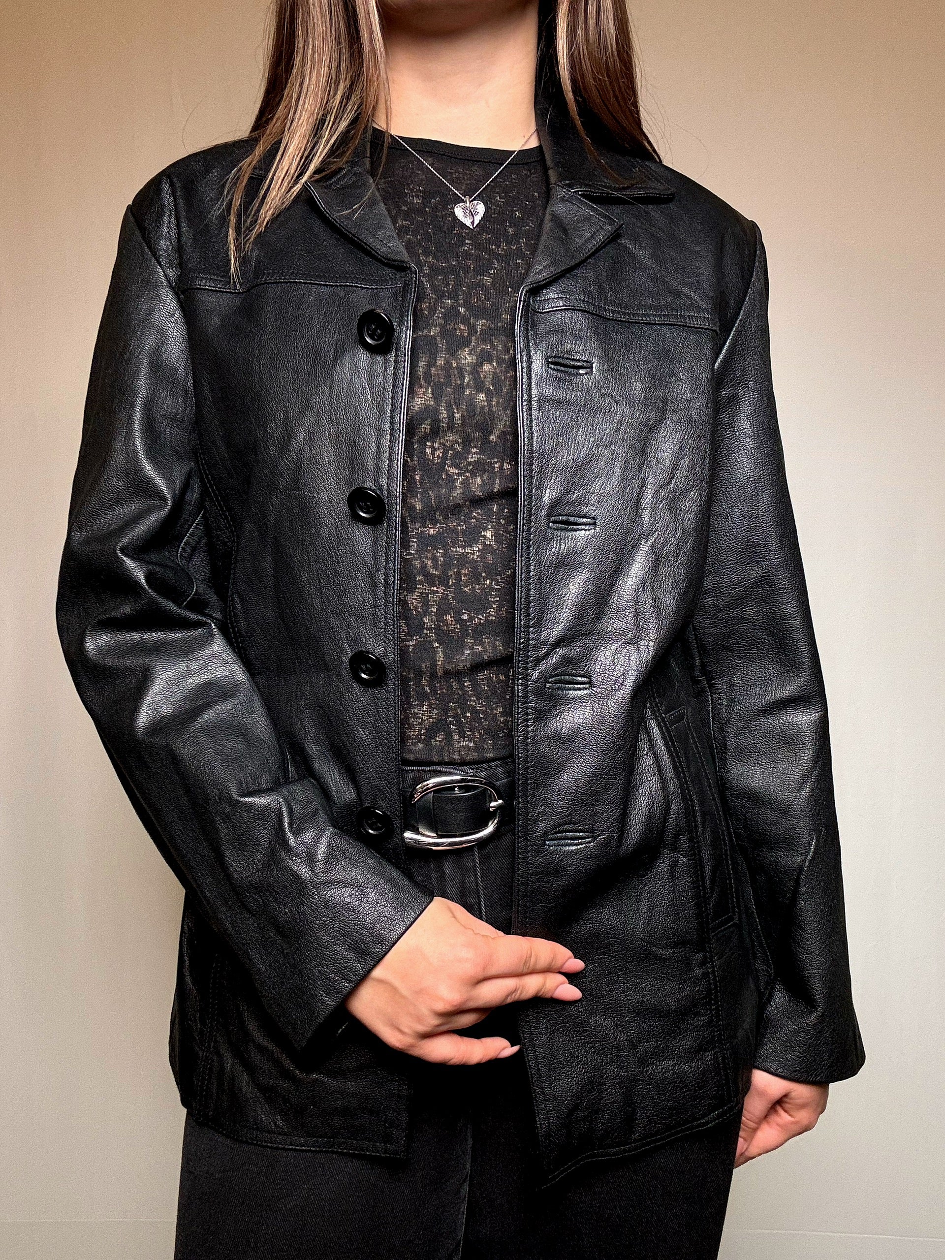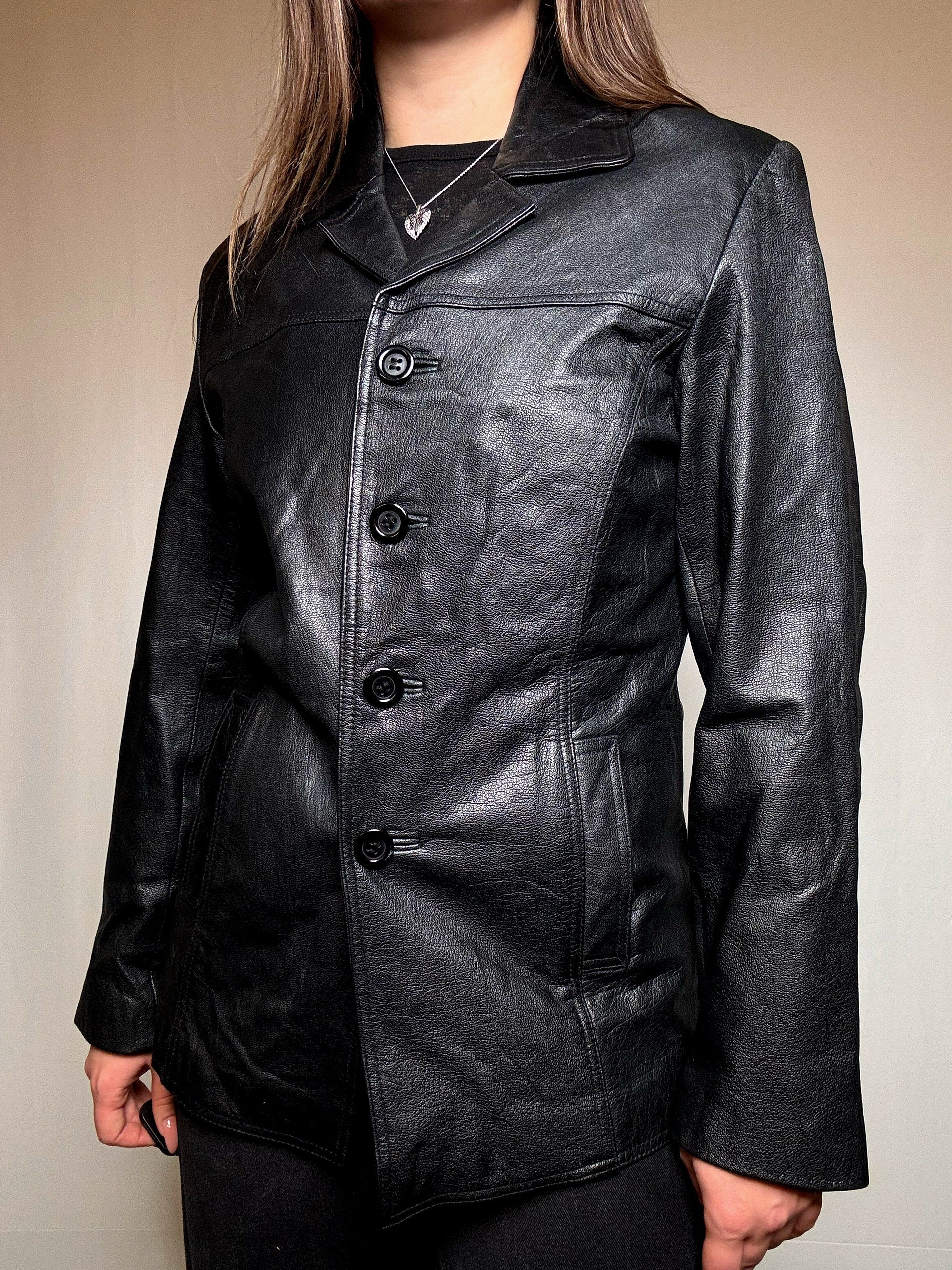 Veste en cuir noir M vintage