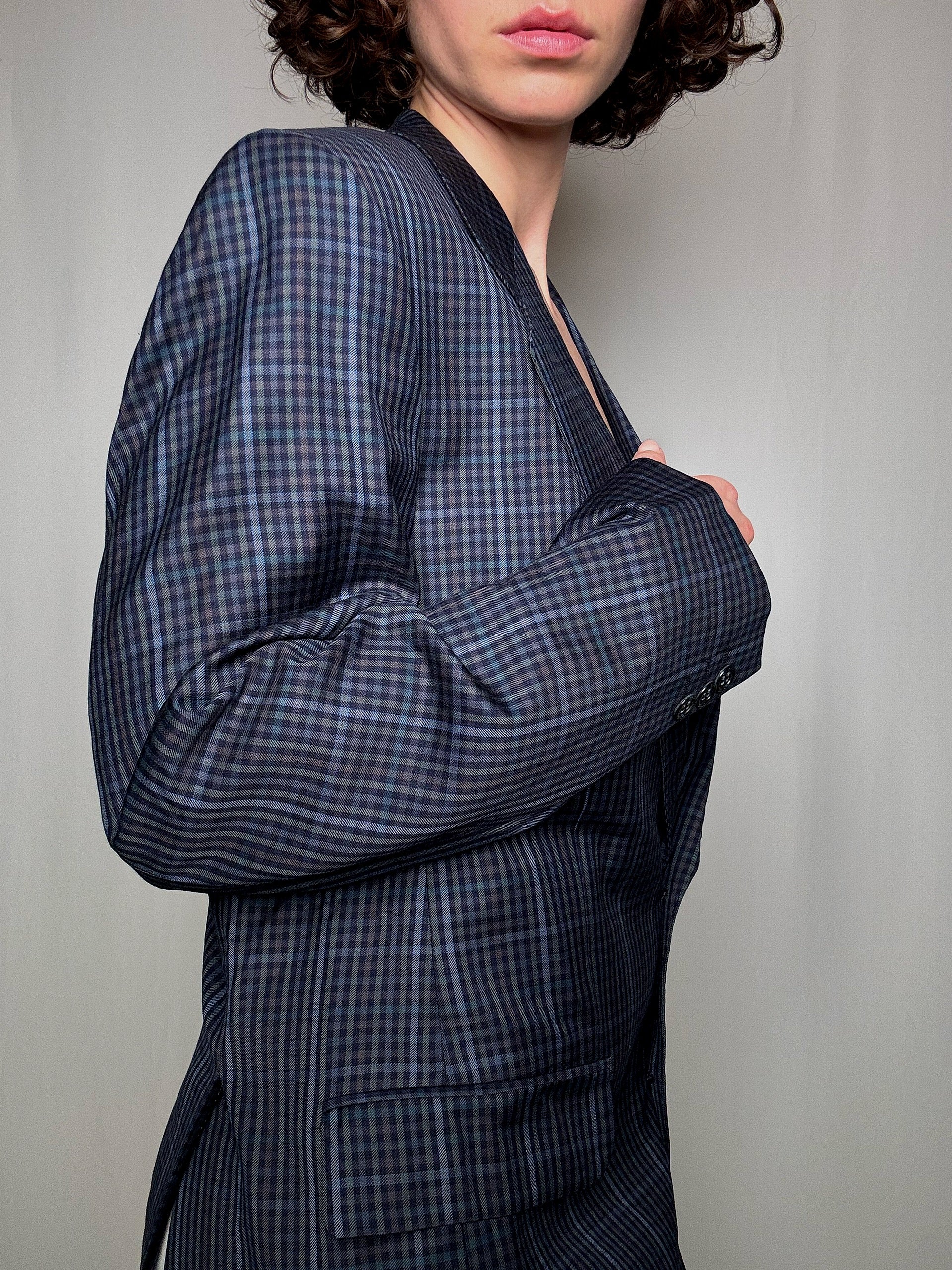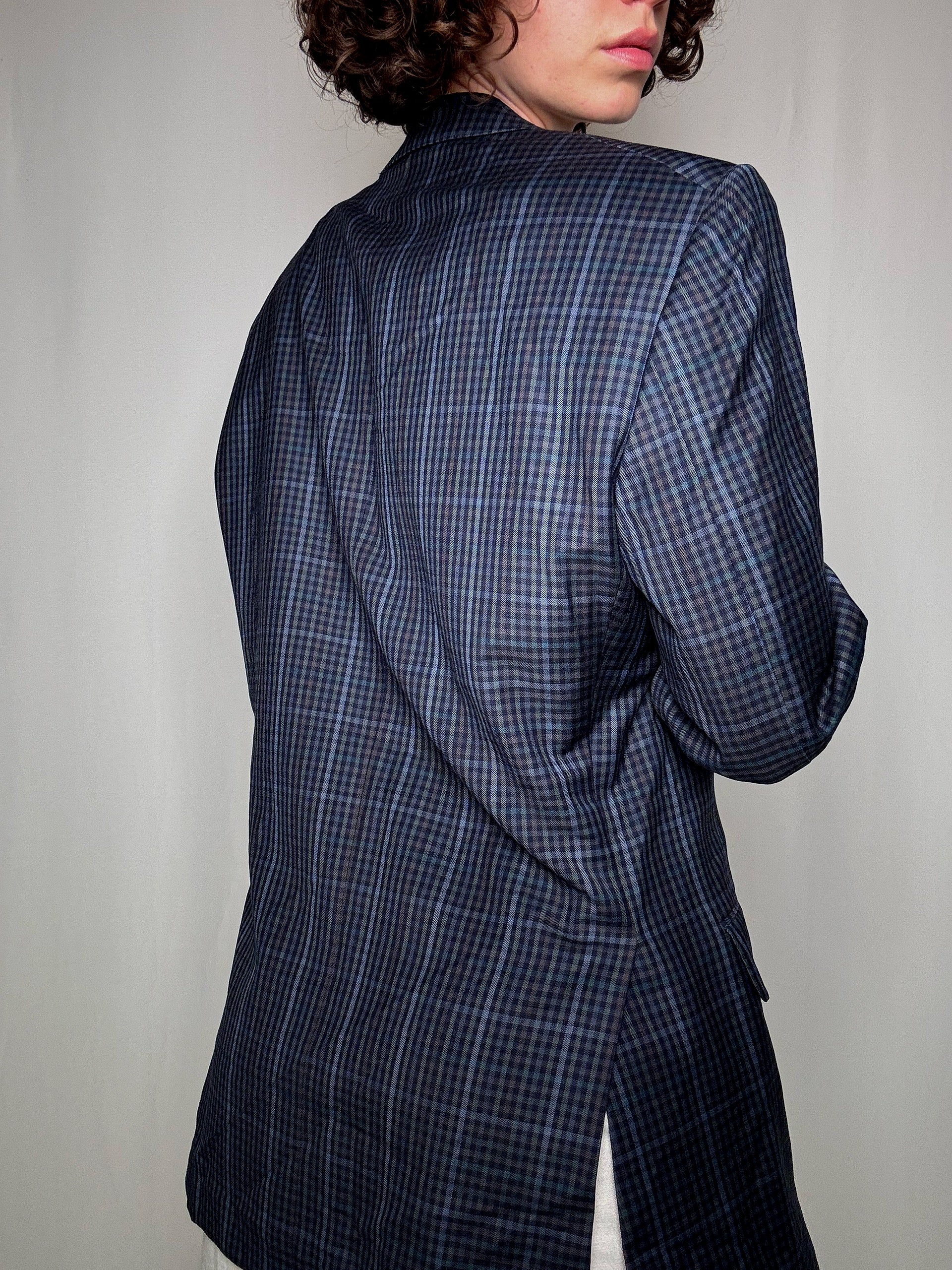 Blazer à carreaux bleu L vintage