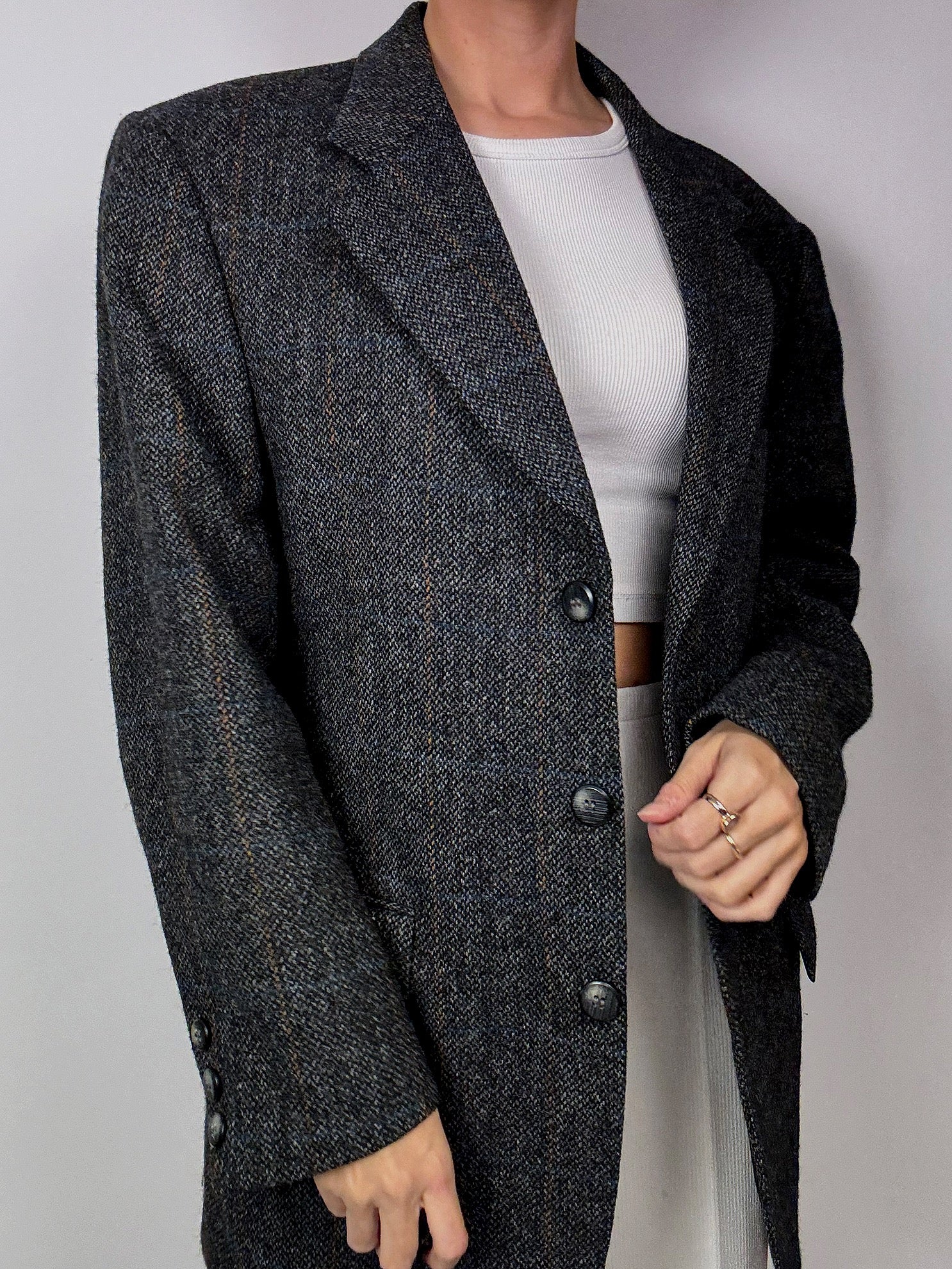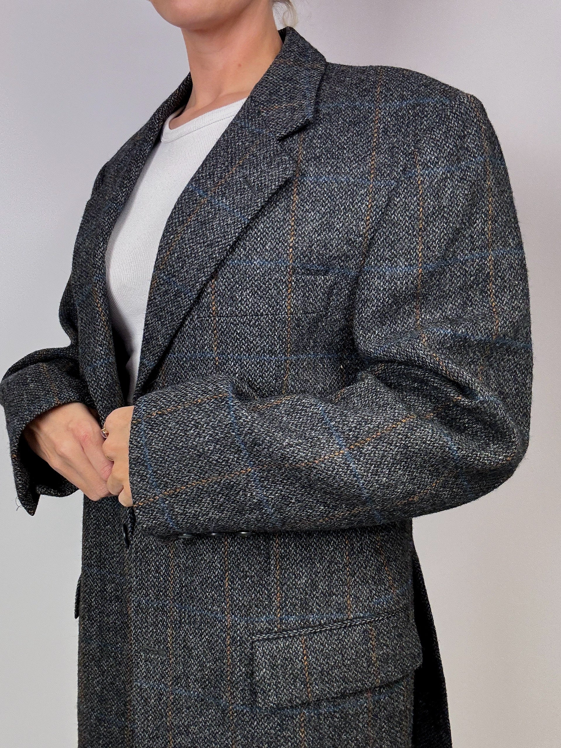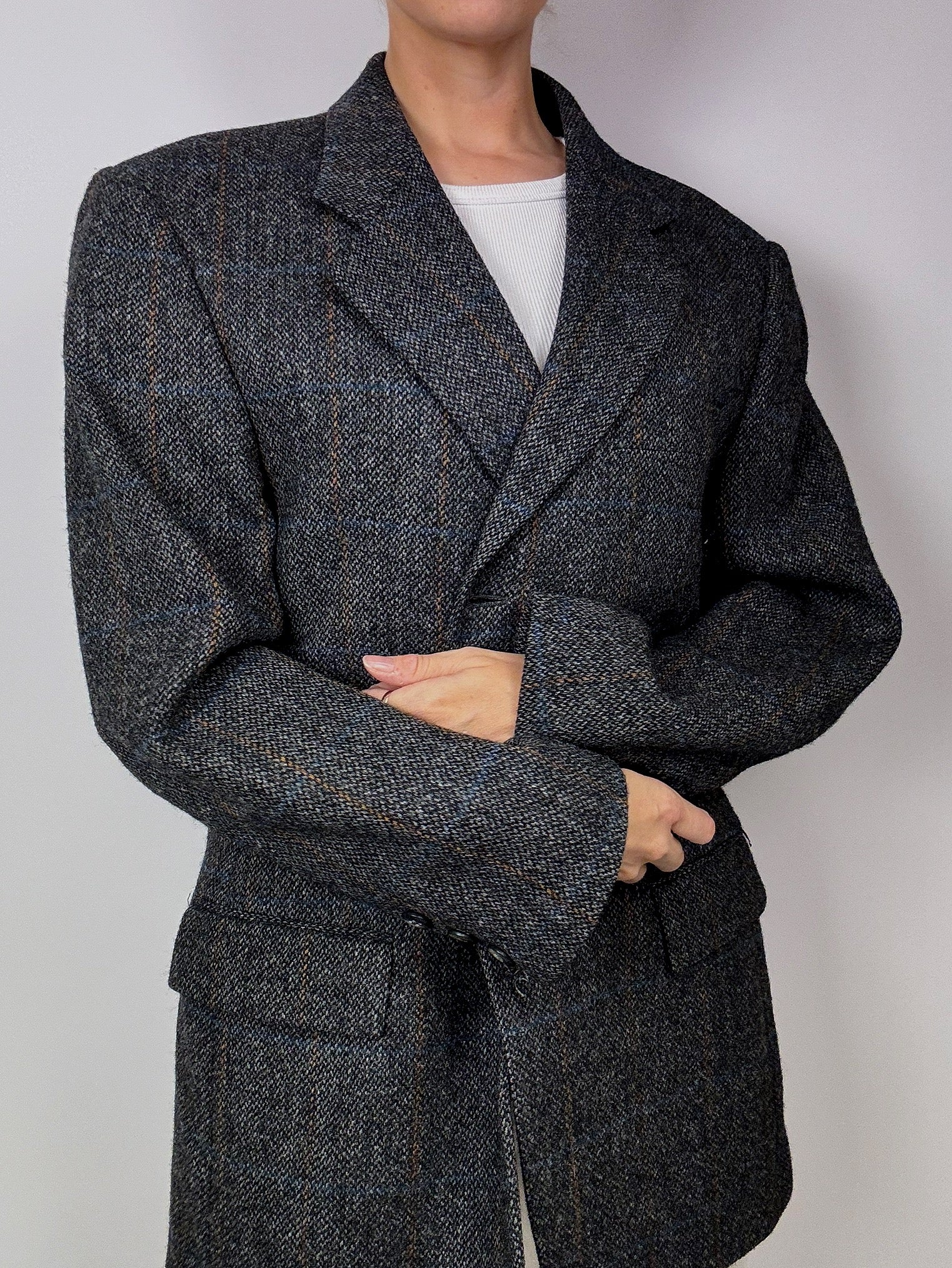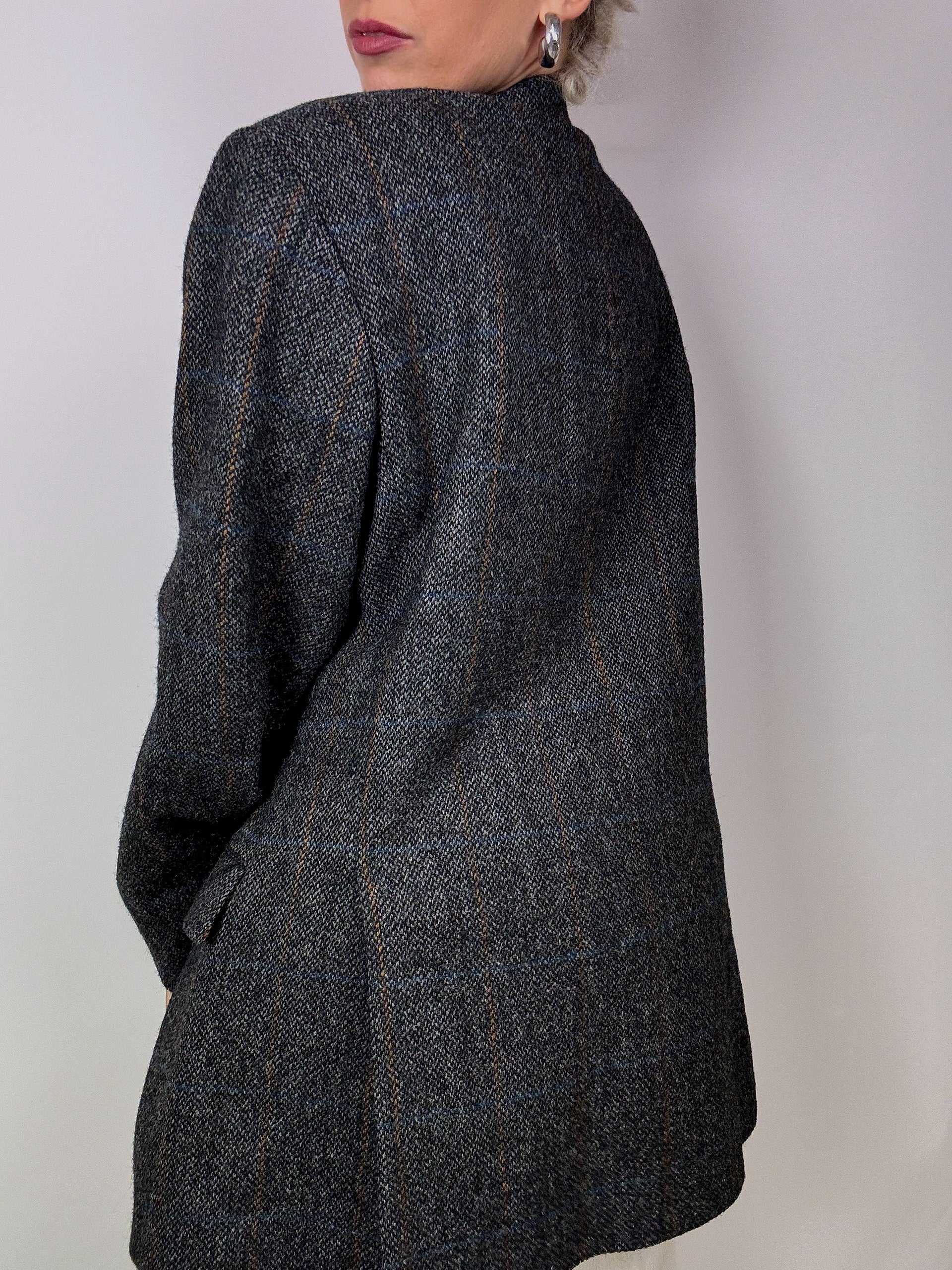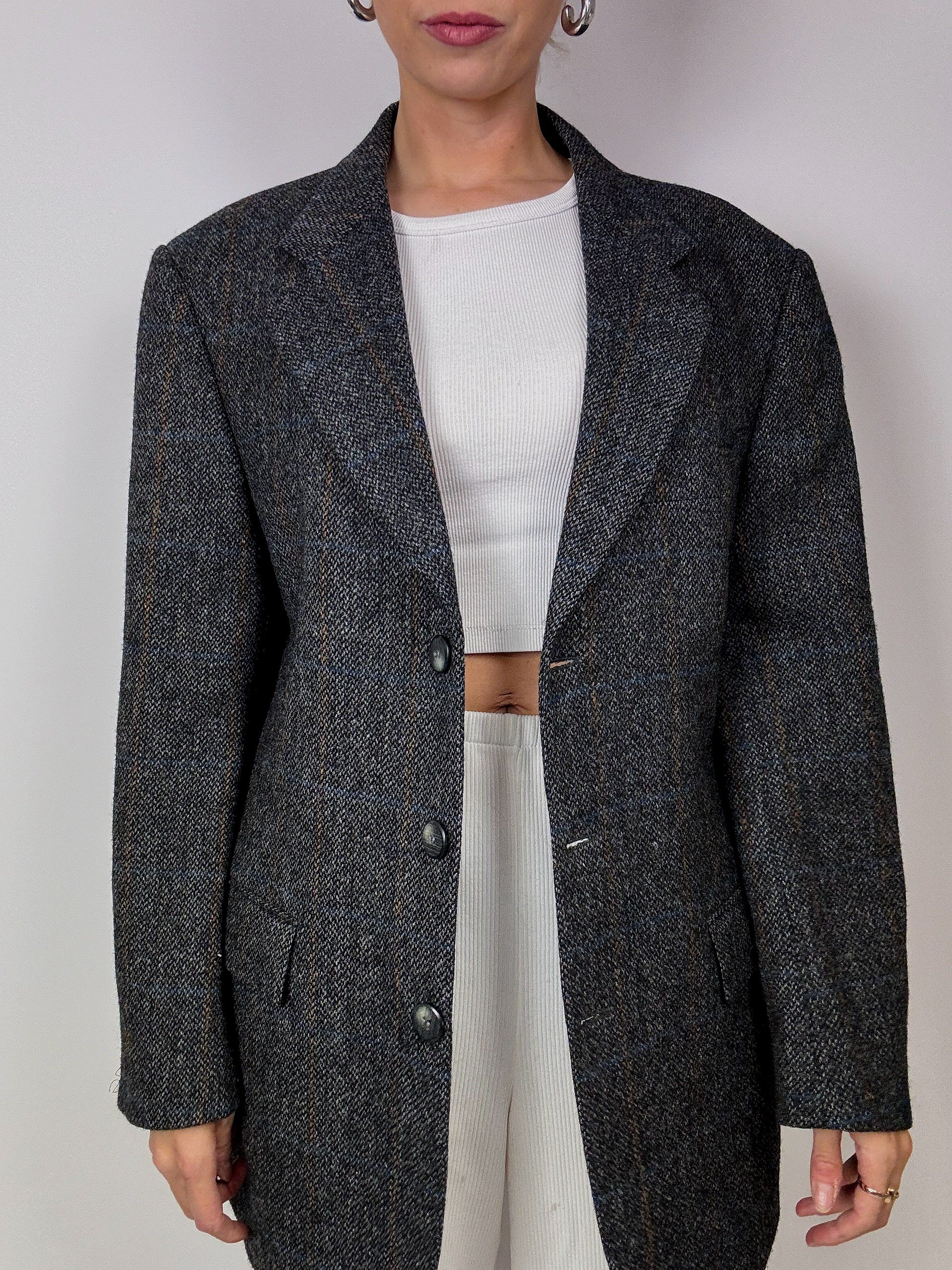 Blazer à carreaux gris vintage
