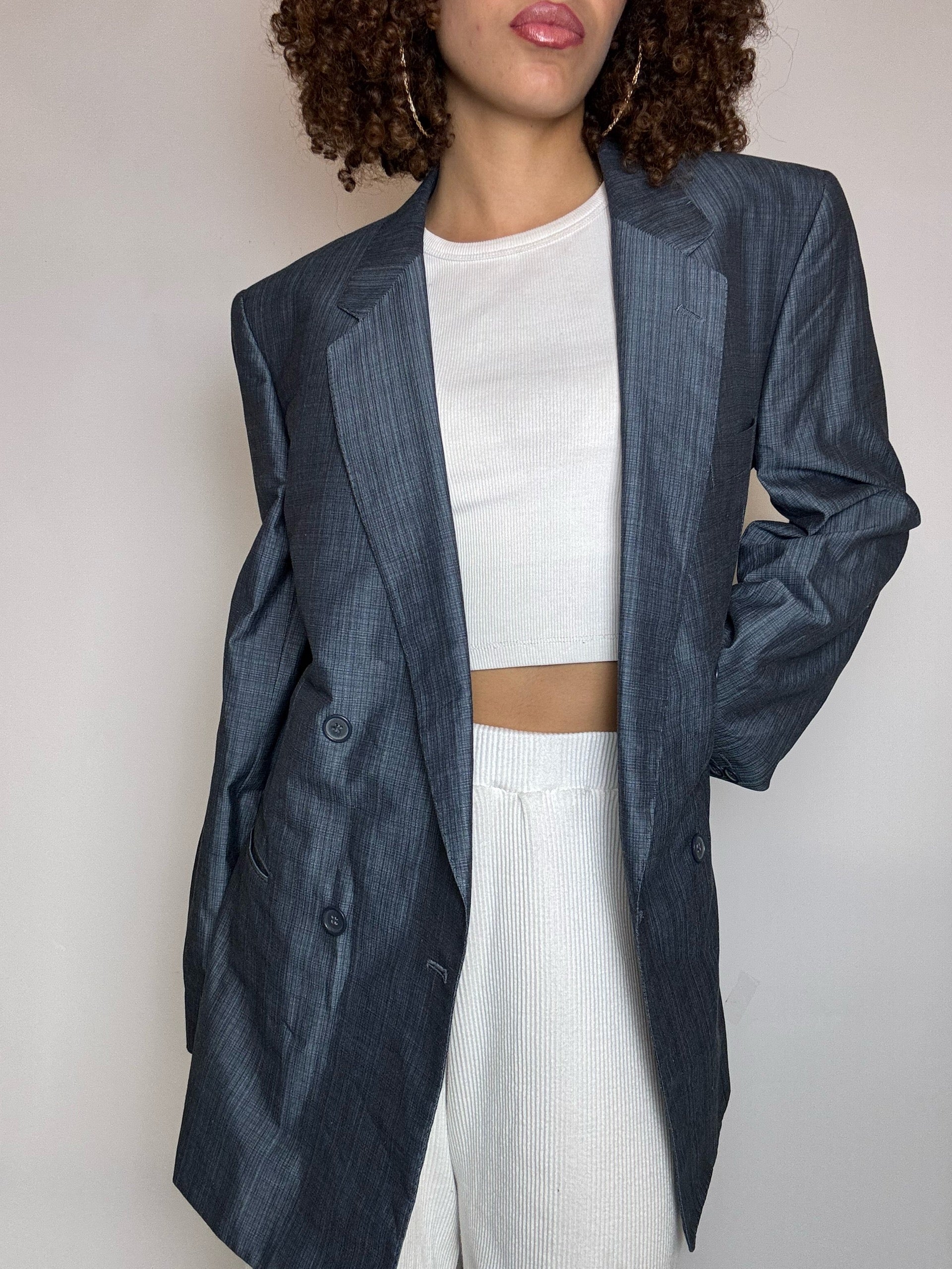 Blazer en coton bleu L vintage