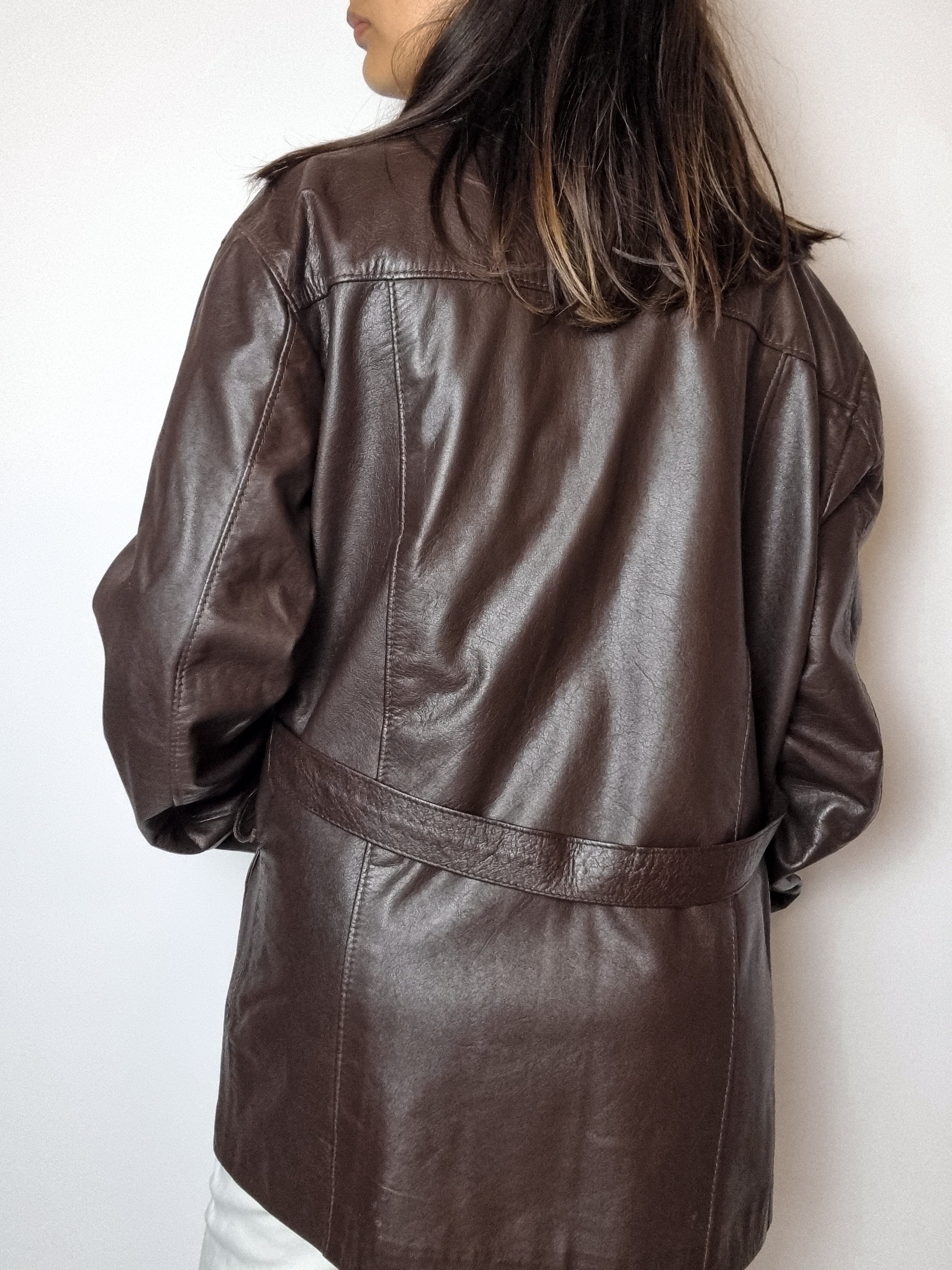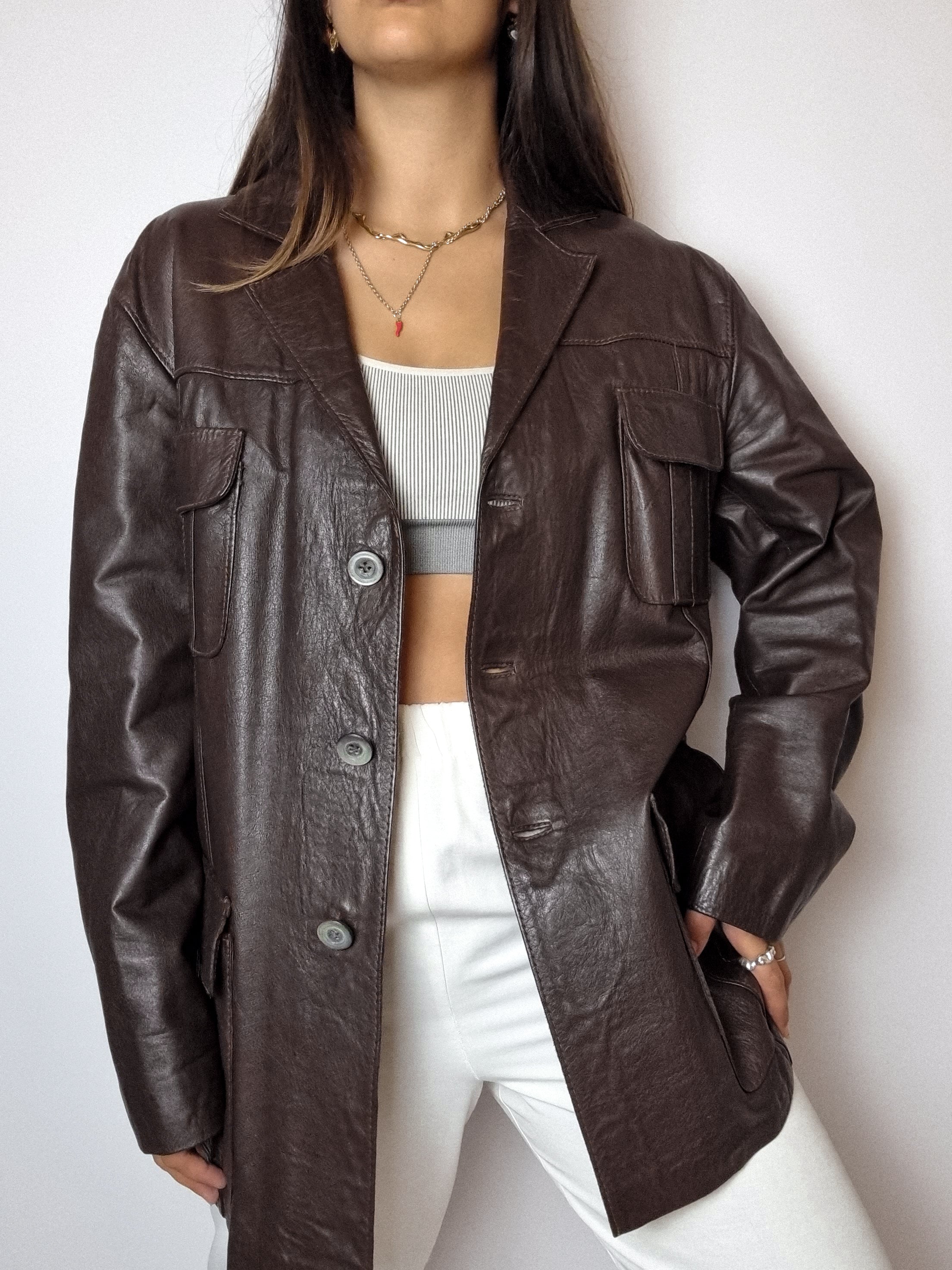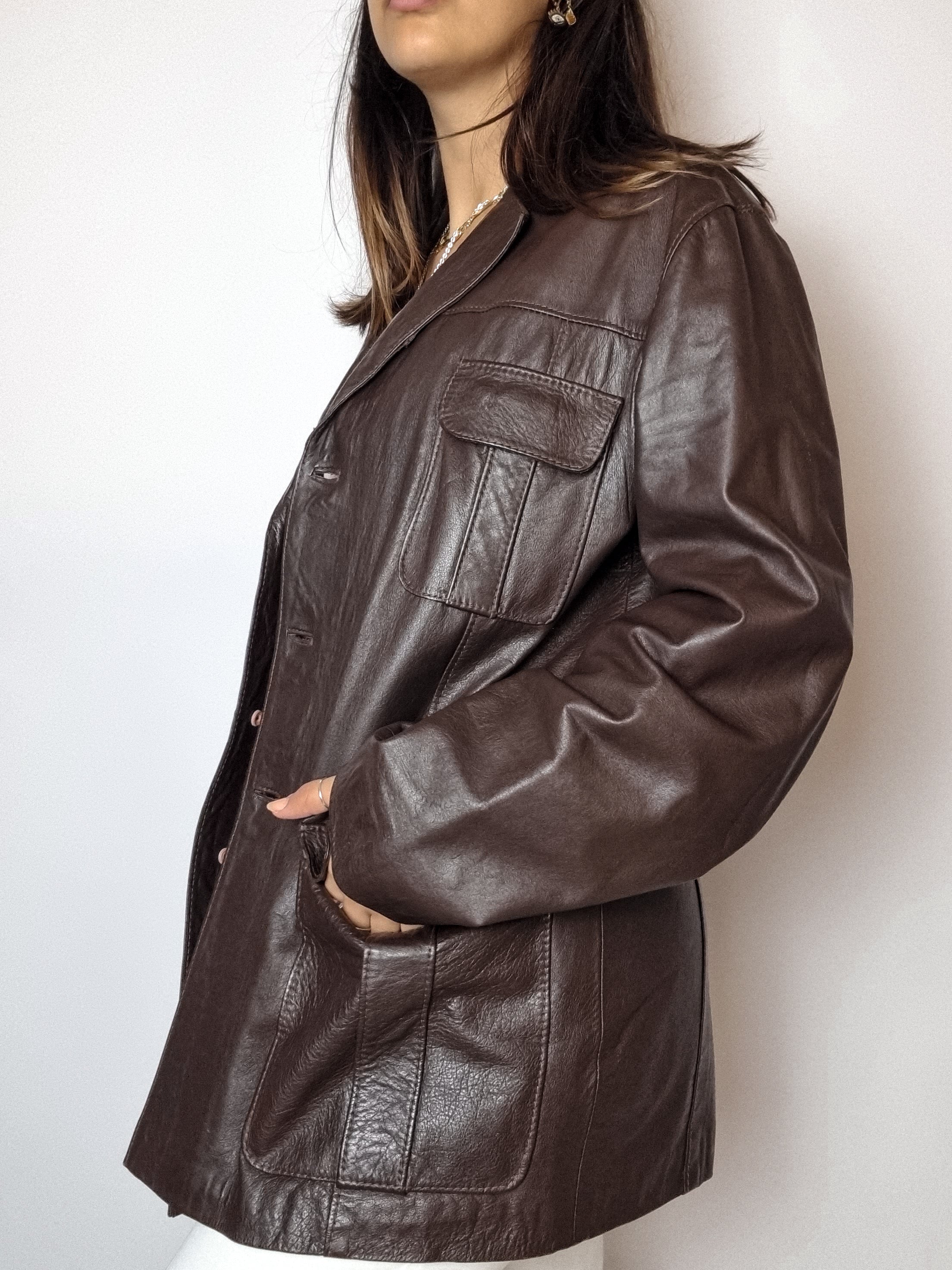 Blazer en cuir marron vintage S/M