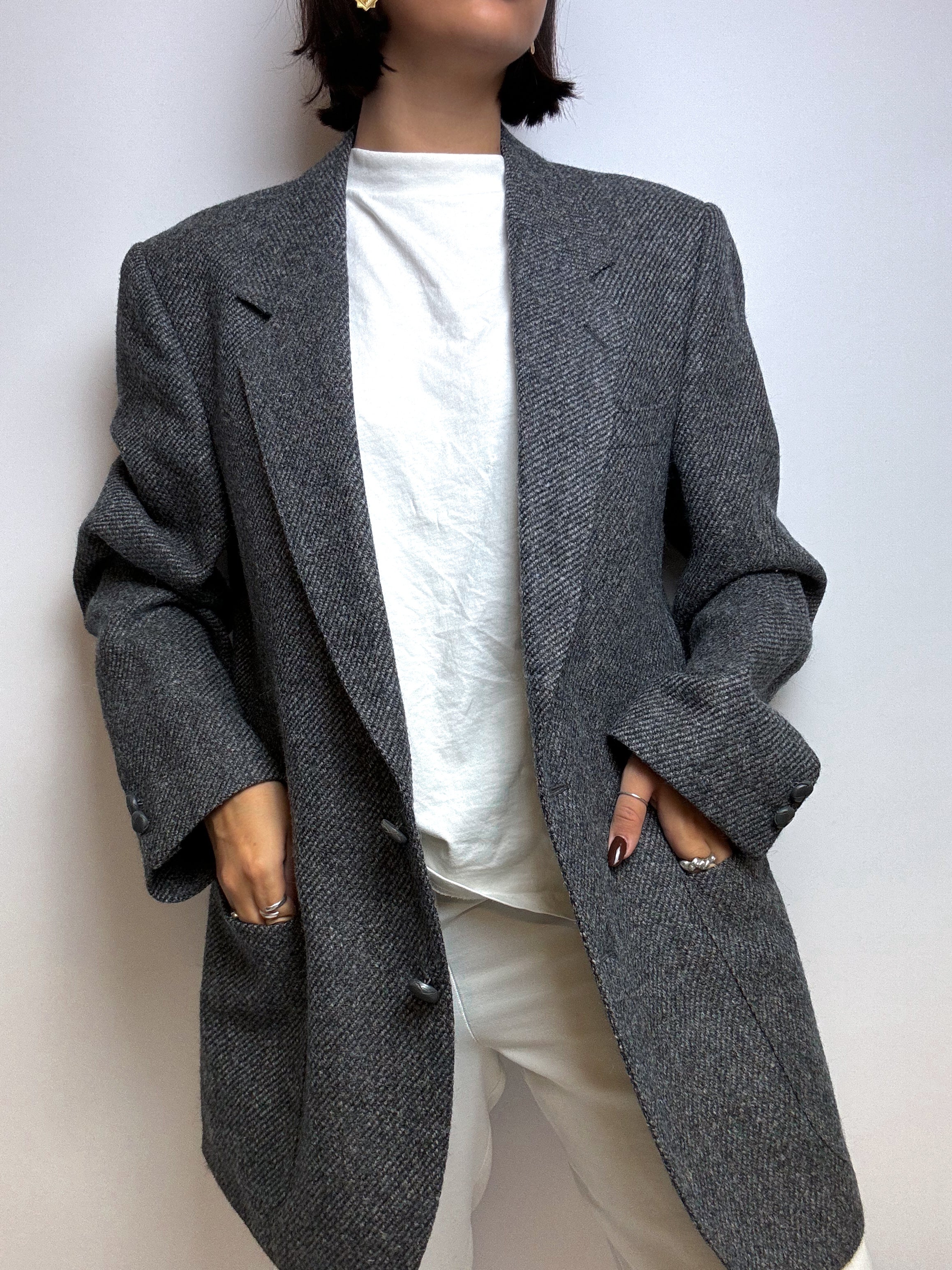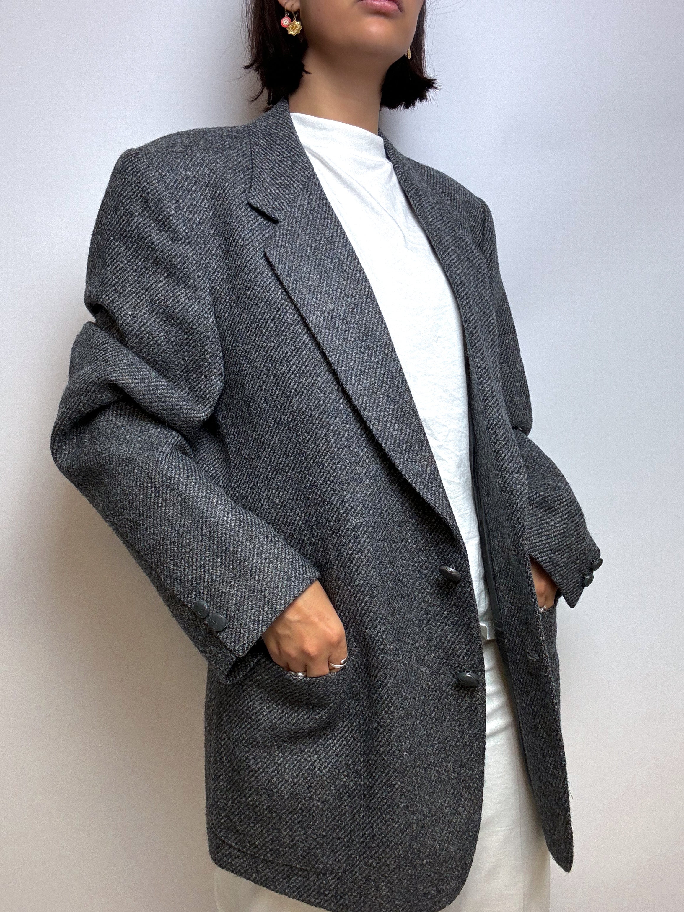 Blazer en laine vintage gris foncé M/L