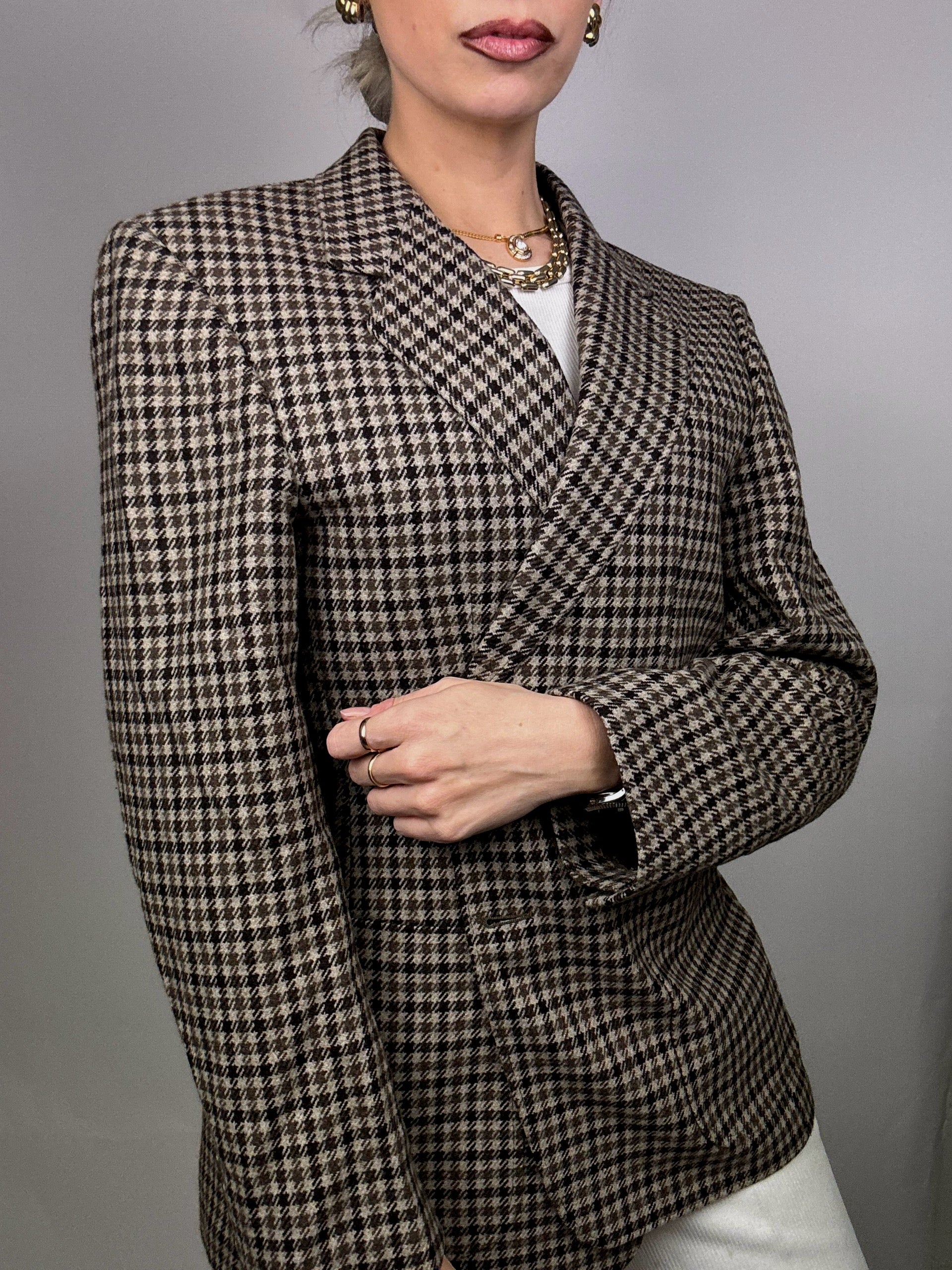 Blazer pied de poule en laine M/L vintage