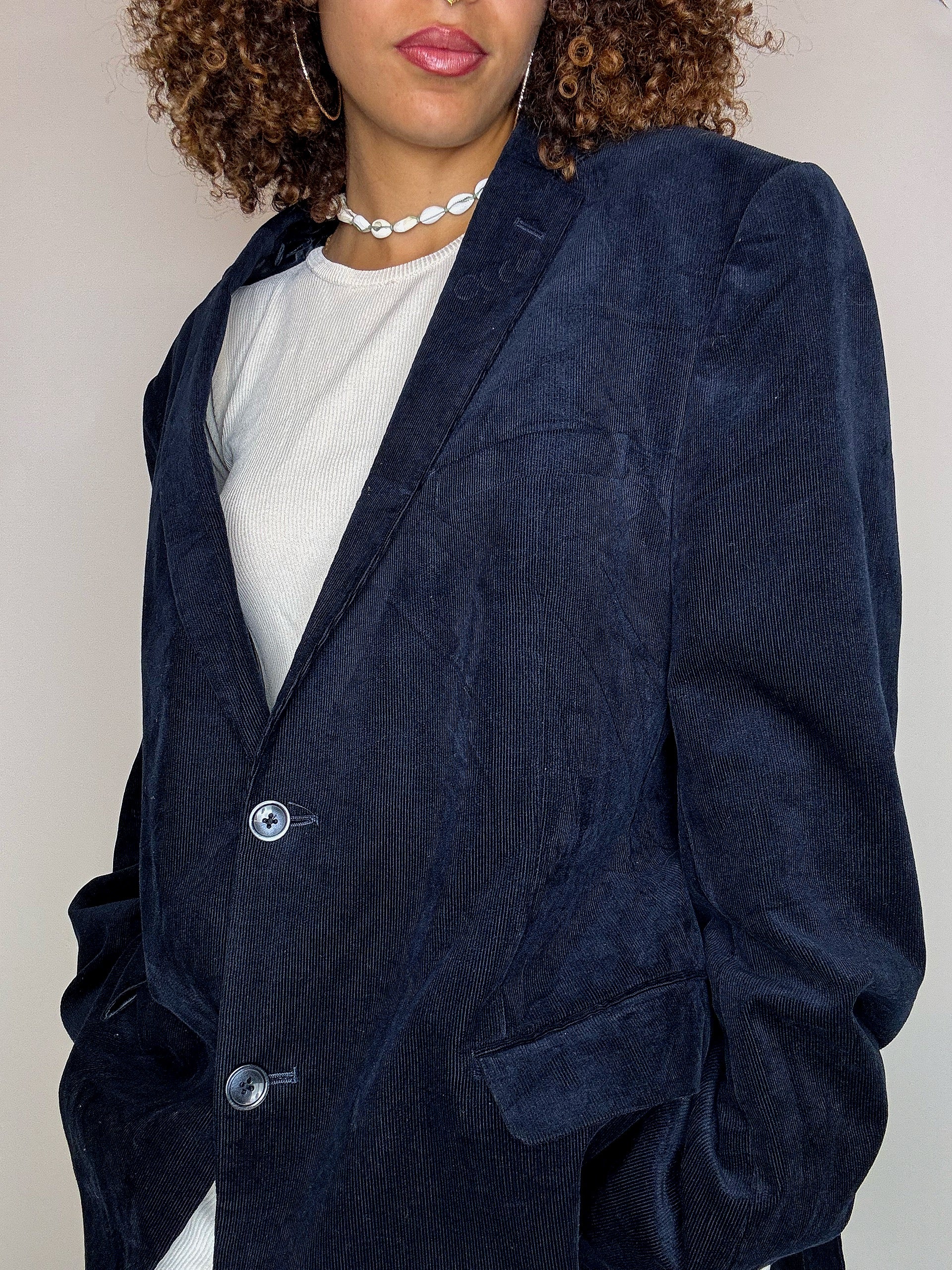 Blazer marine en velours côtelé XL vintage