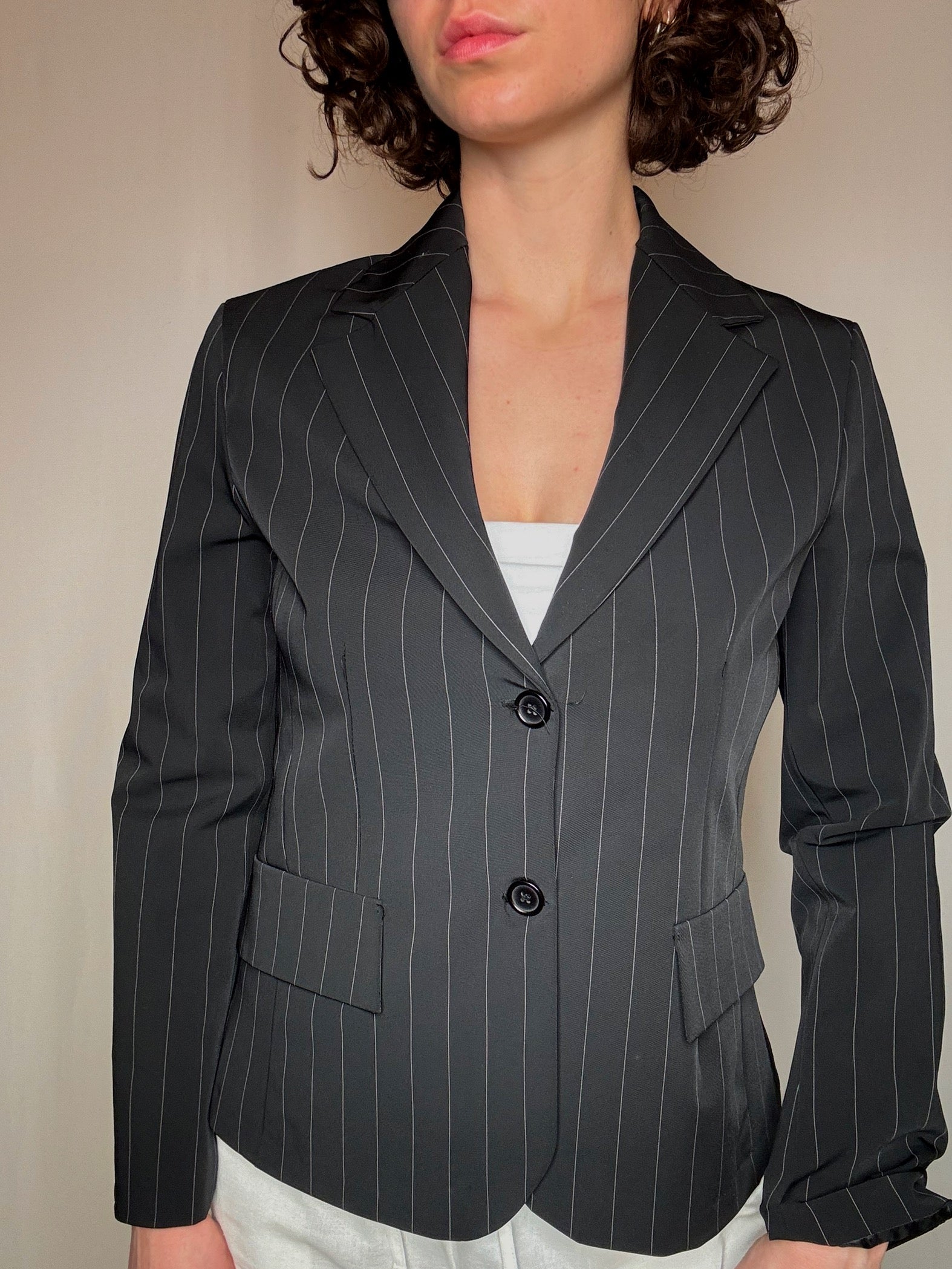 Blazer noir rayé S vintage