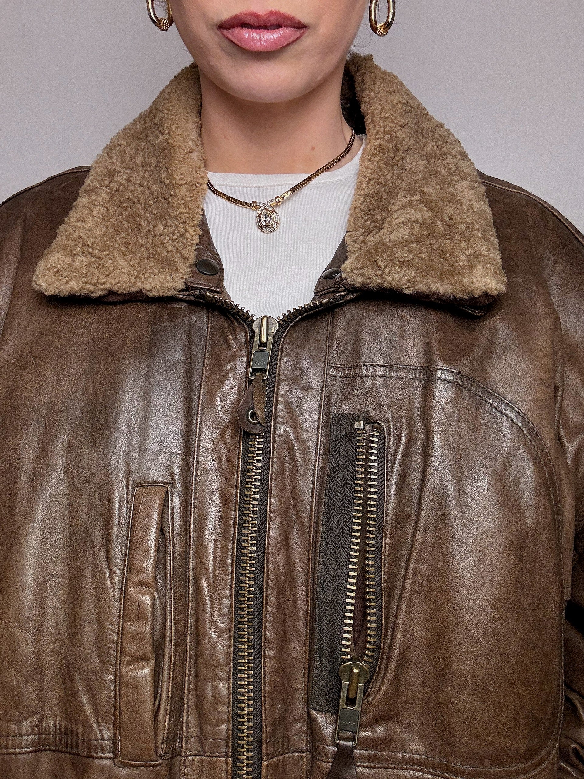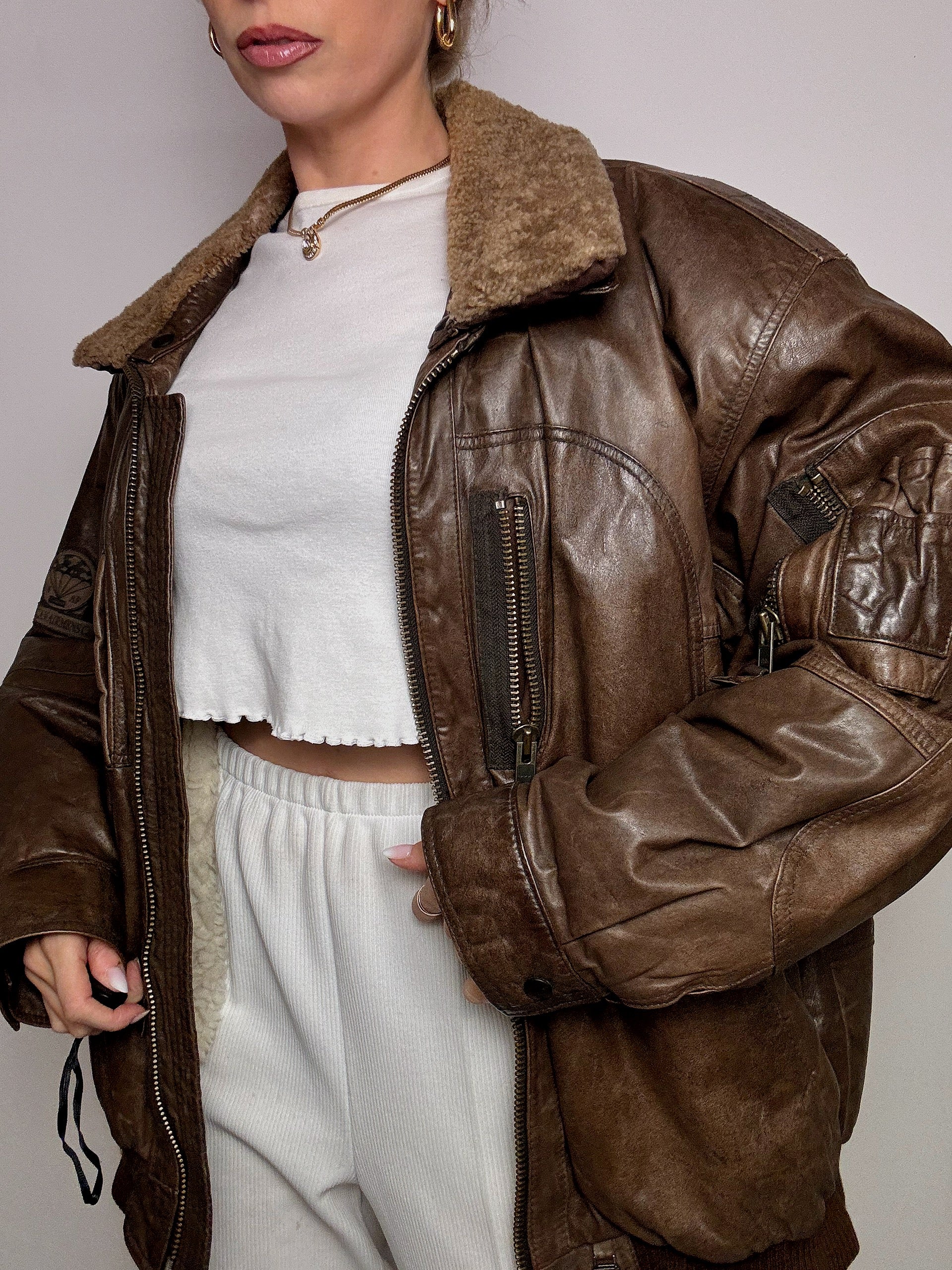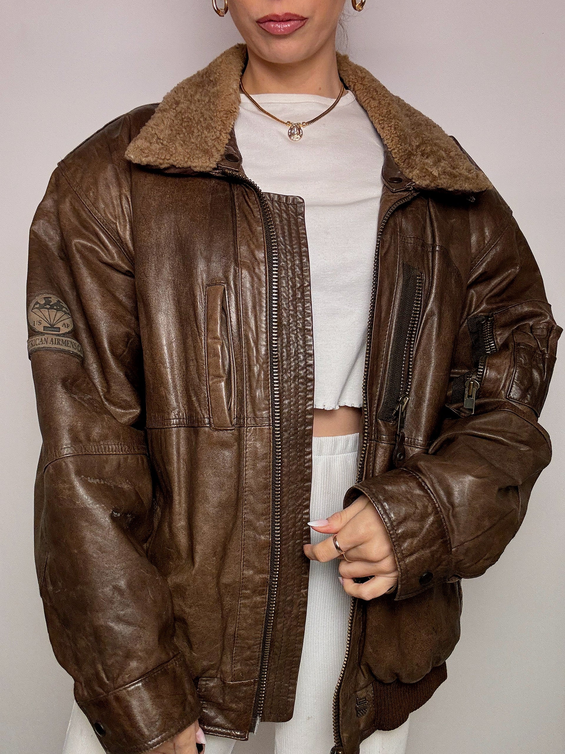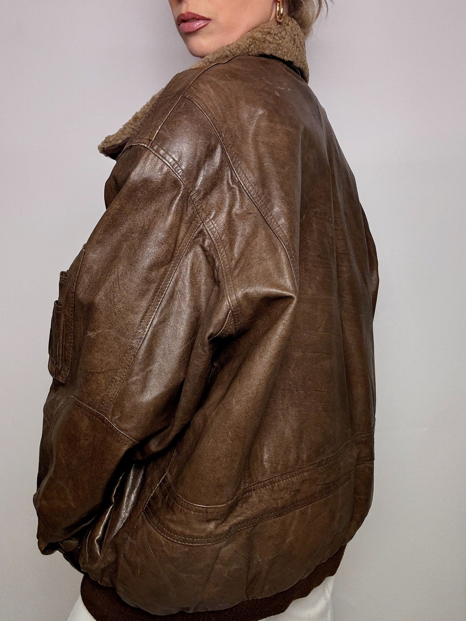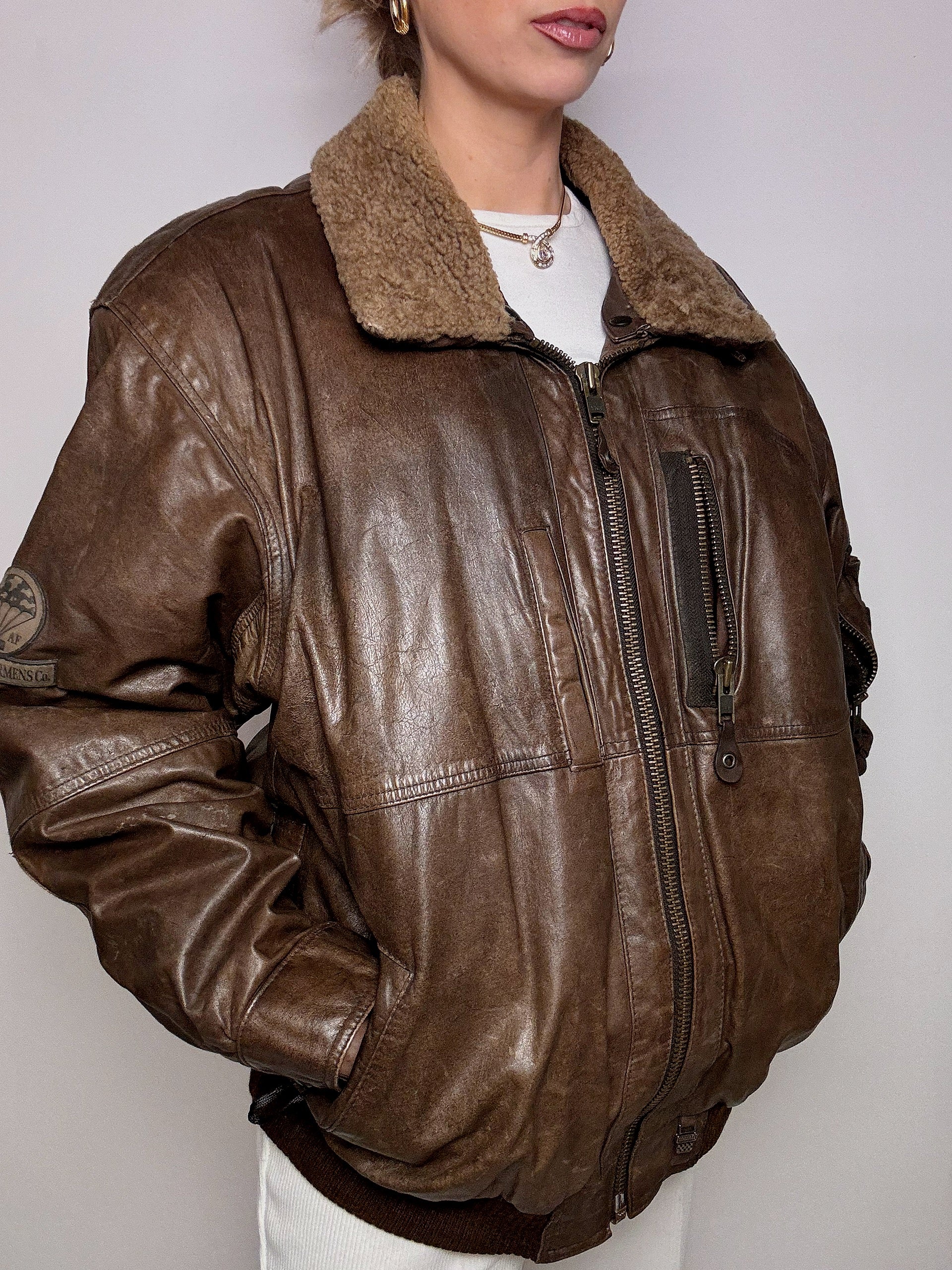Blouson aviator en cuir brun XL vintage
