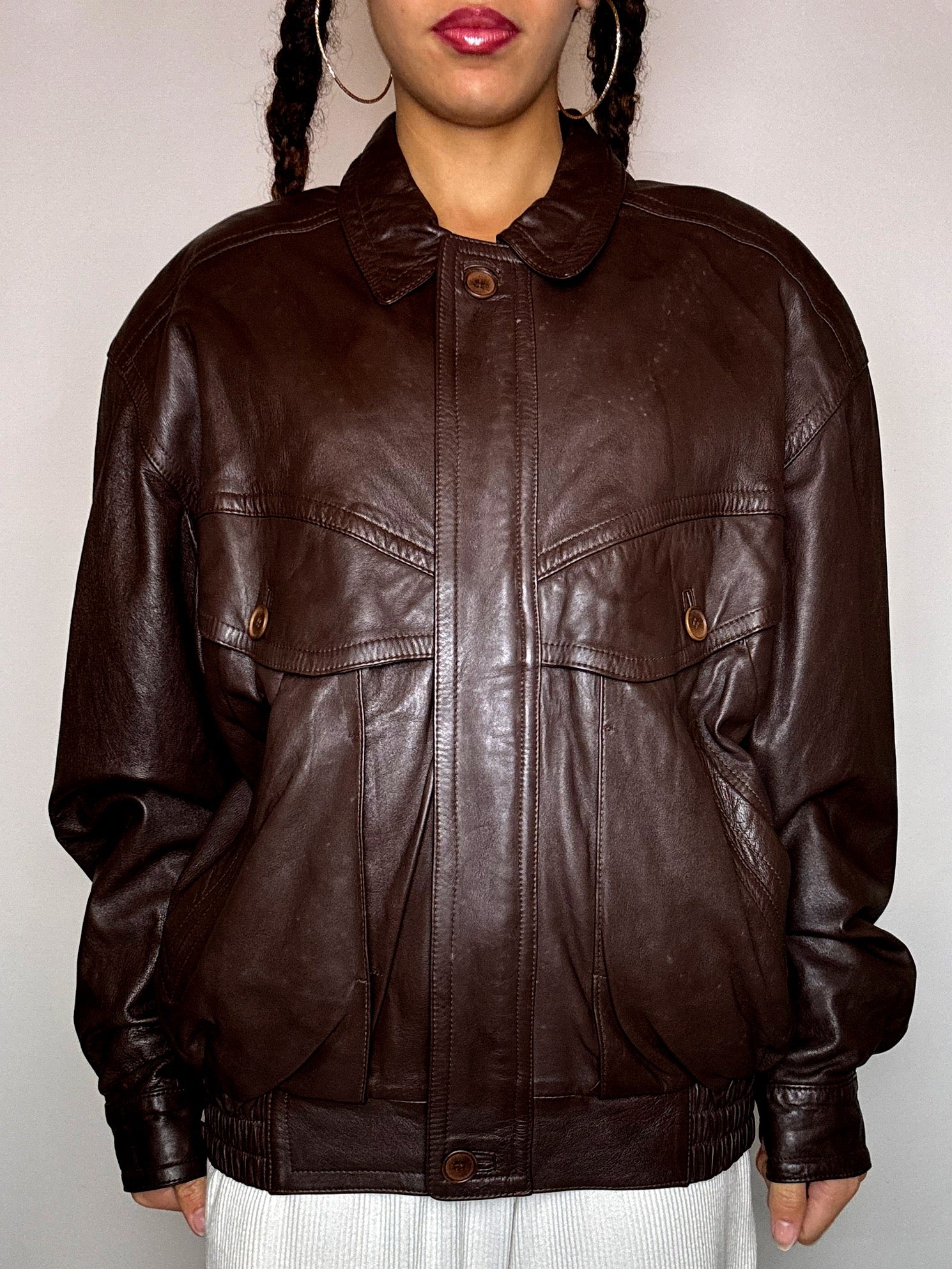 Blouson en cuir brun M/L vintage