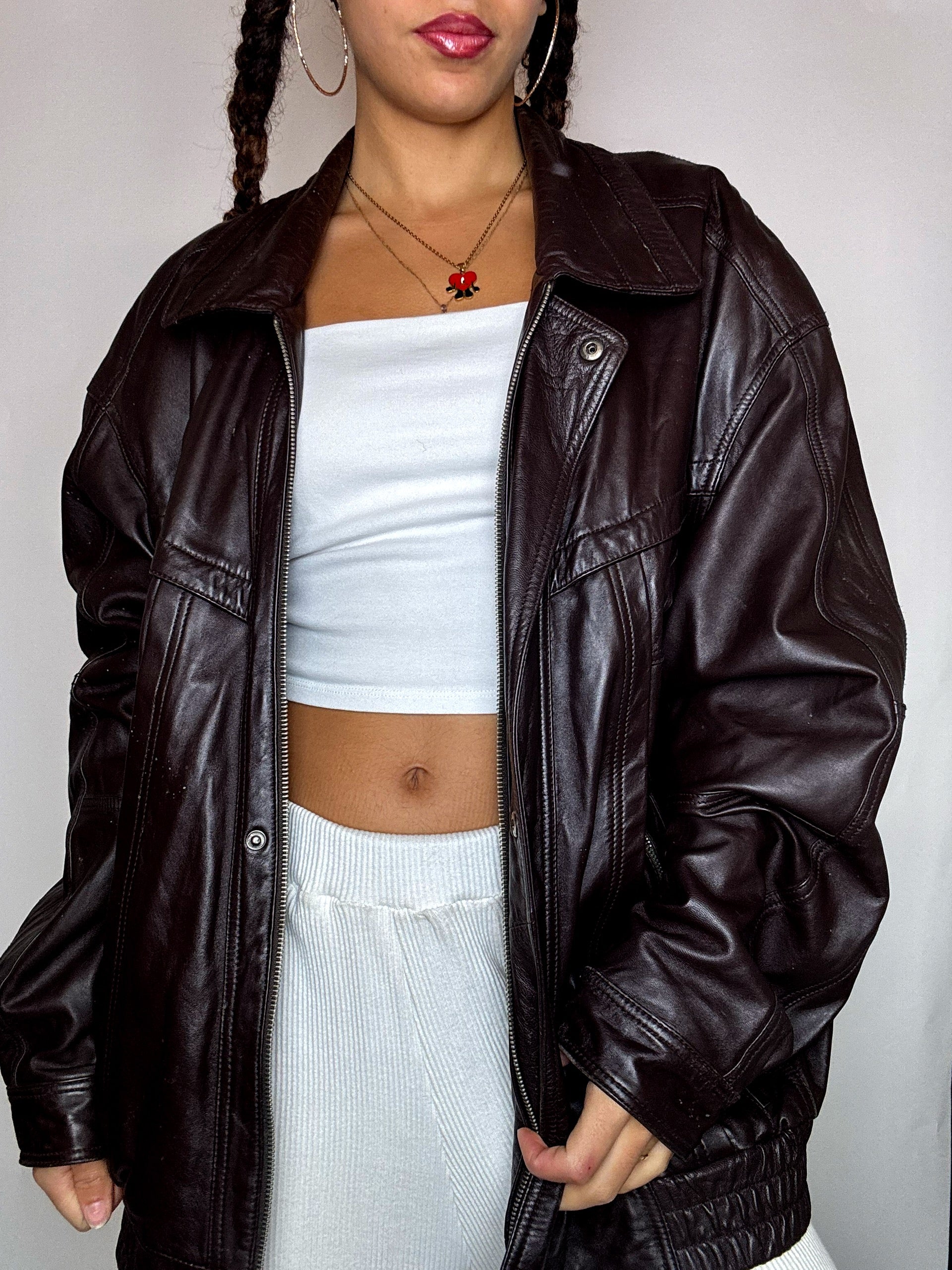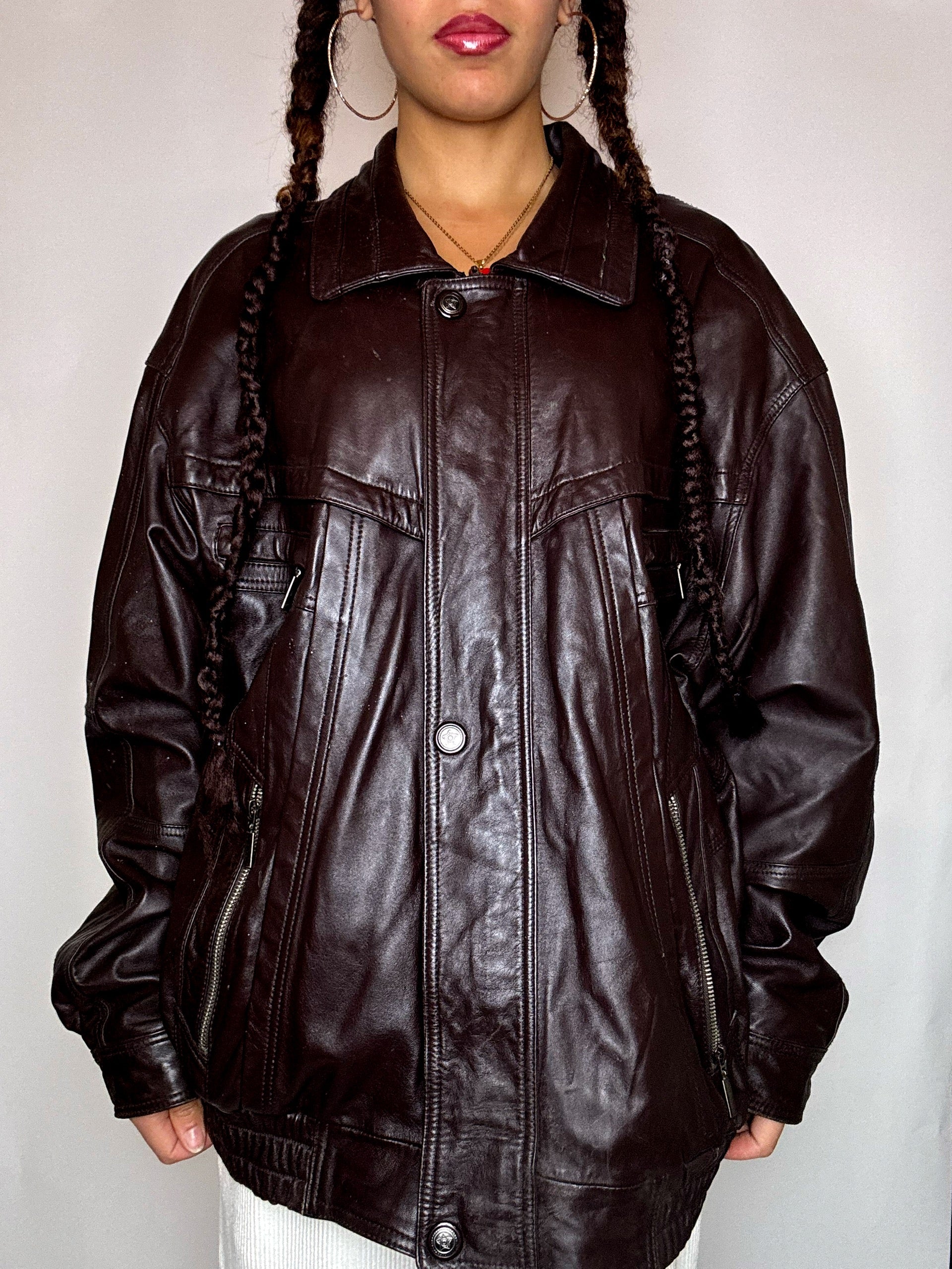 Blouson en cuir bordeaux XL vintage