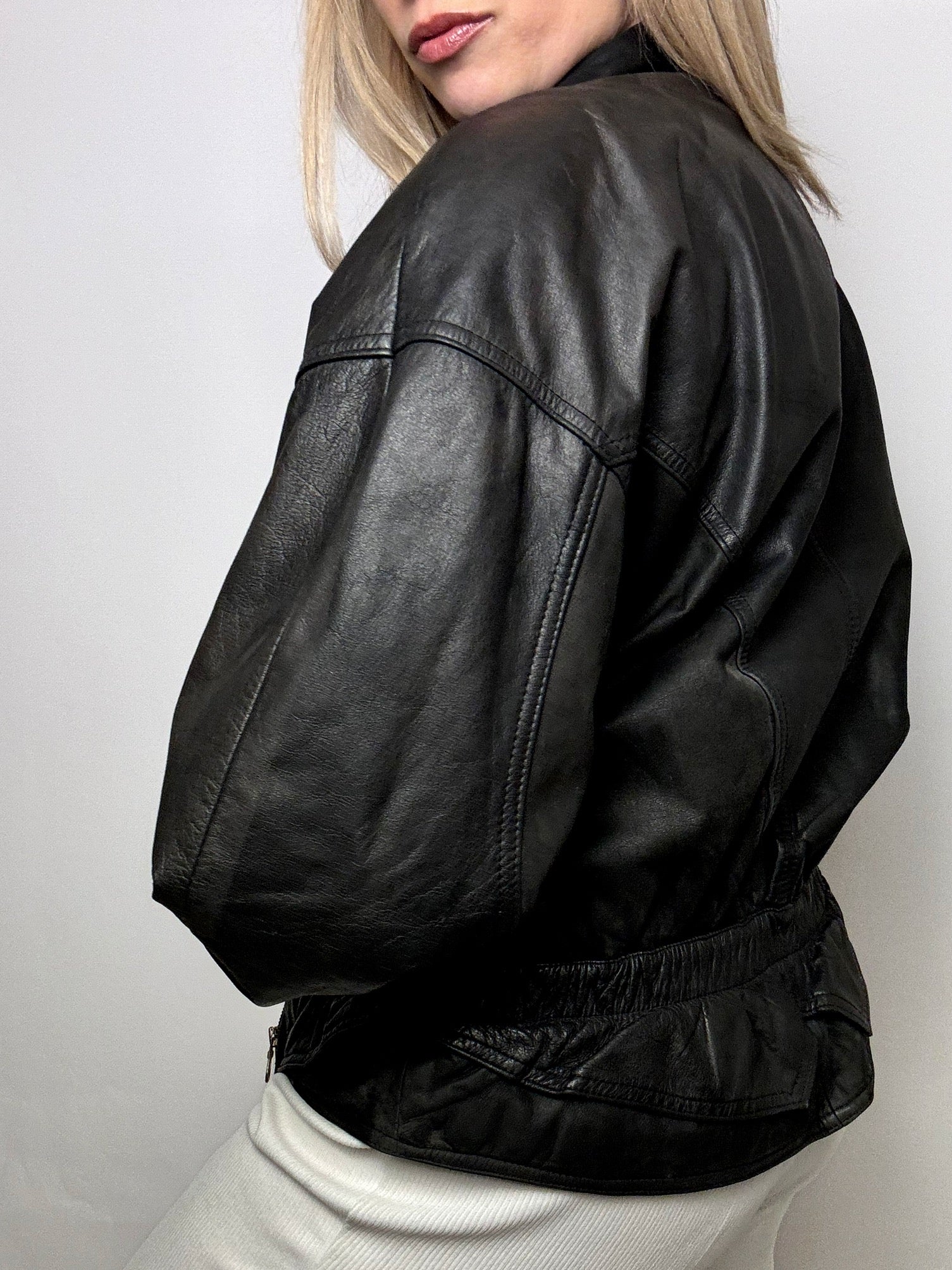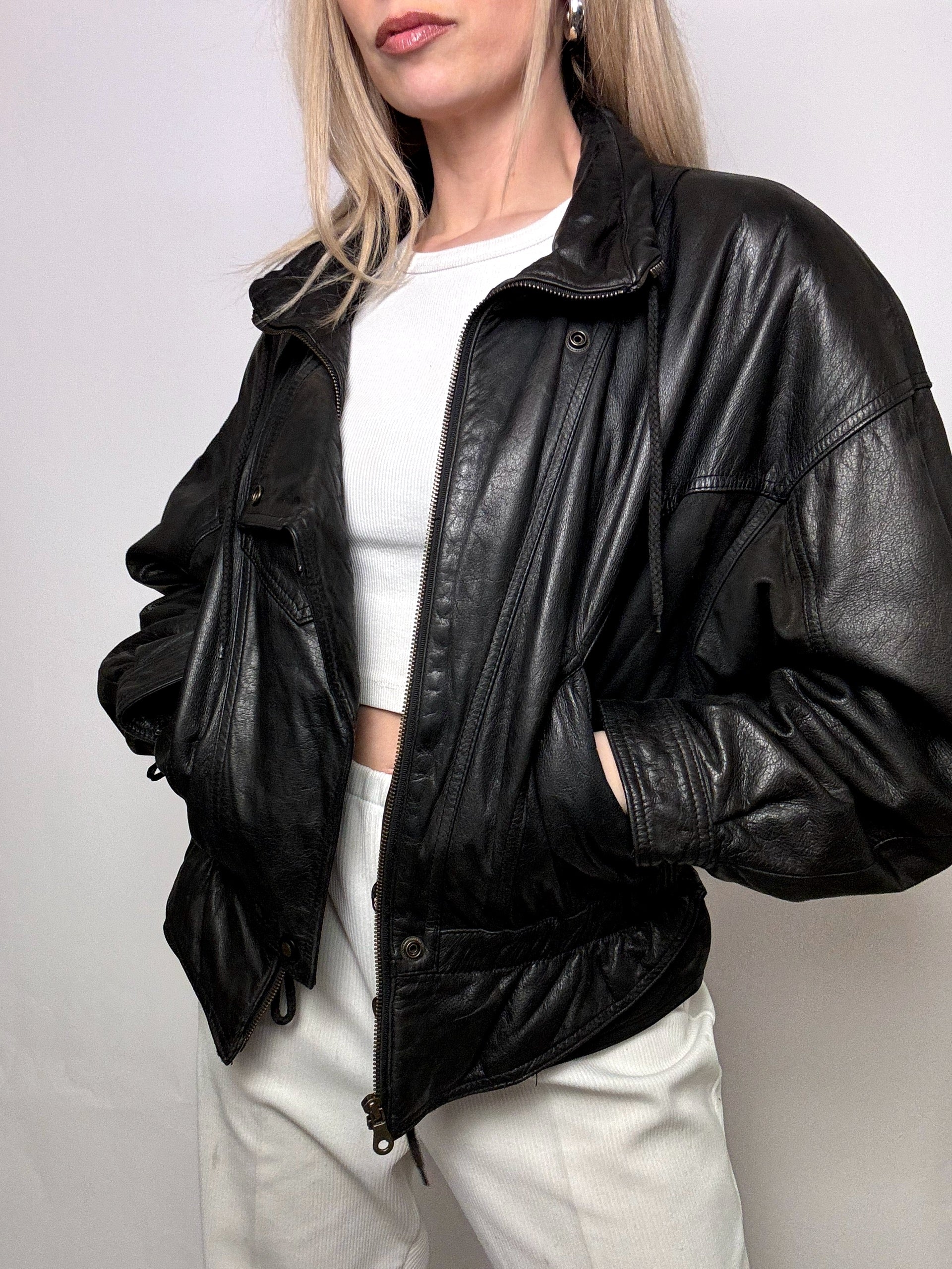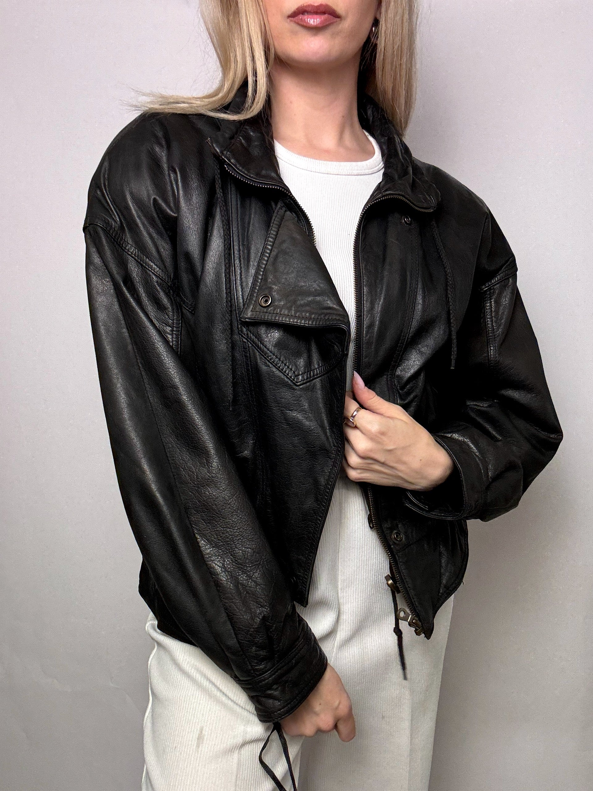 Blouson en cuir cintré noir M vintage