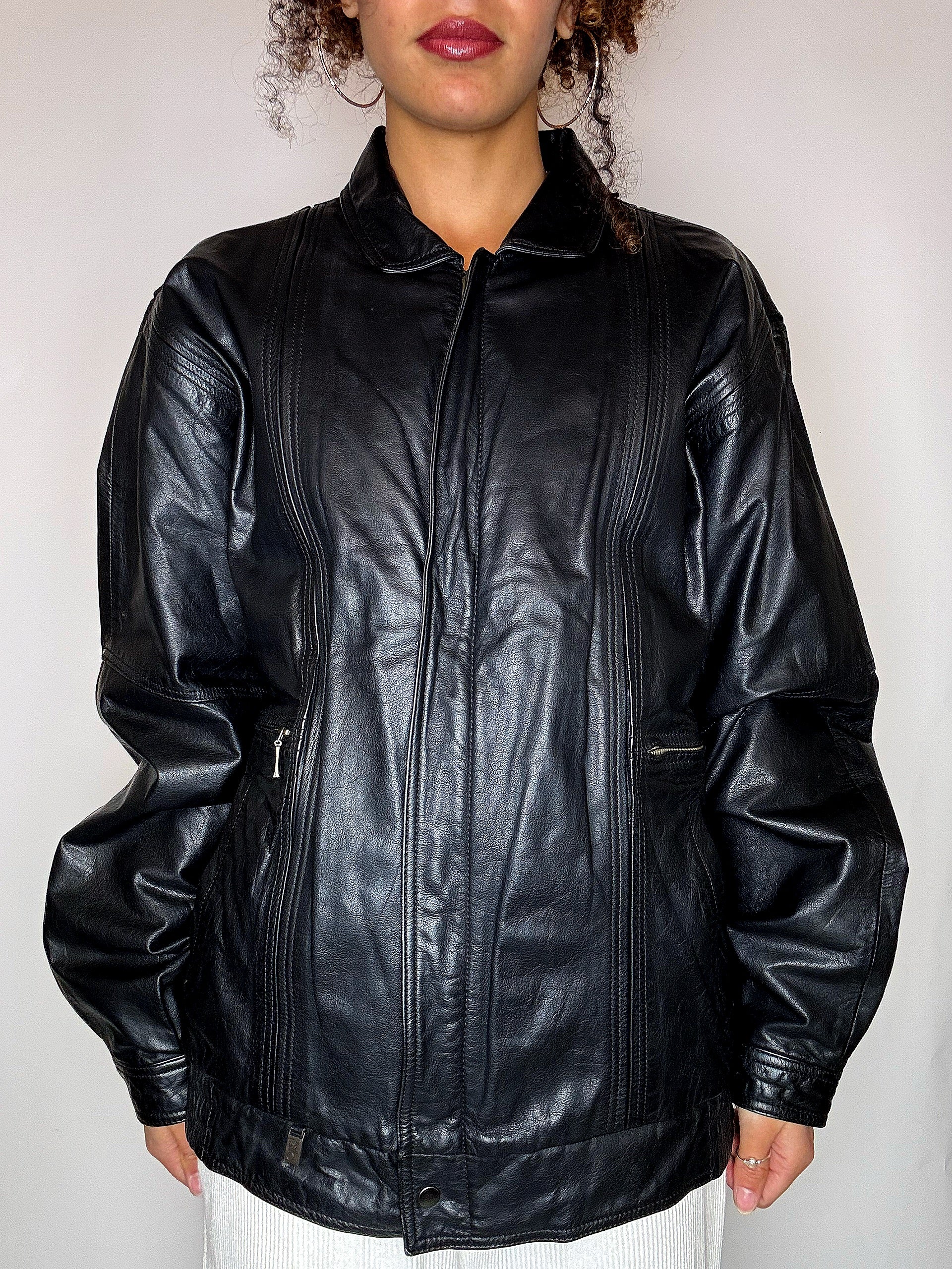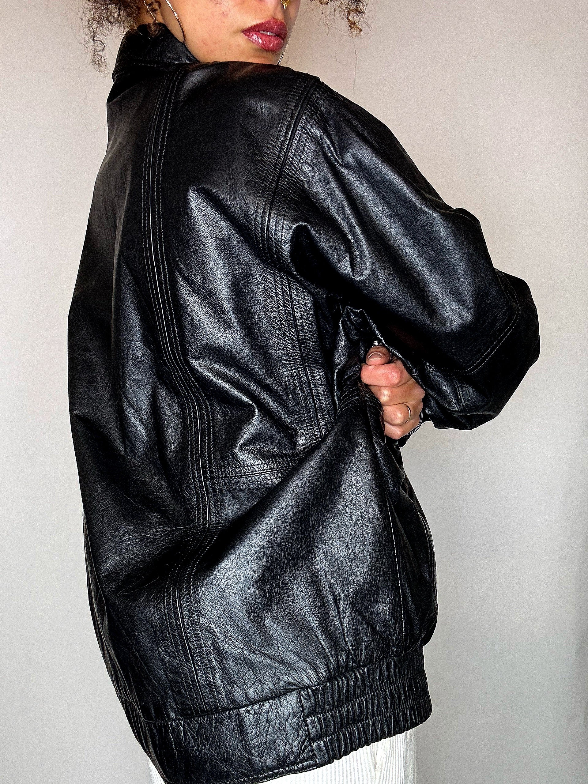 Blouson en cuir noir M/L vintage