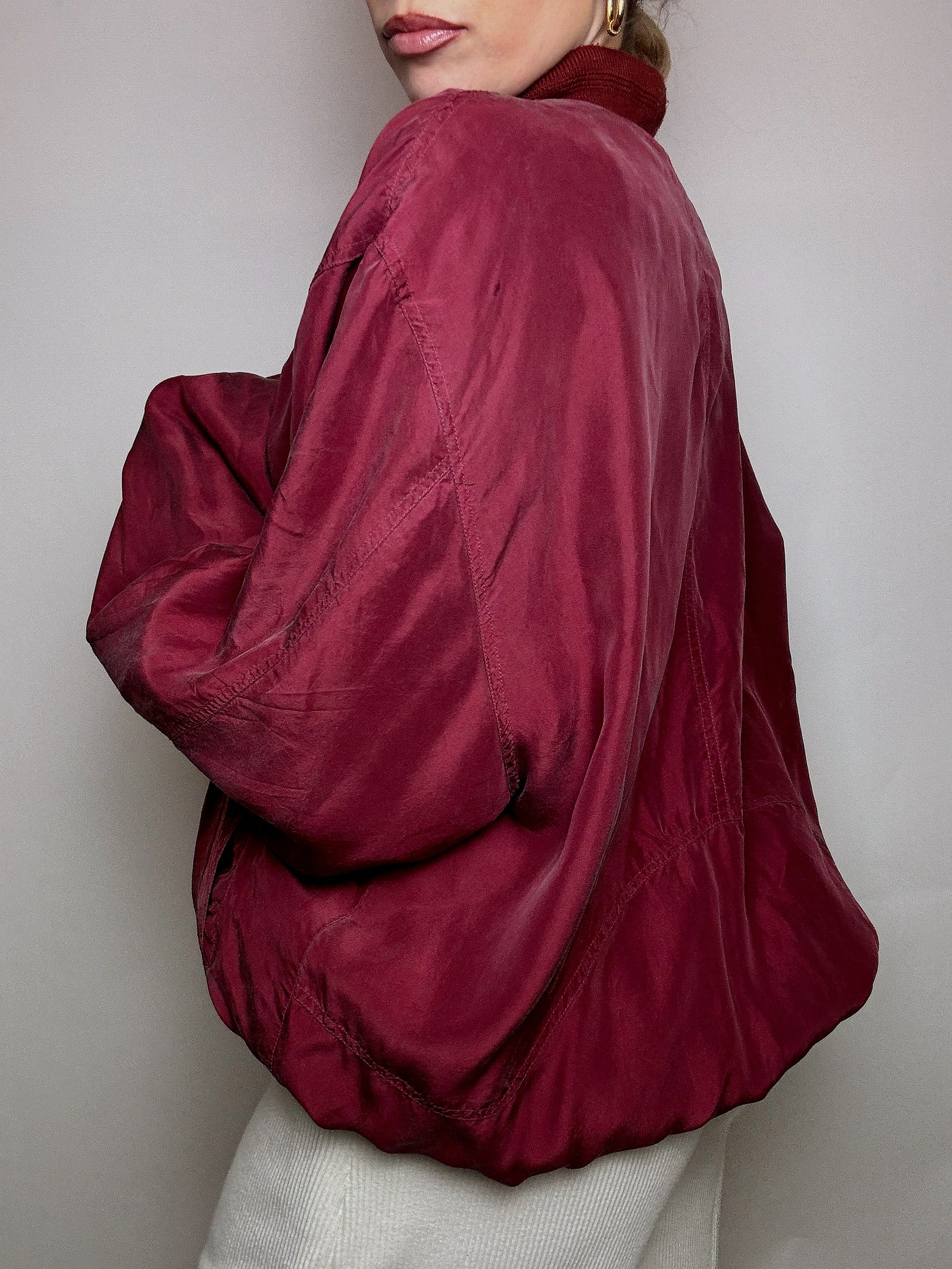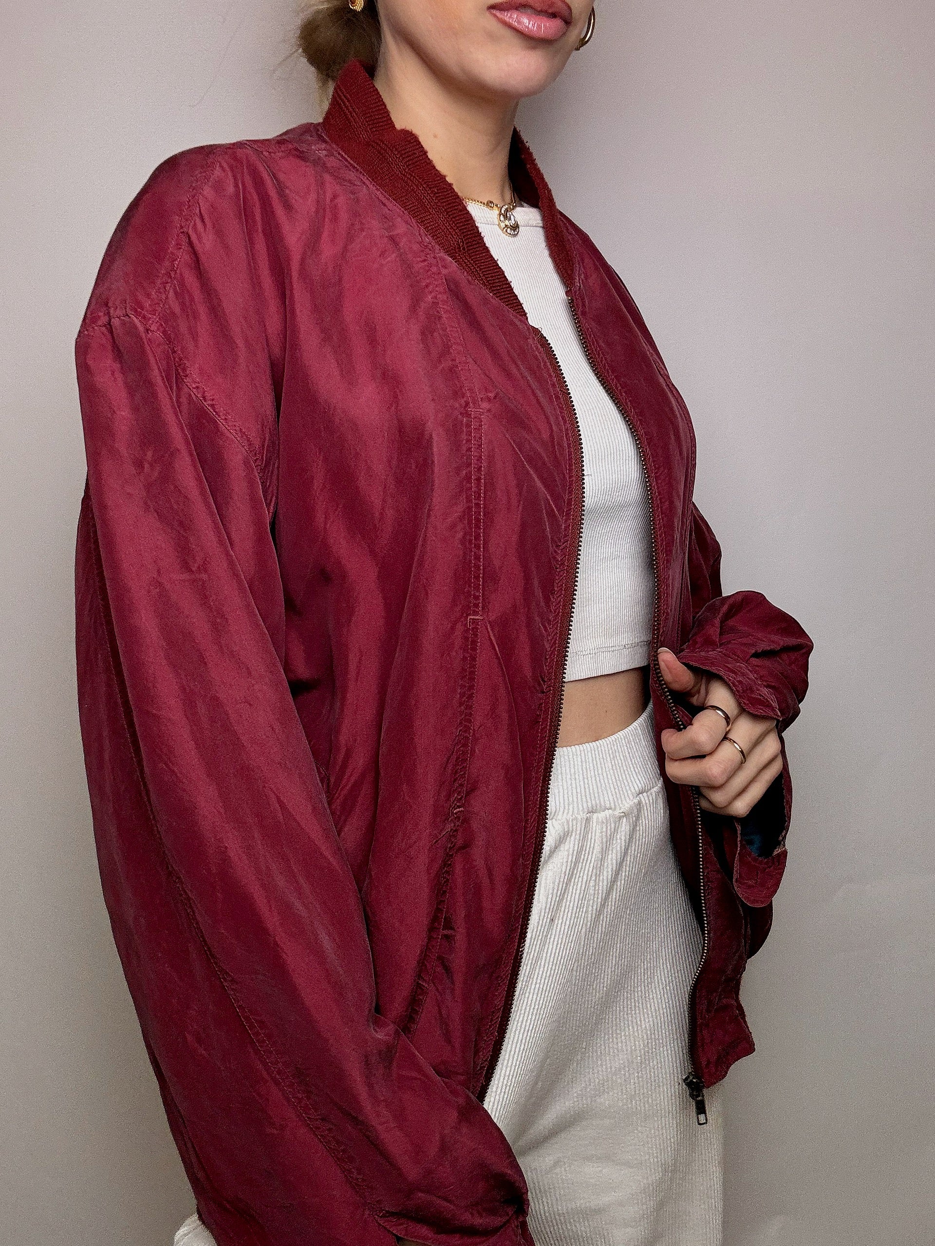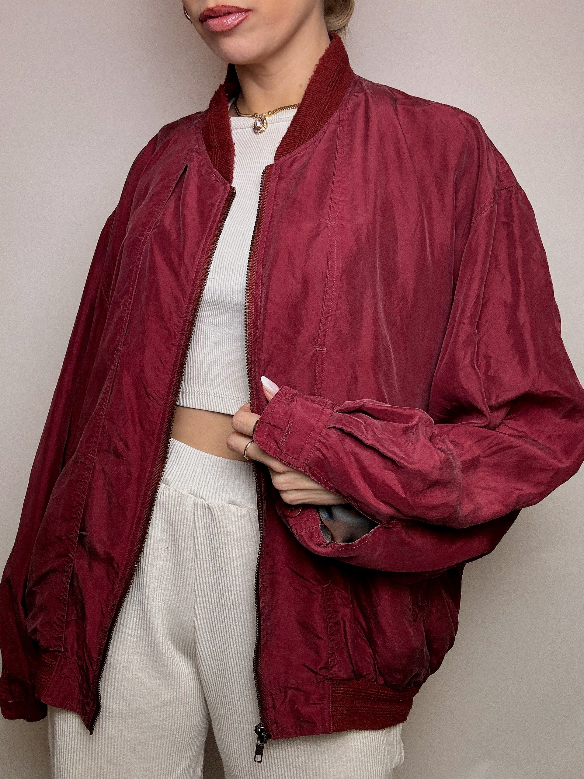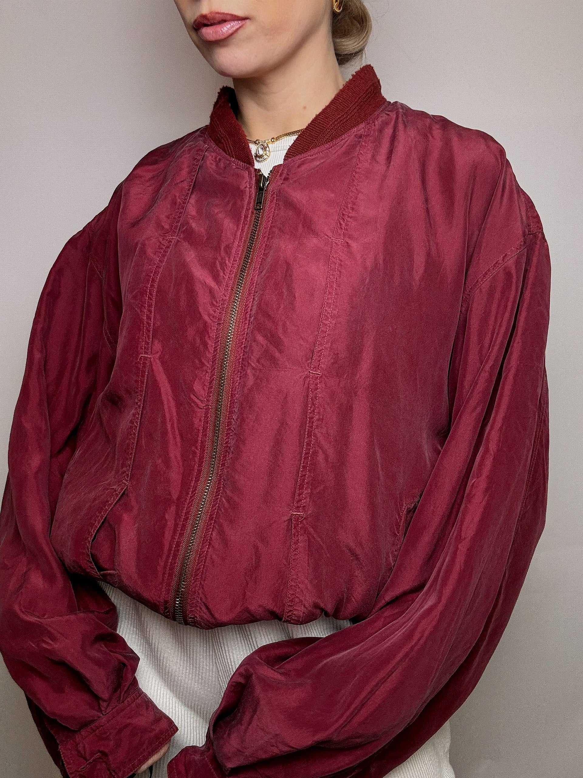 Blouson en soie bordeaux L/XL vintage