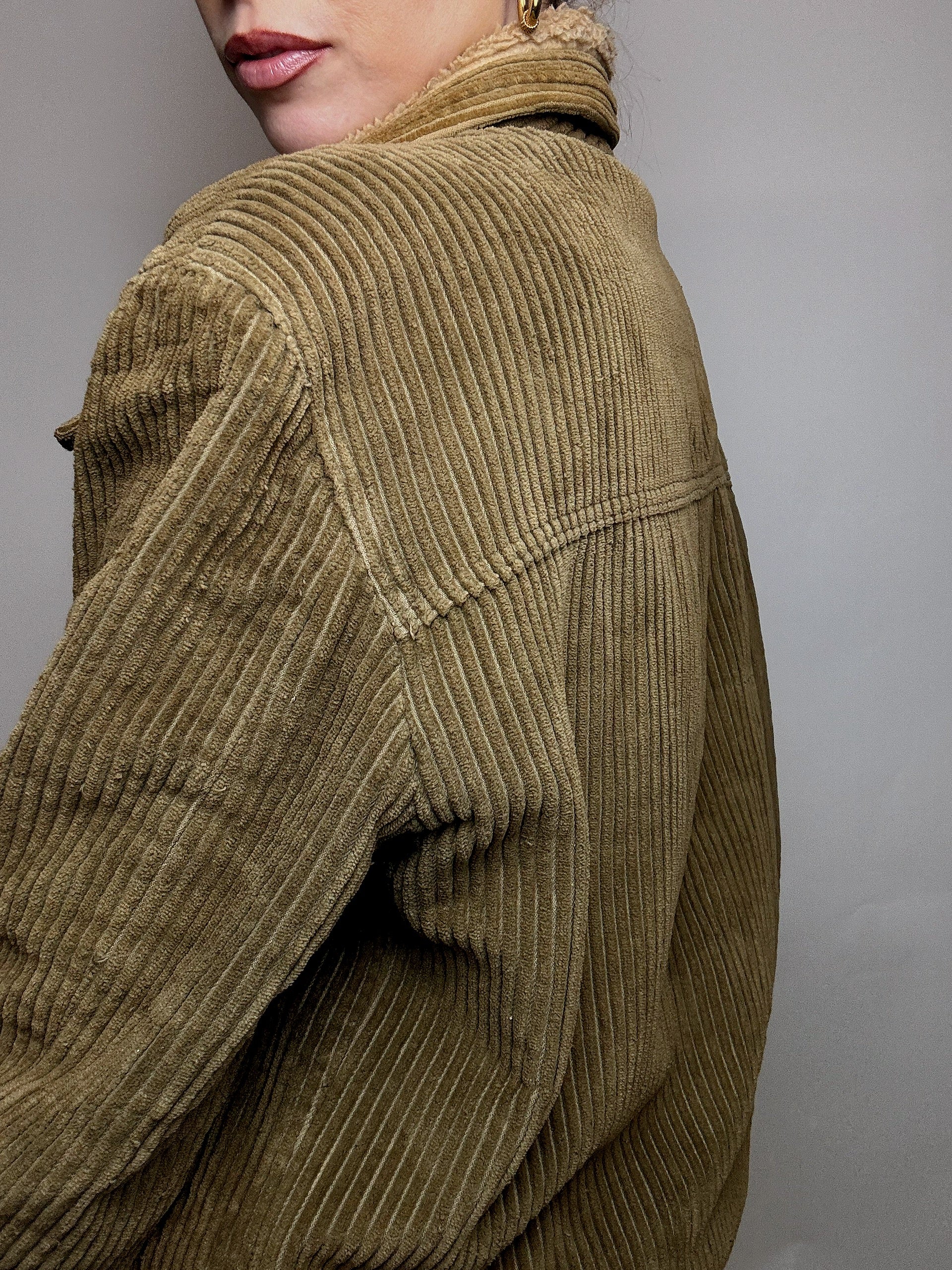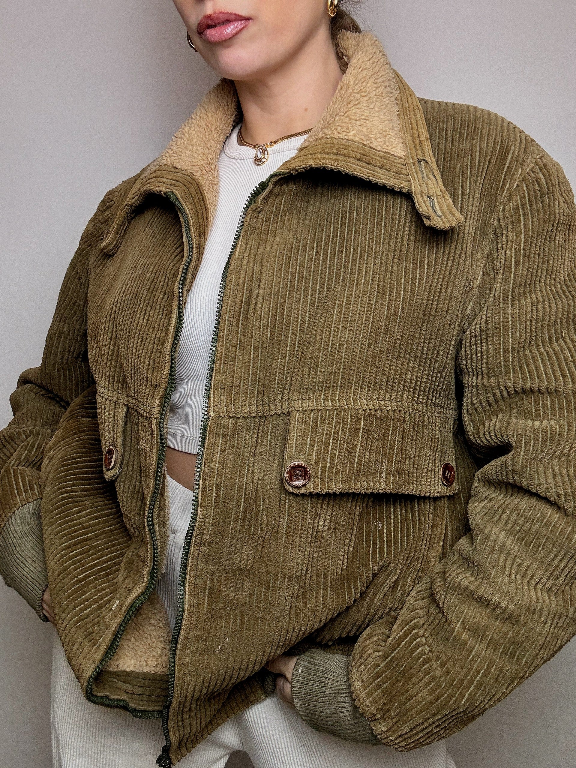 Blouson en velours cotelé doublé kaki M vintage