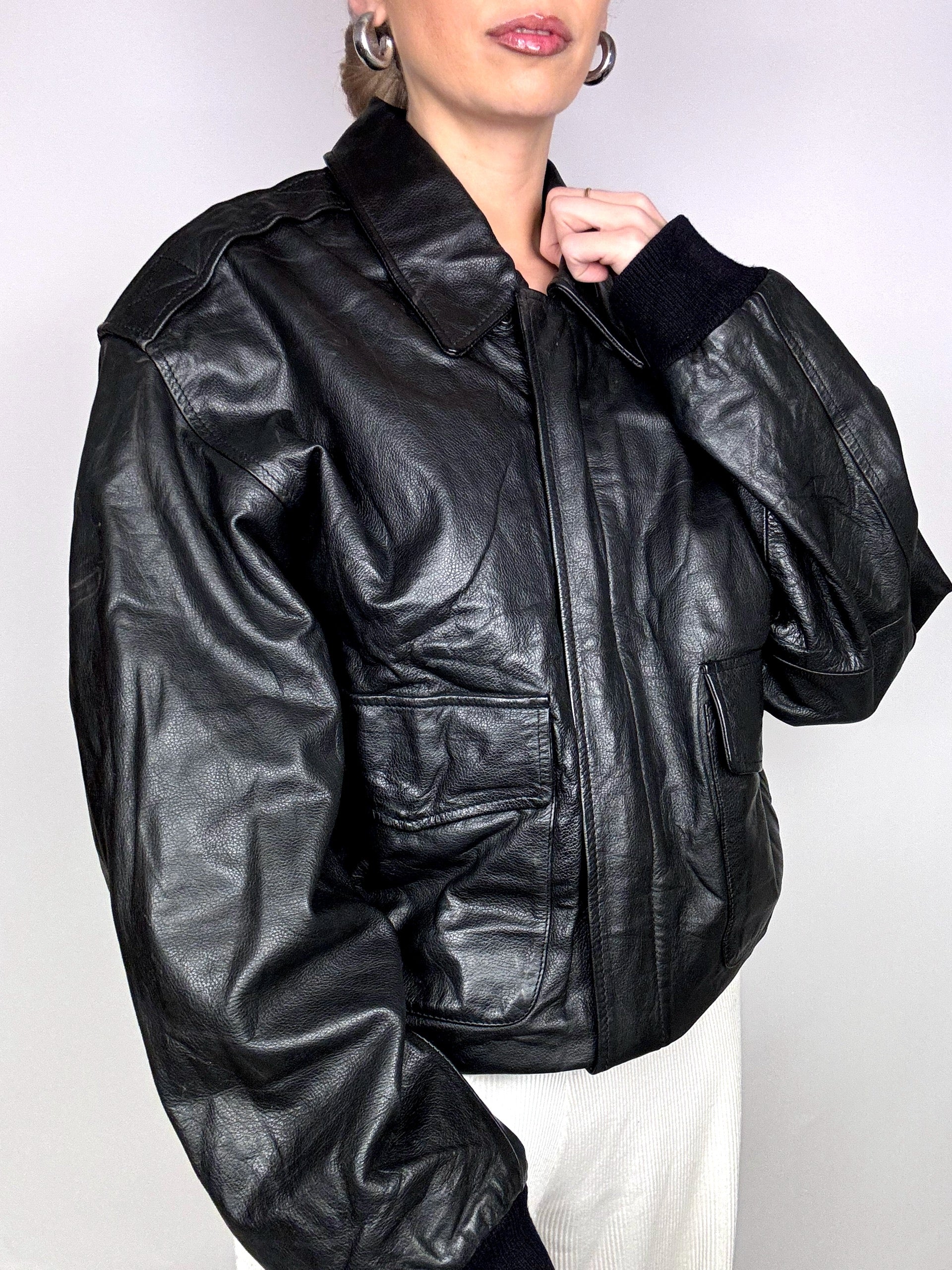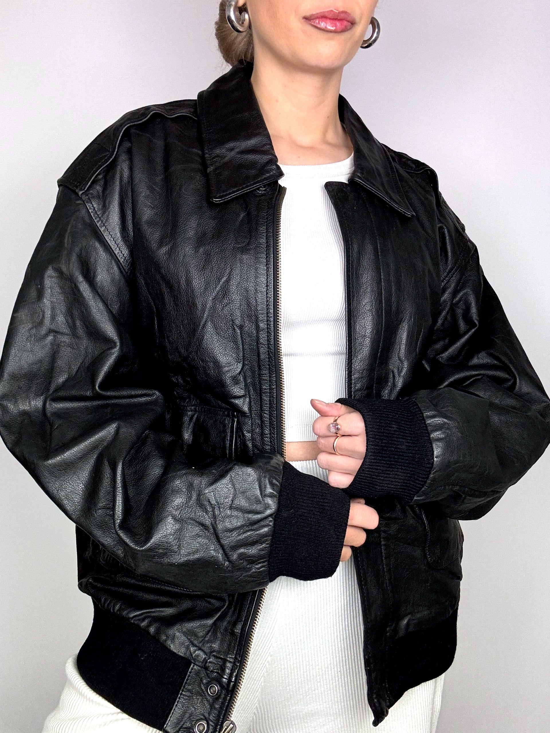 Blouson oversize TYPE 2-A noir en cuir L vintage