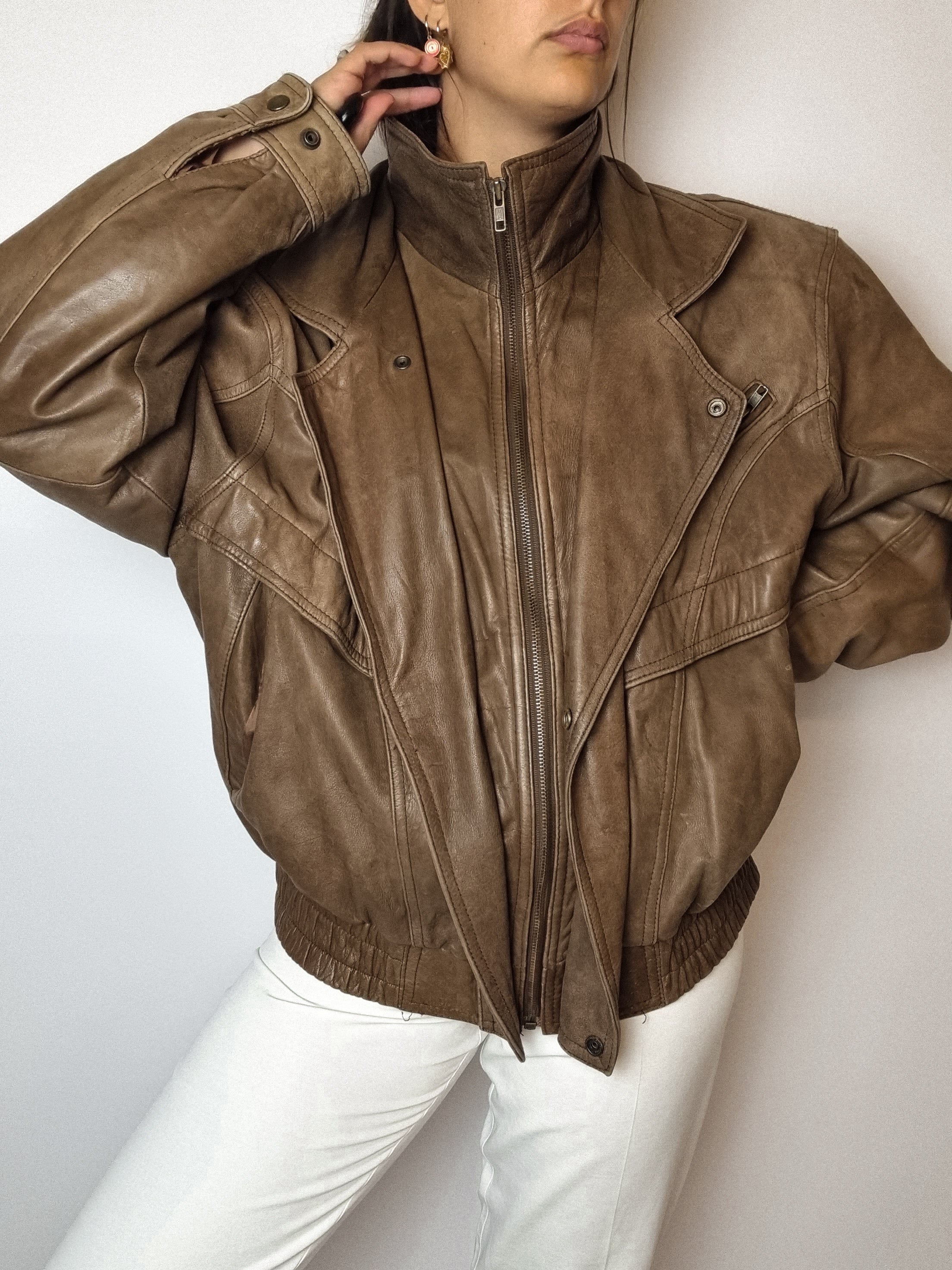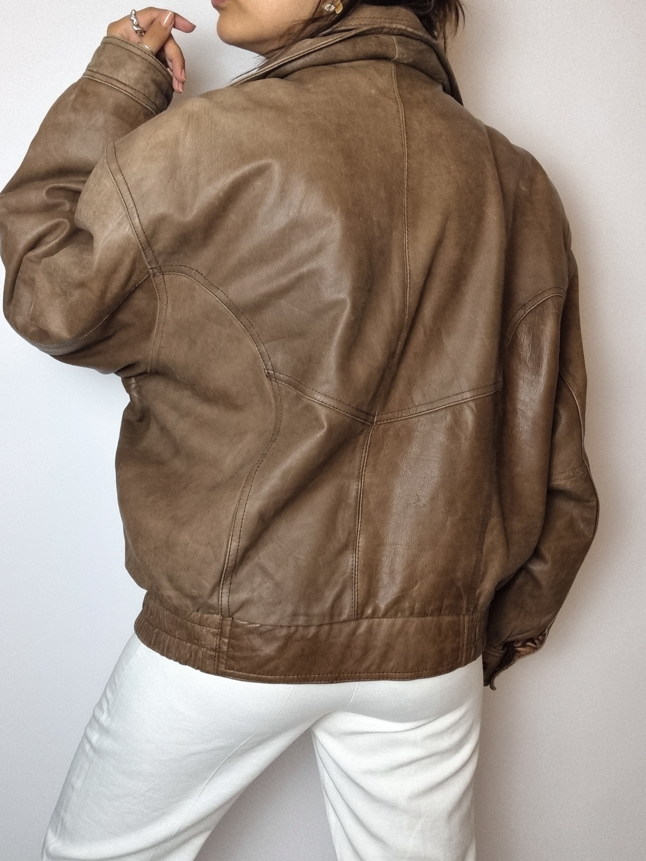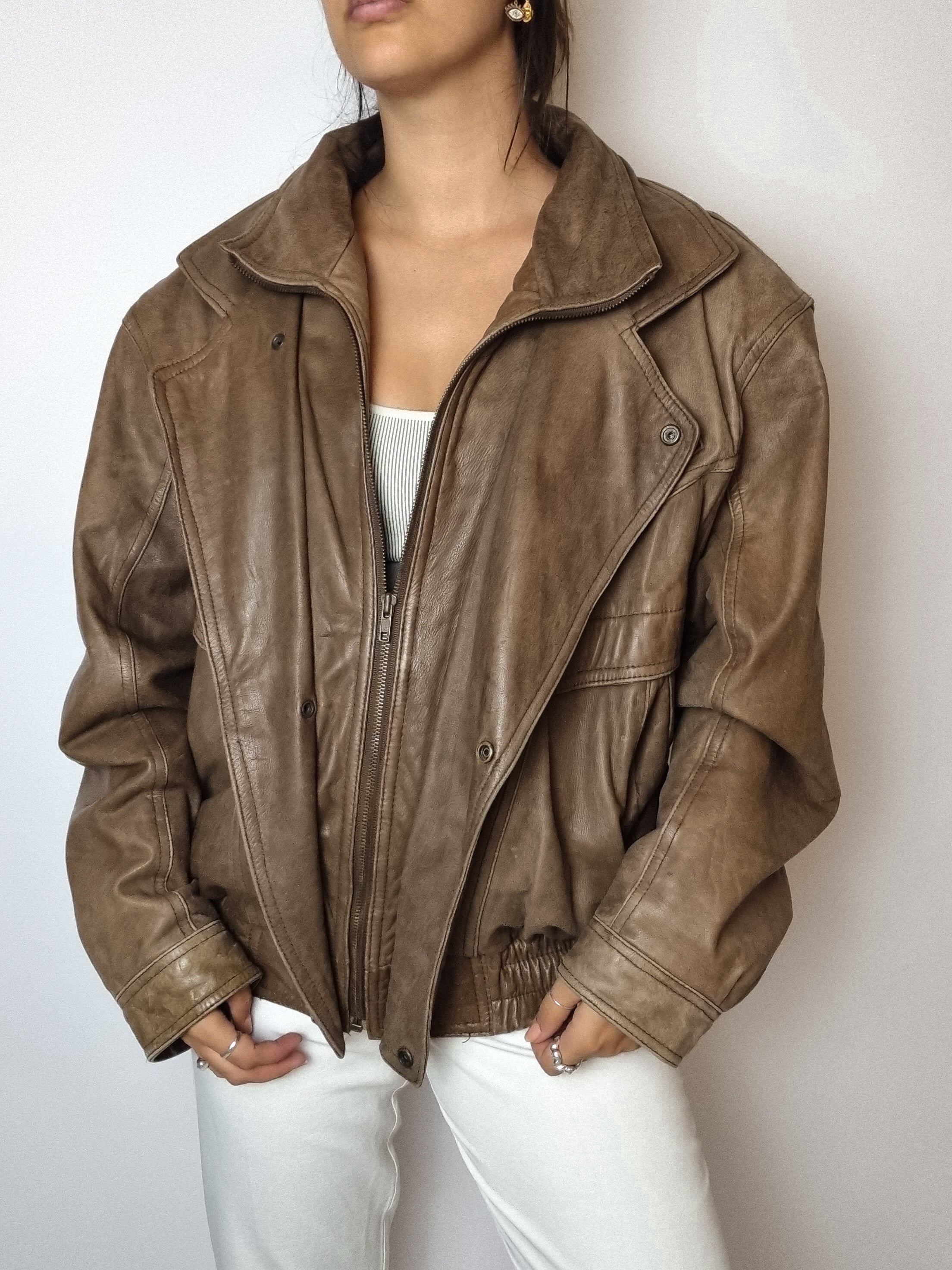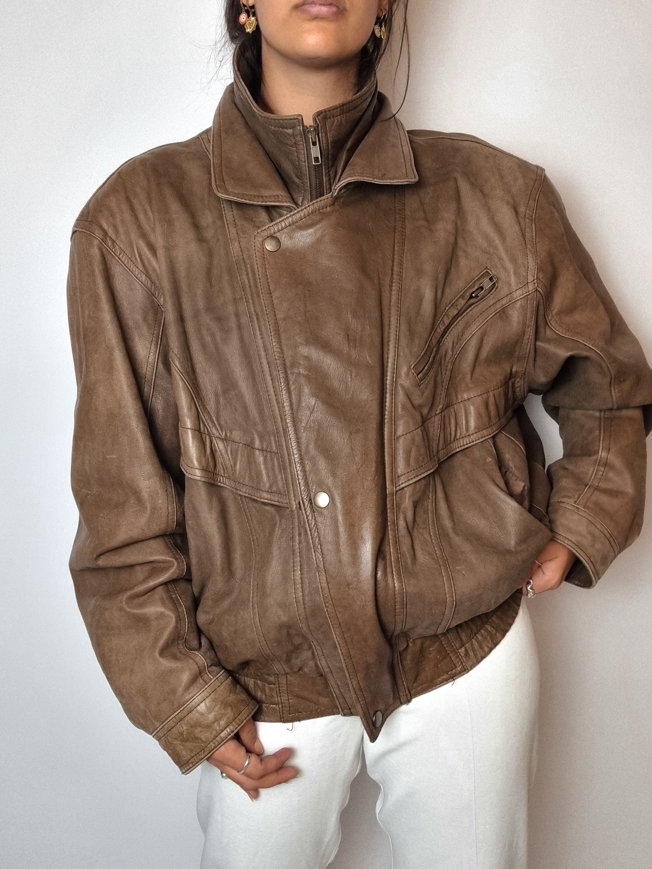 Bombardier en cuir brun vintage L