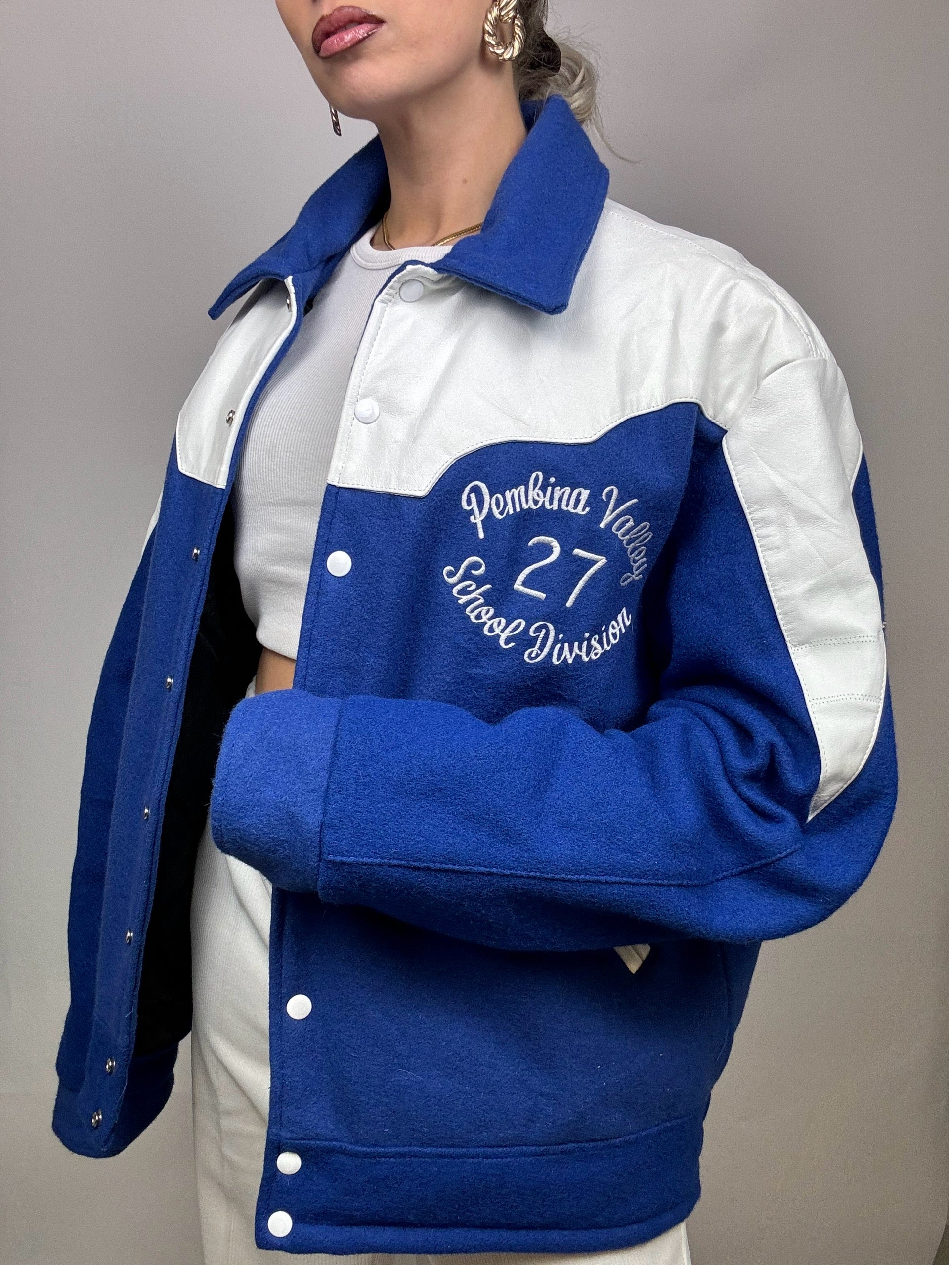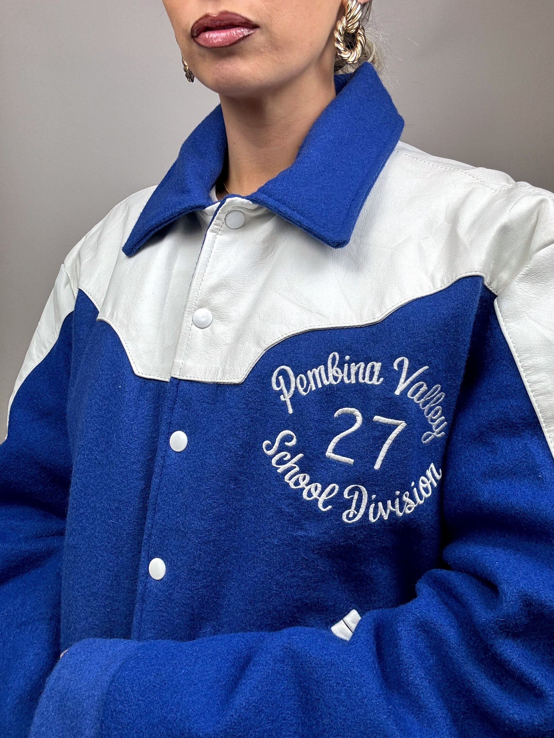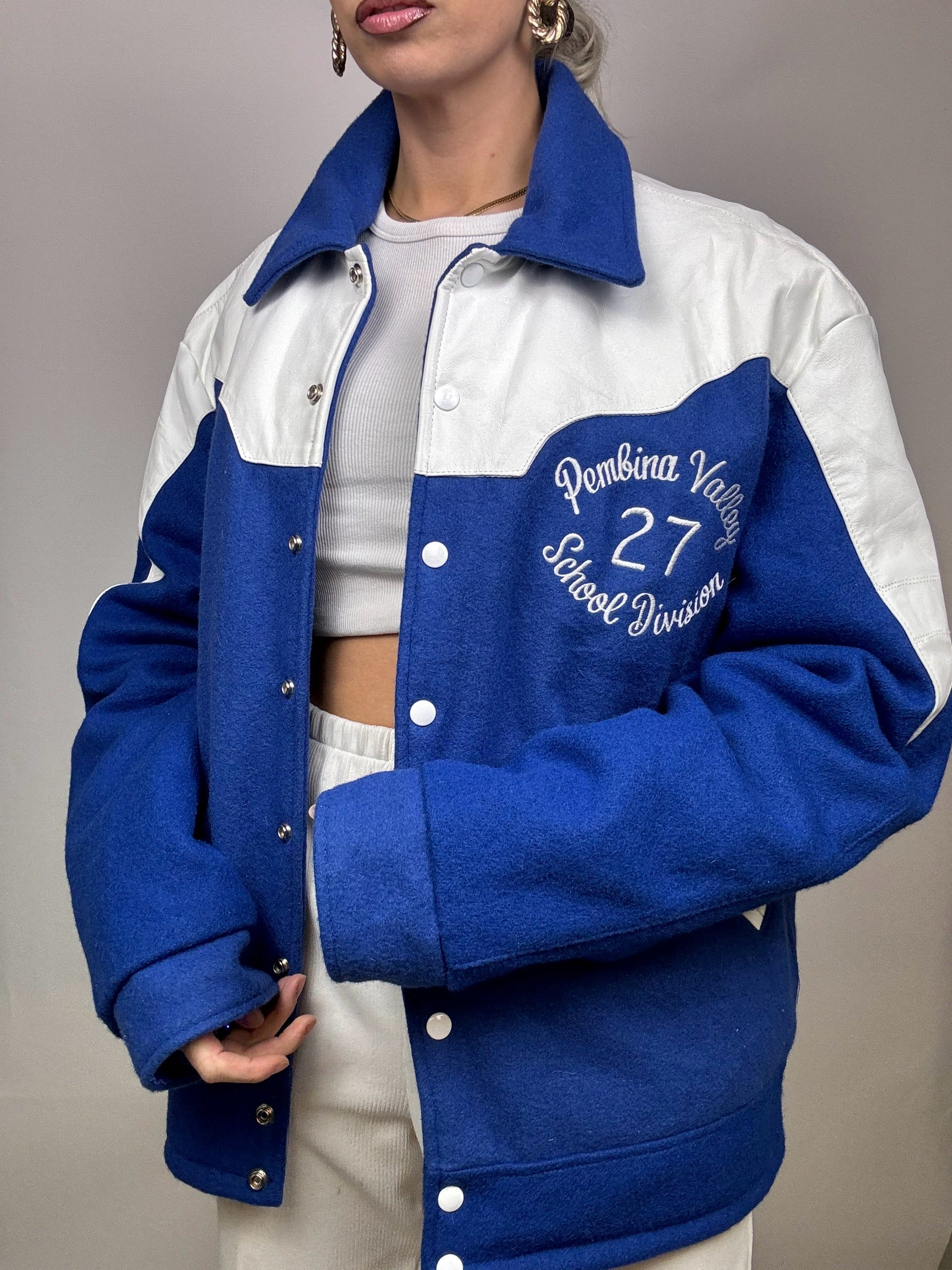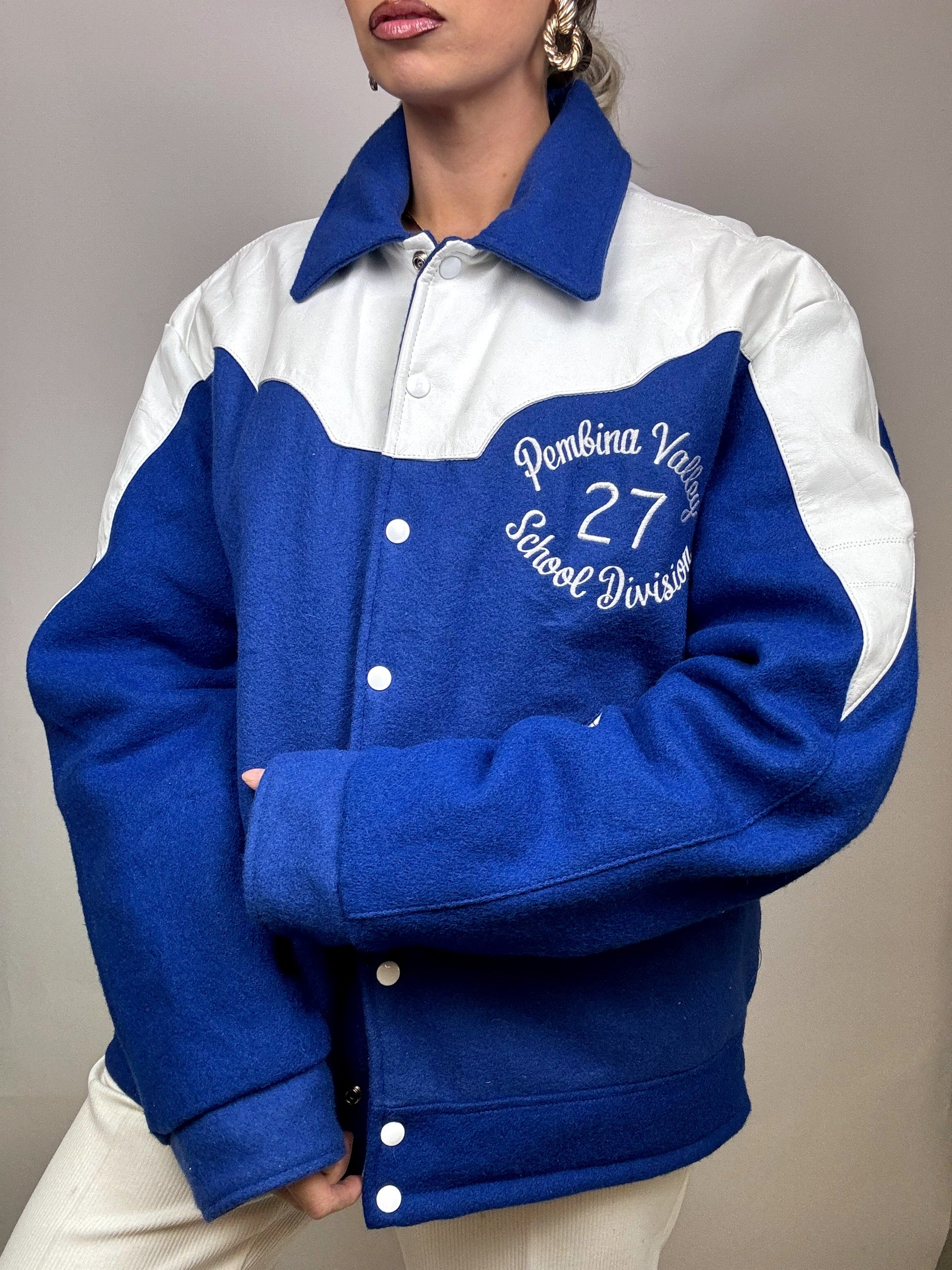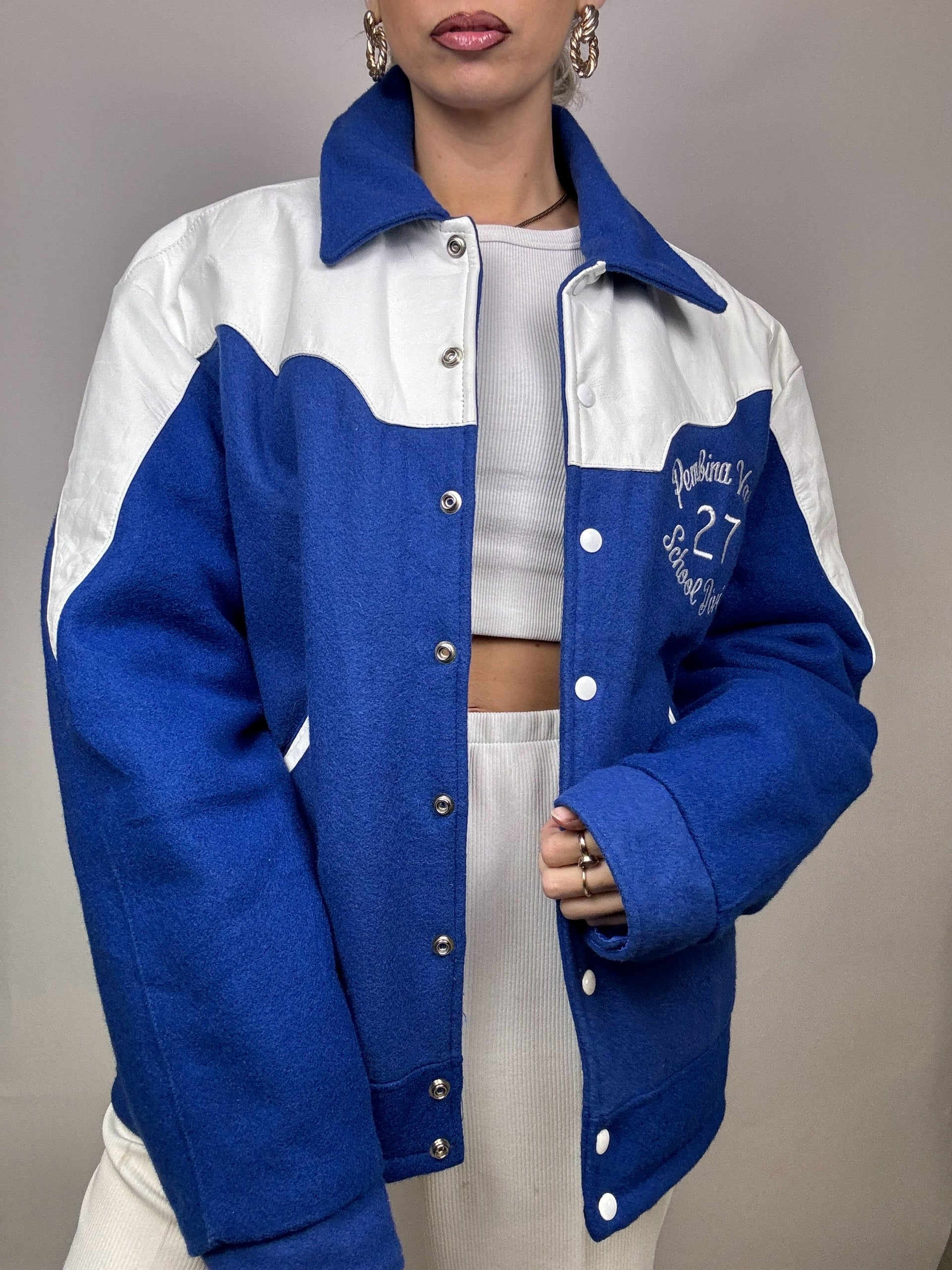 Bomber Americain bi-matière L/XL bleu Vintage