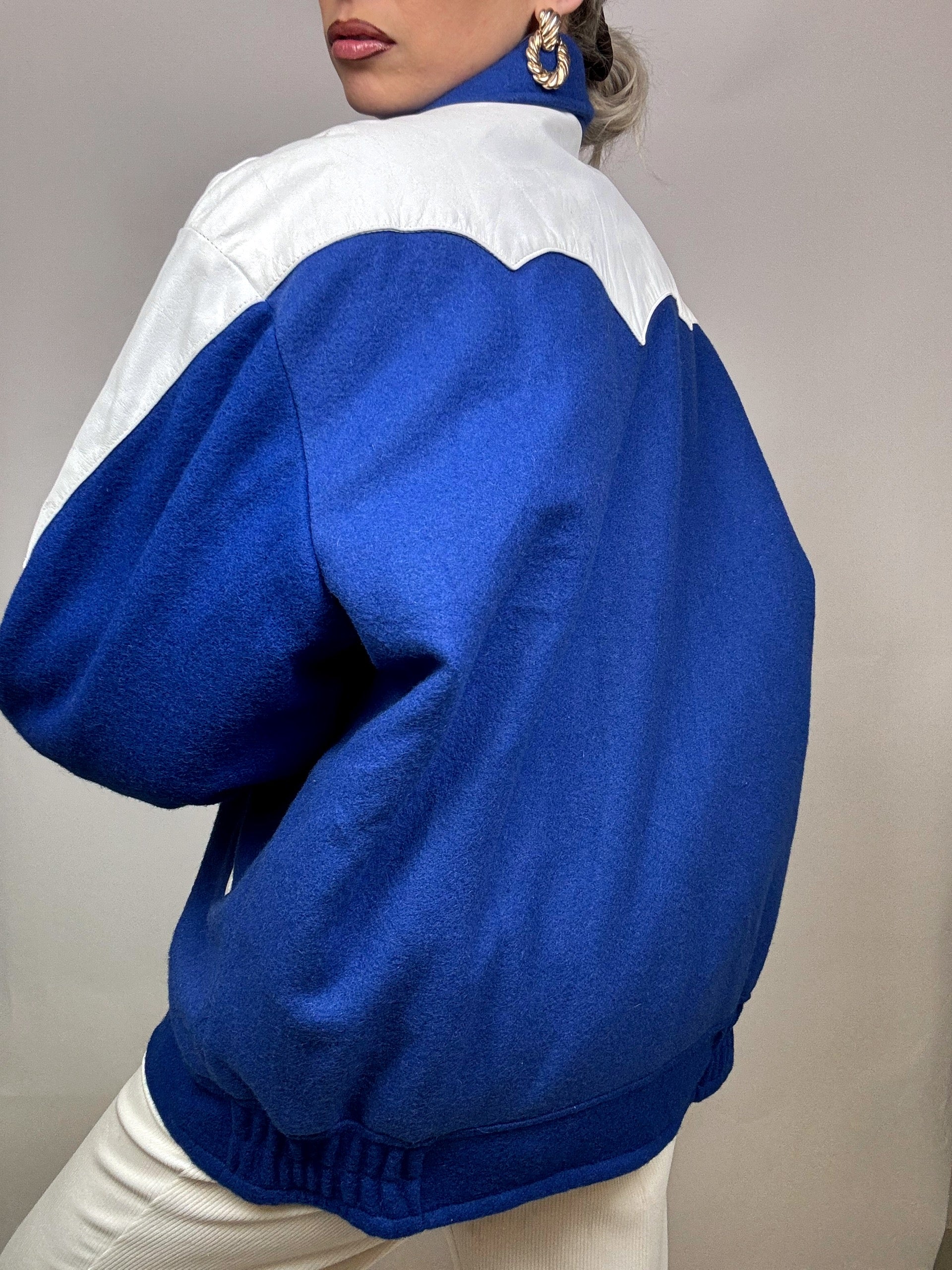 Magnifique Bomber en laine avec empiècement en cuir !