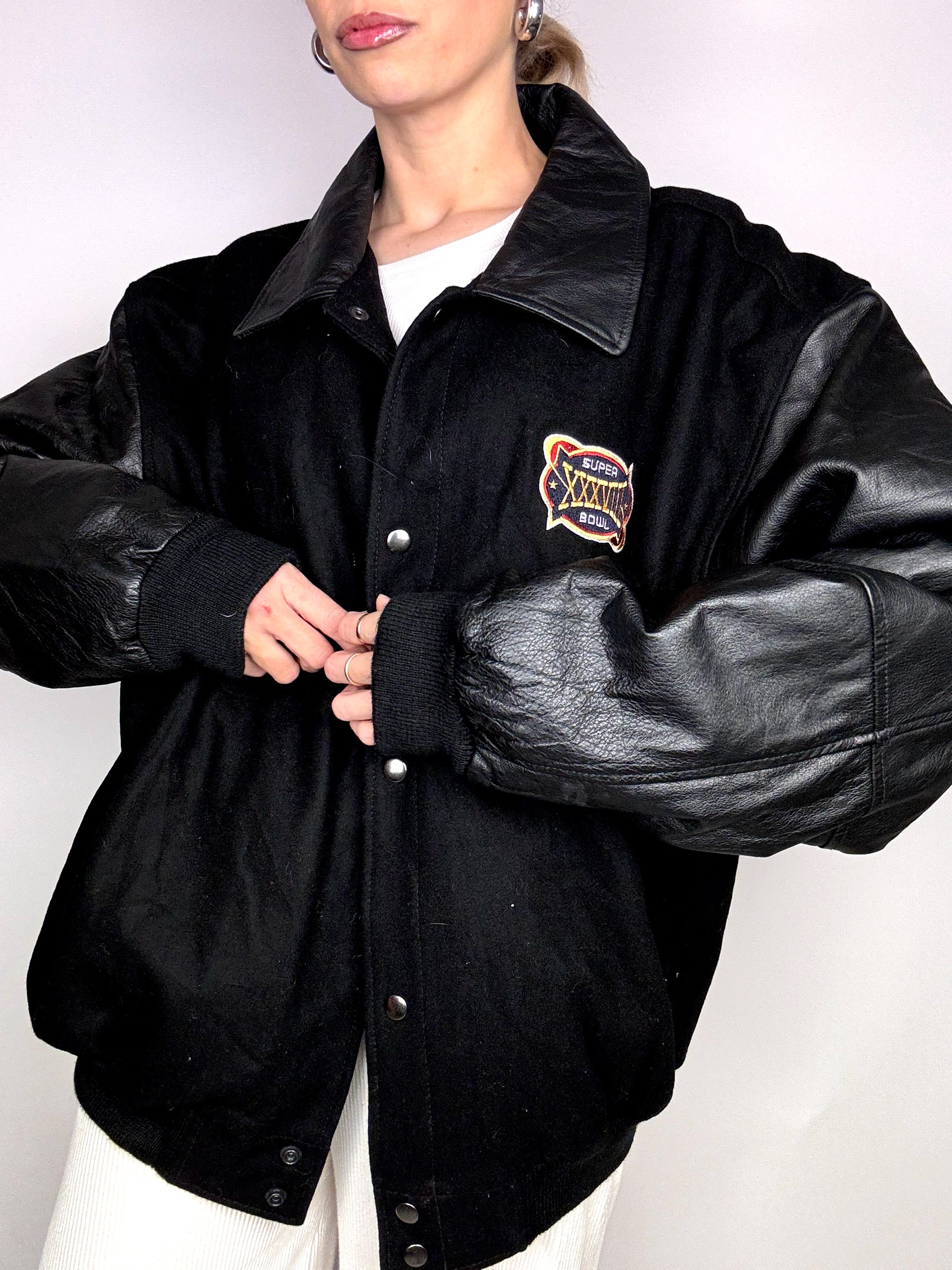 Bomber Americain noir bi-matière NFL Superbowl XL Vintage