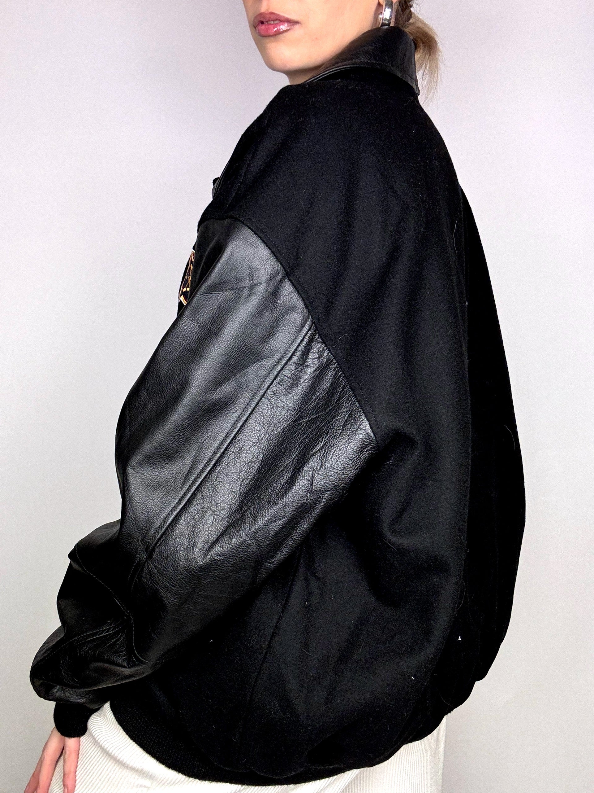 Une veste décidément iconique ! Elle Te tiendra au chaud grâce à sa laine épaisse et ses manches en cuir.