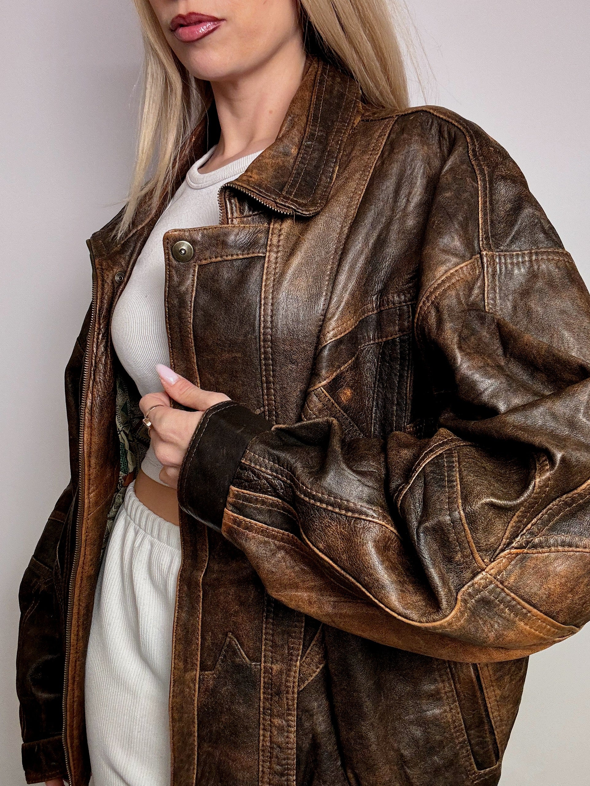 Elle est brune avec des reflets parfois jusqu'au orangé, elle est très bien finie, travaillée par coutures sur toute la pièce, le dos est juste fou !