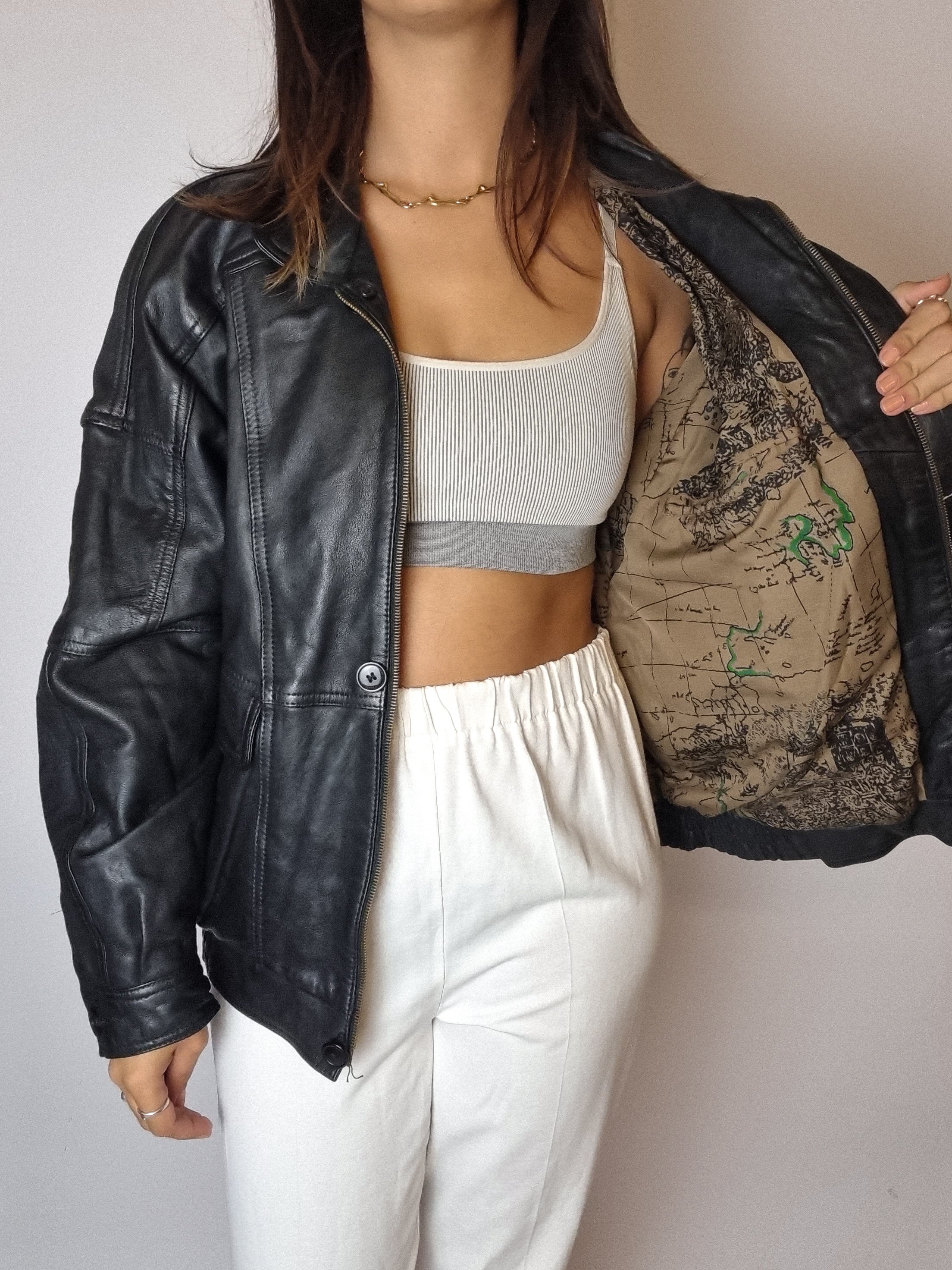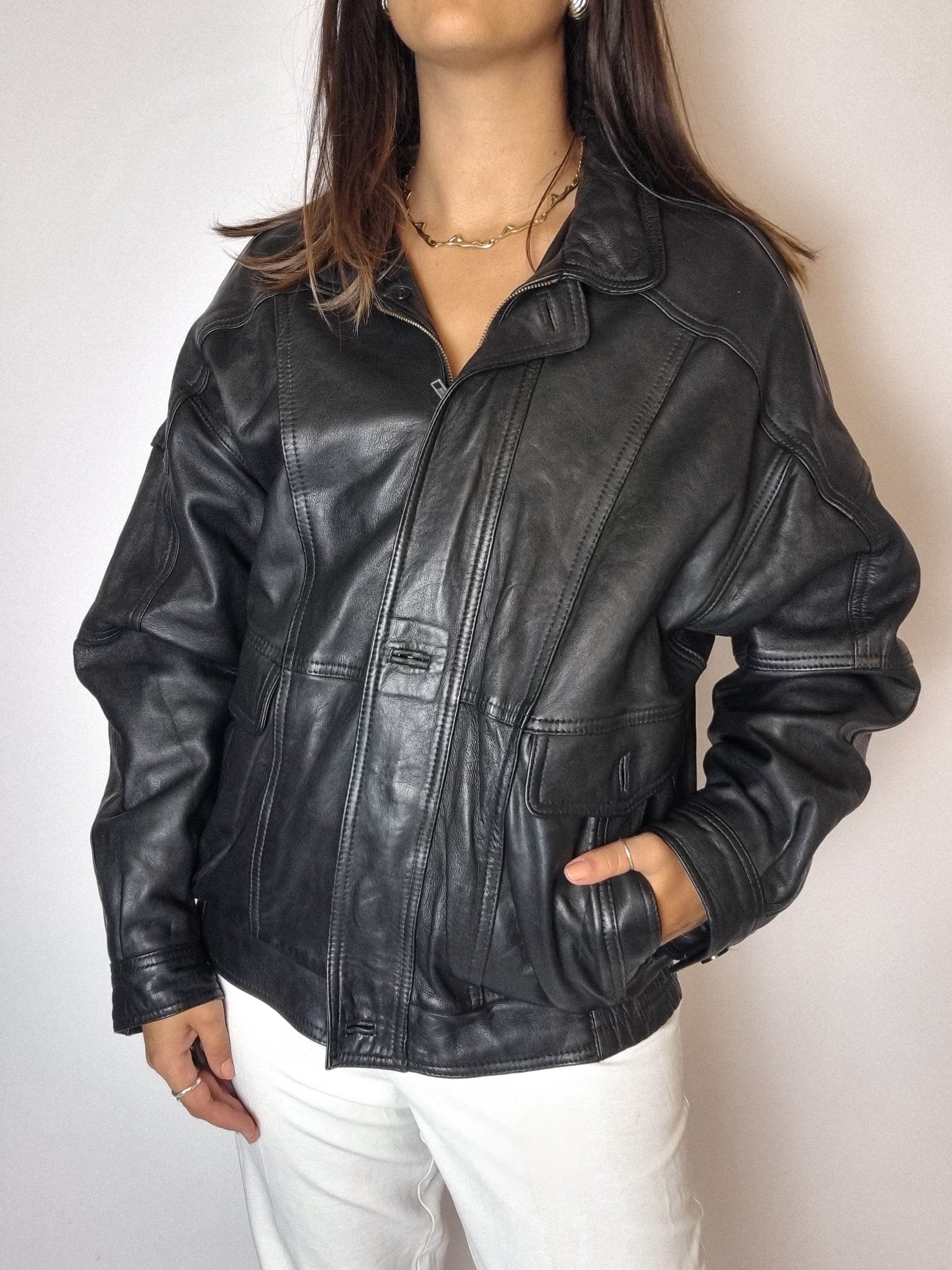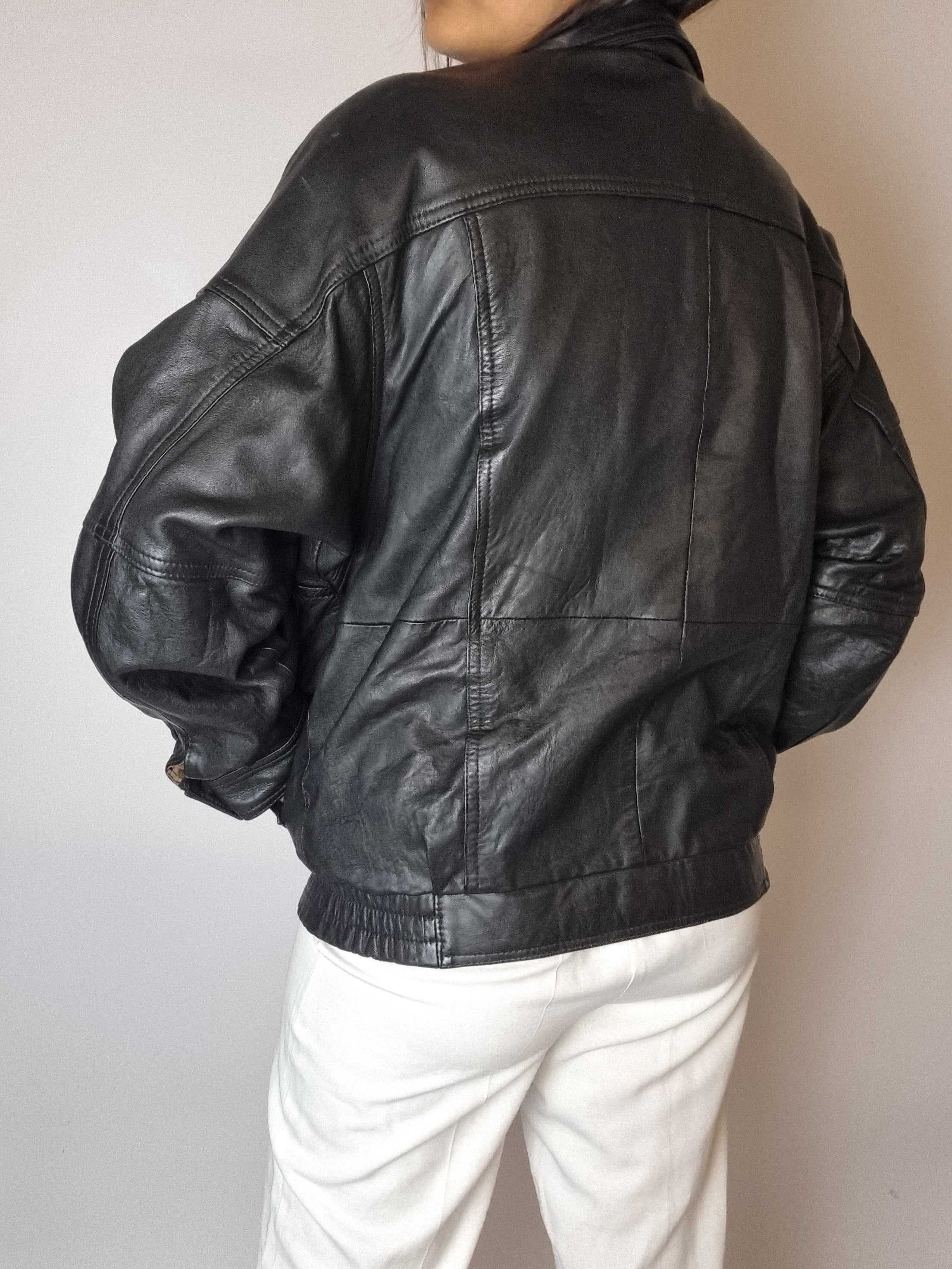 Bomber en cuir noir vintage S/M