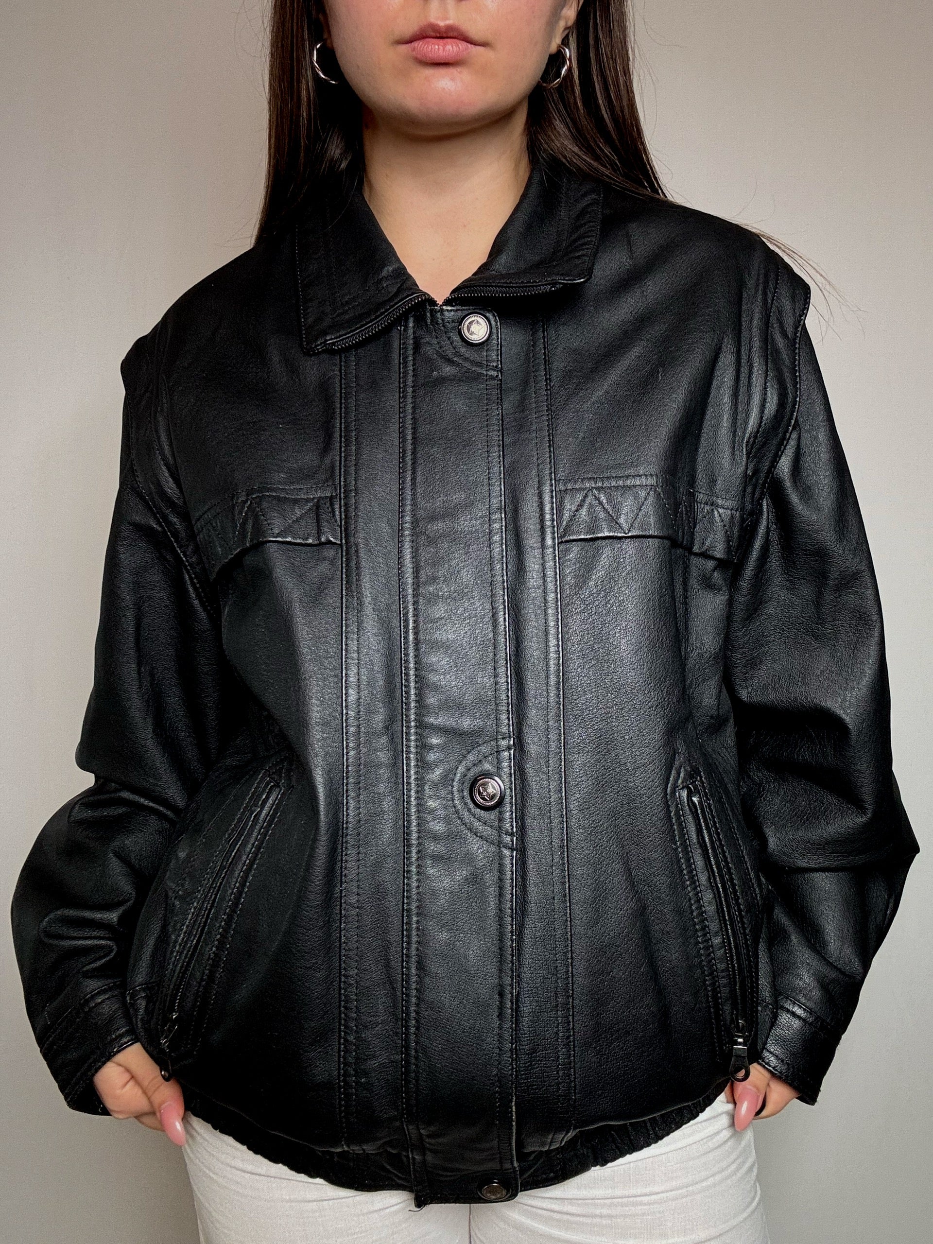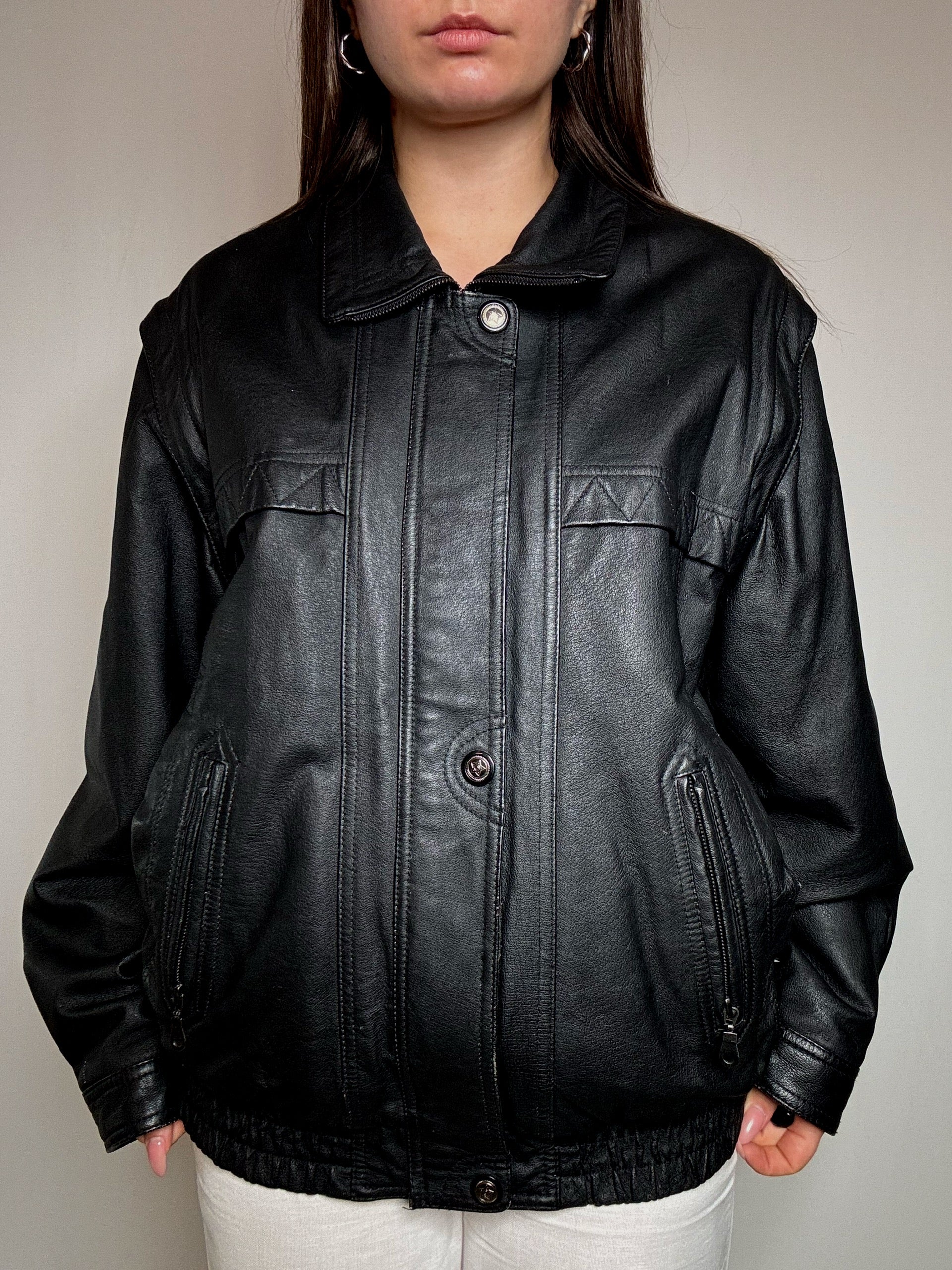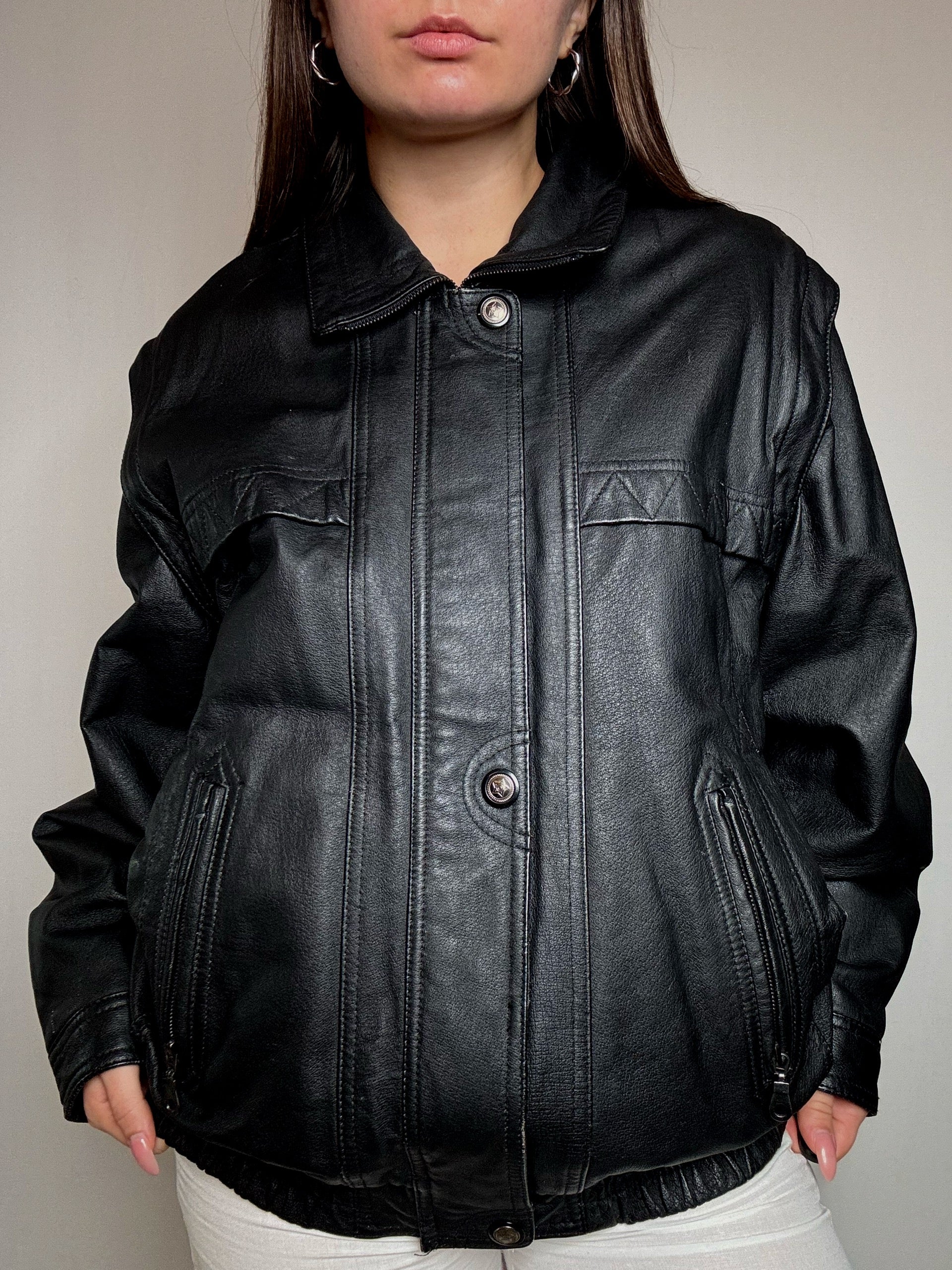 Bomber en cuir noir XL vintage