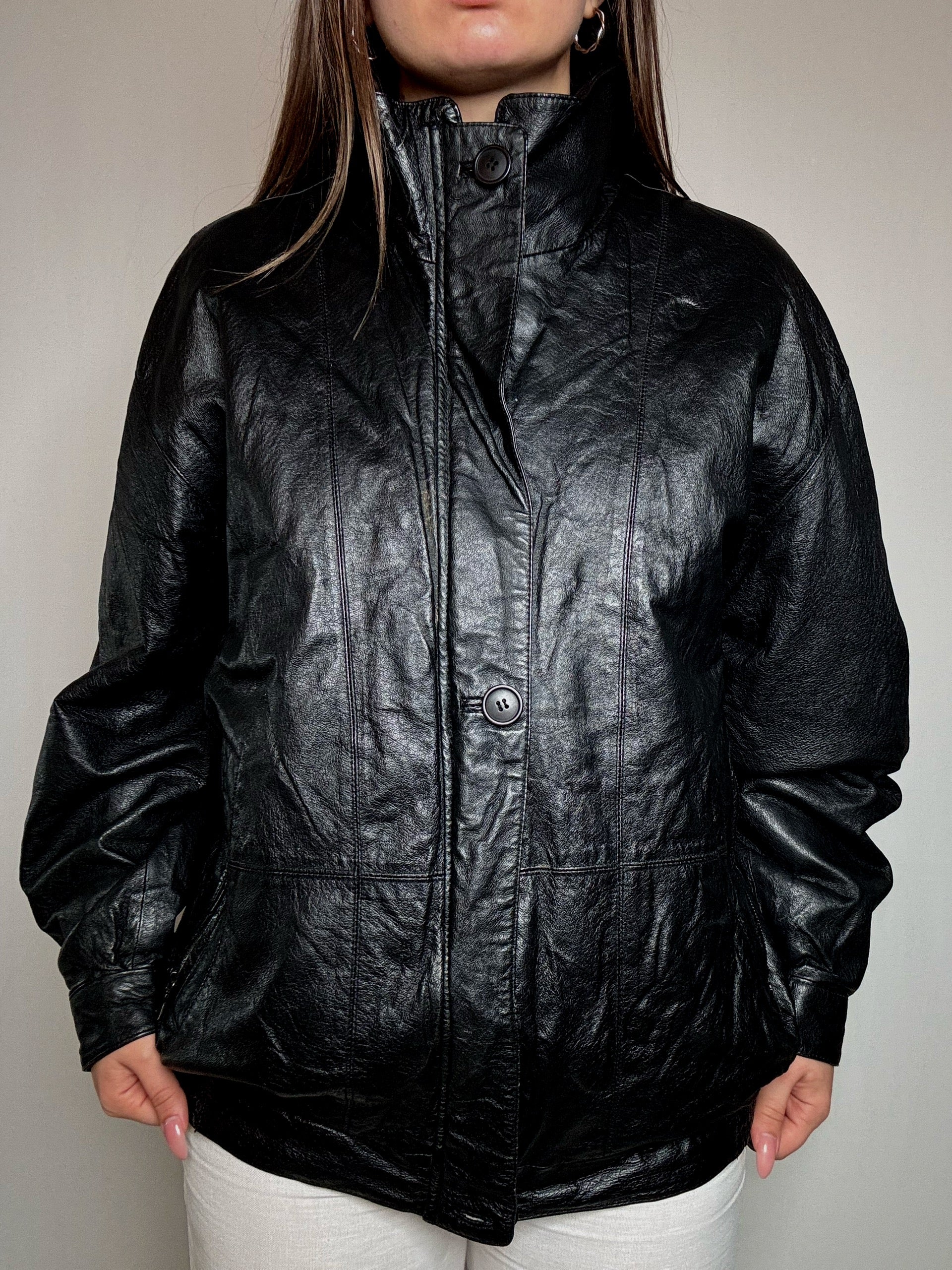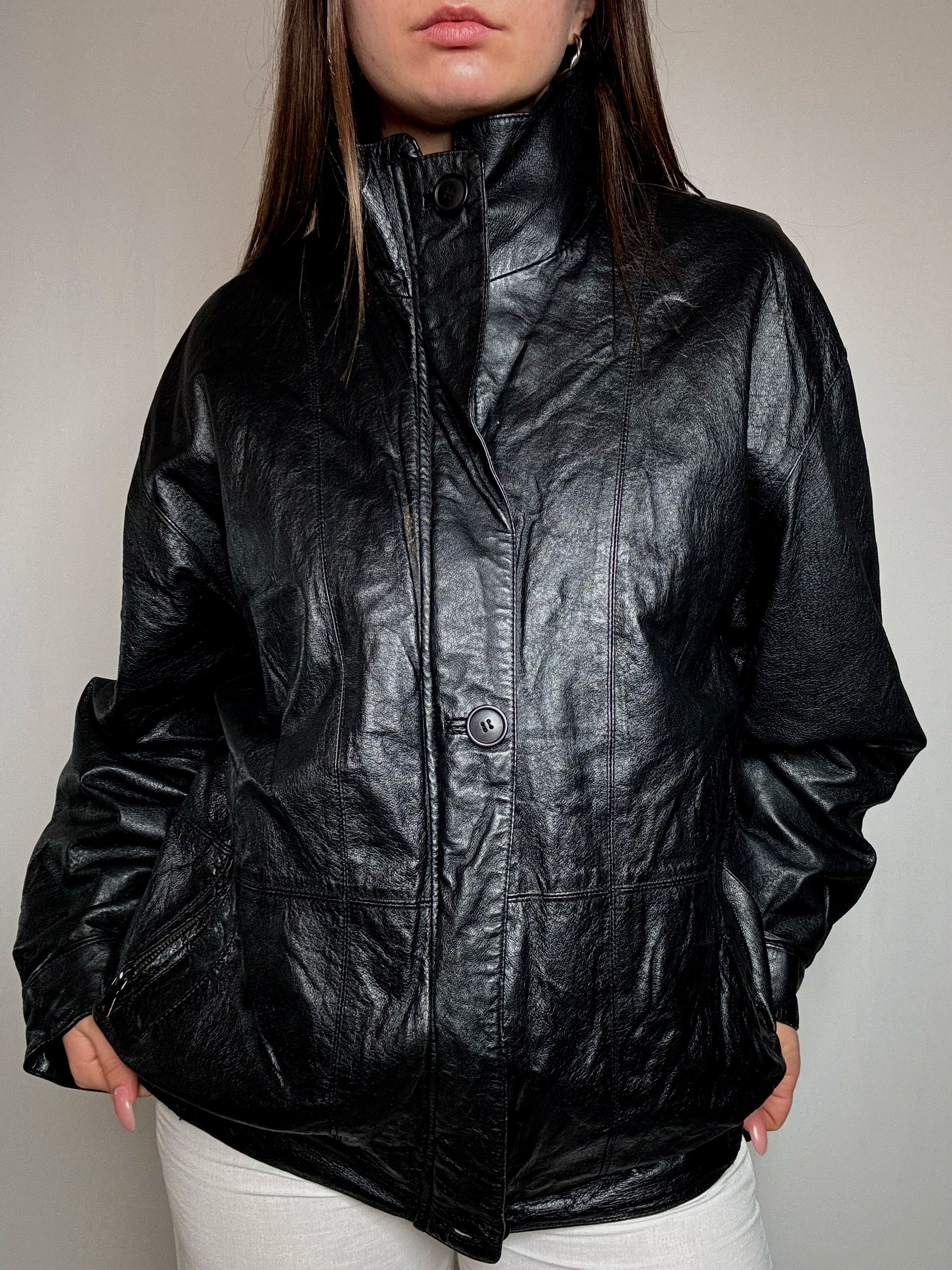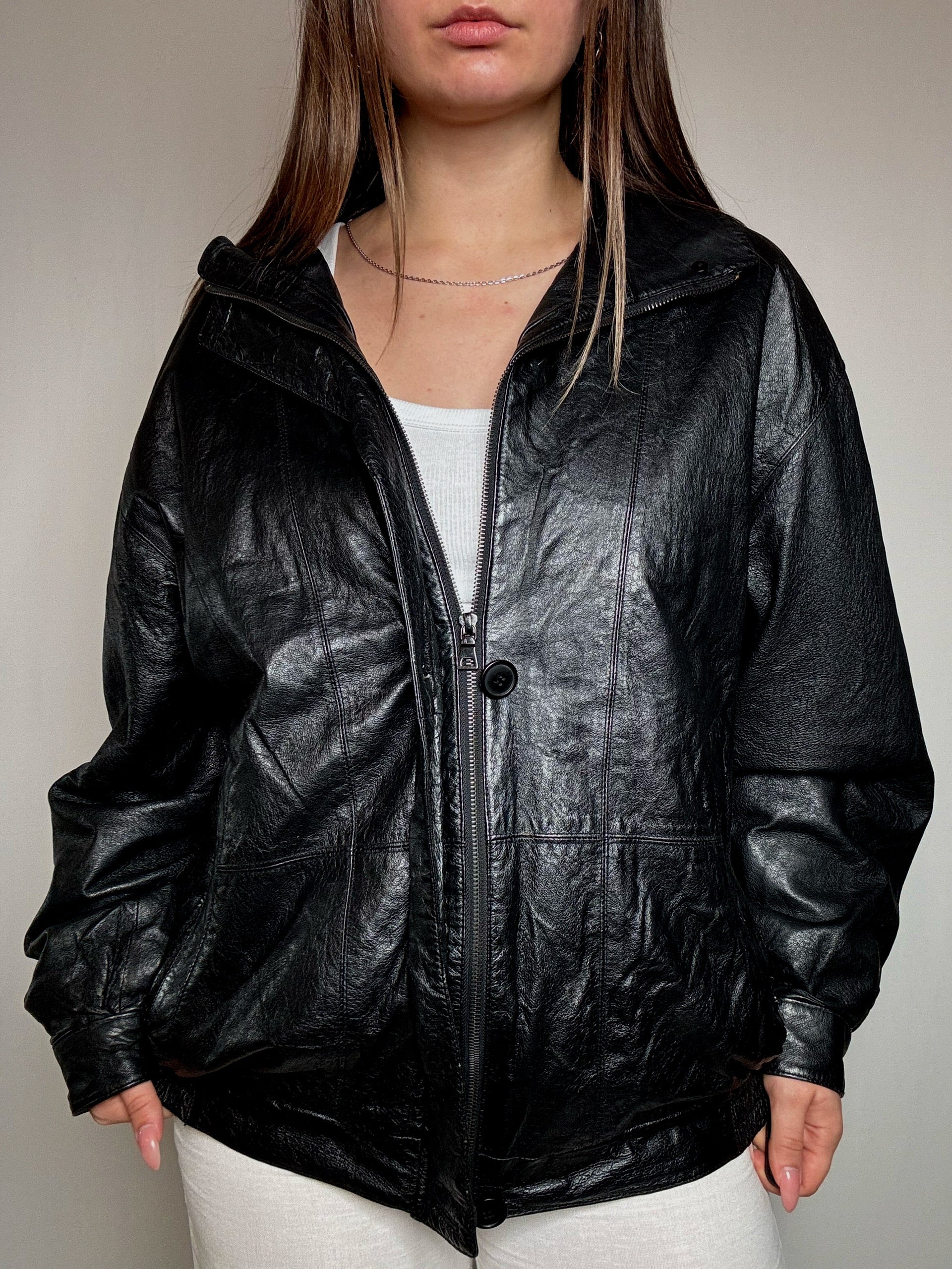 Bomber en cuir noir L/XL vintage