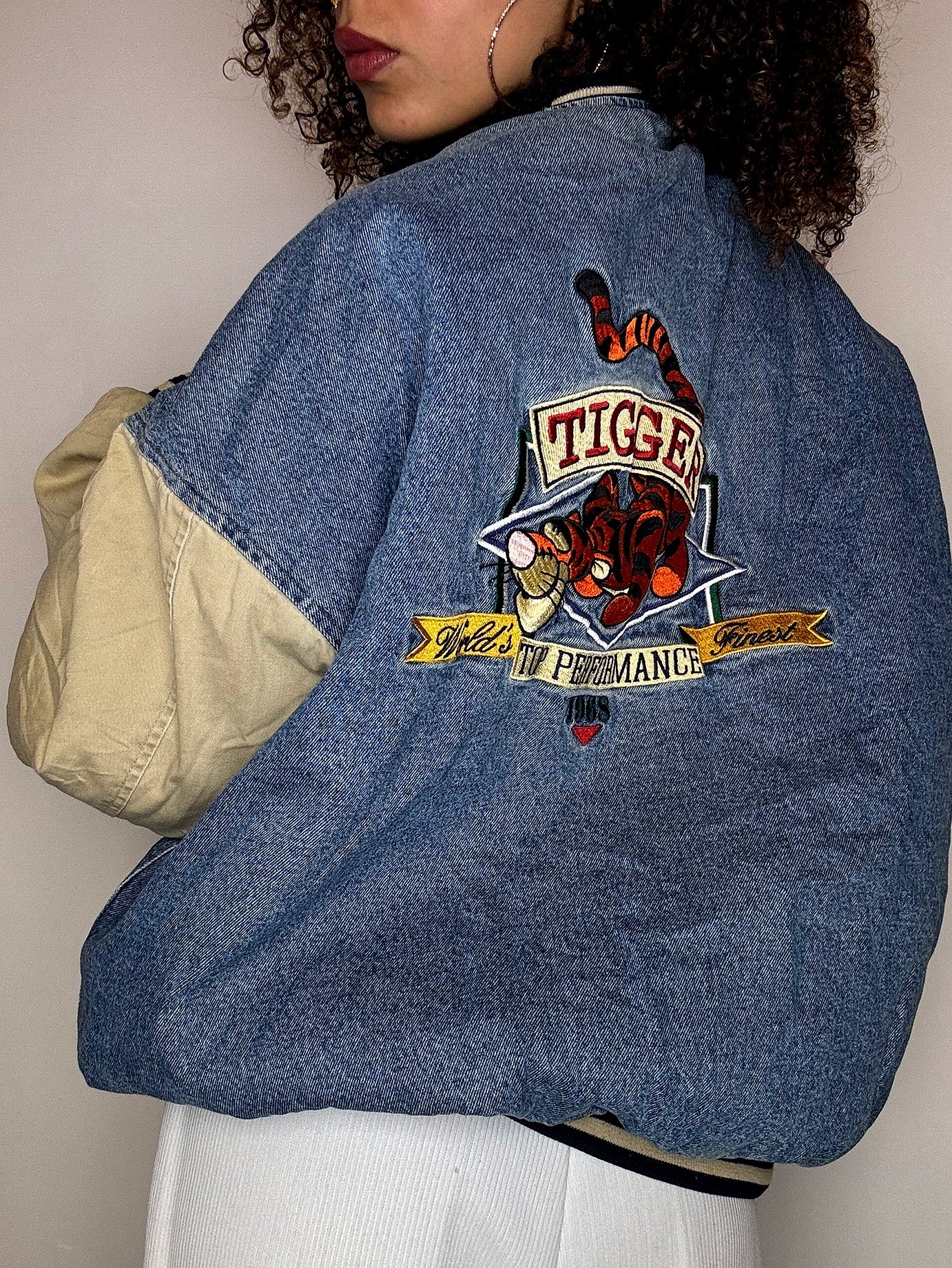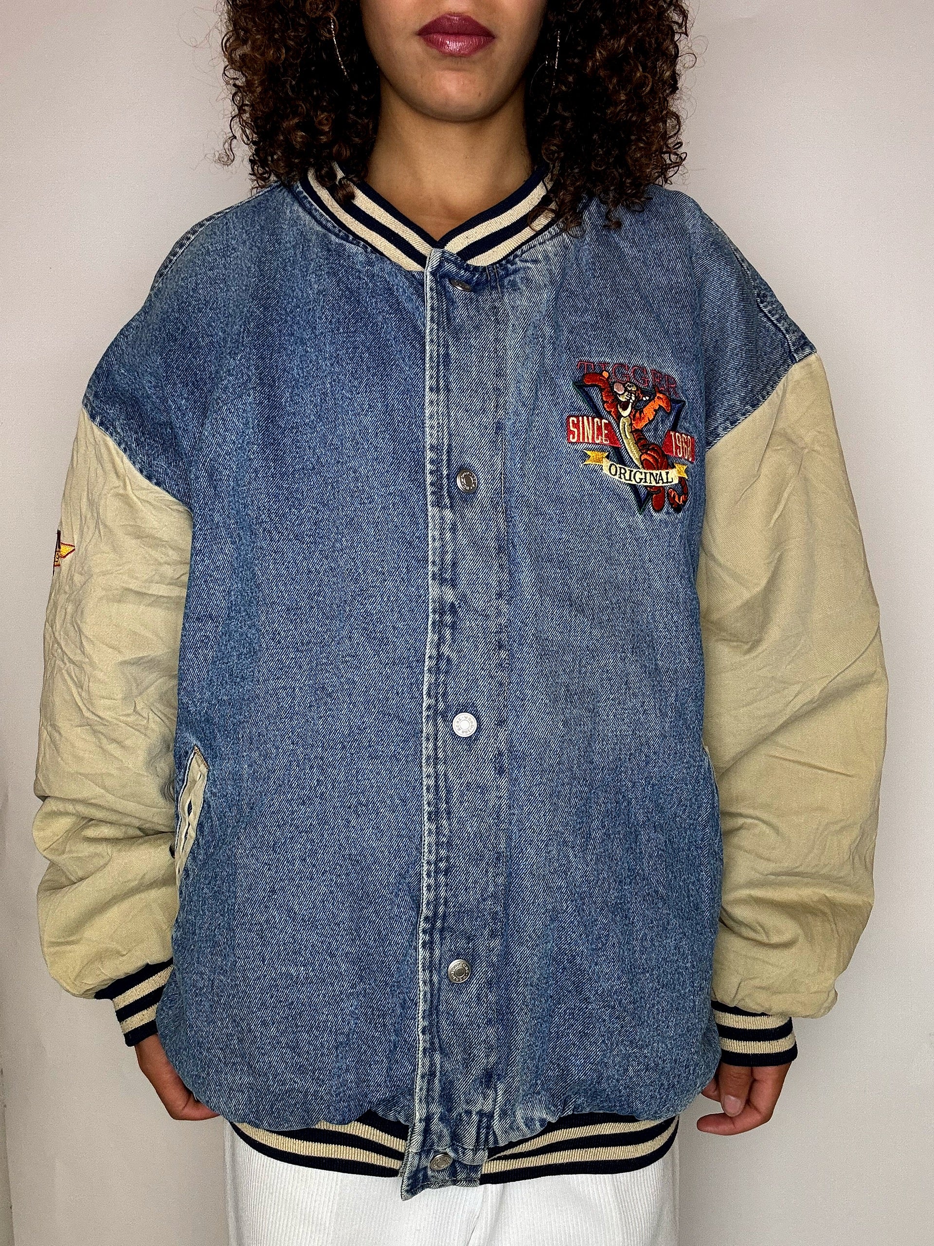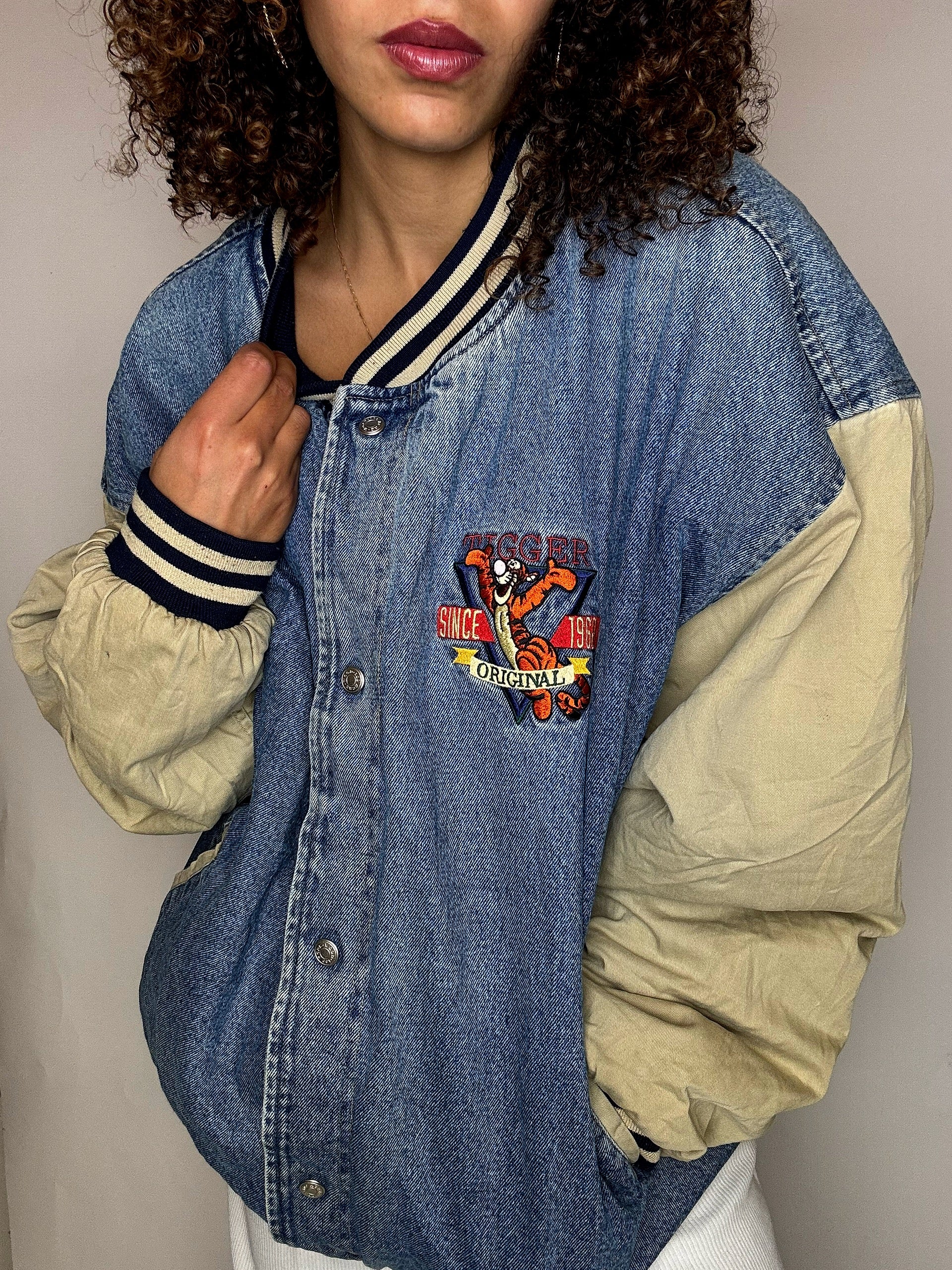 Bomber en denim brodé TIGROU XL vintage
