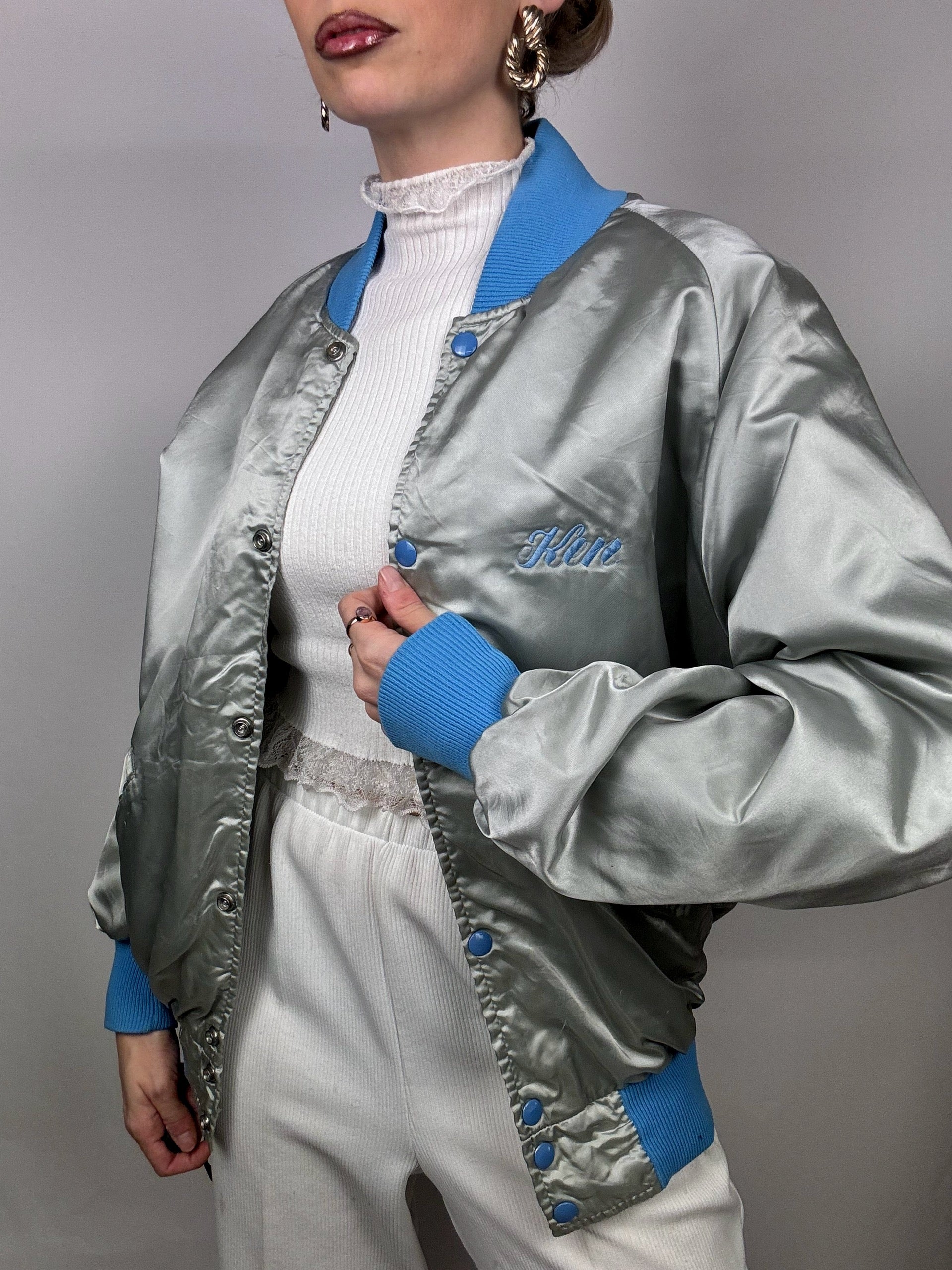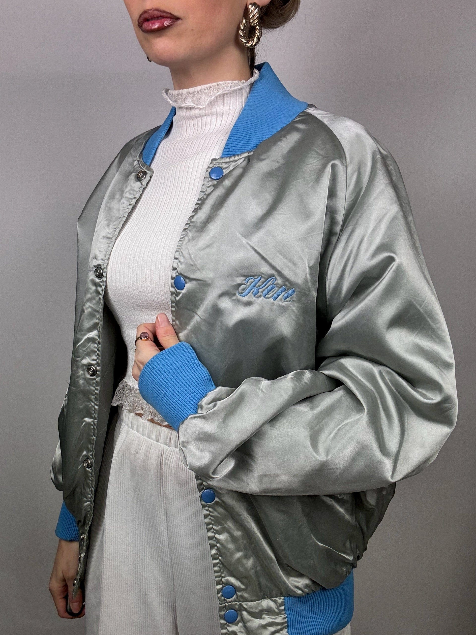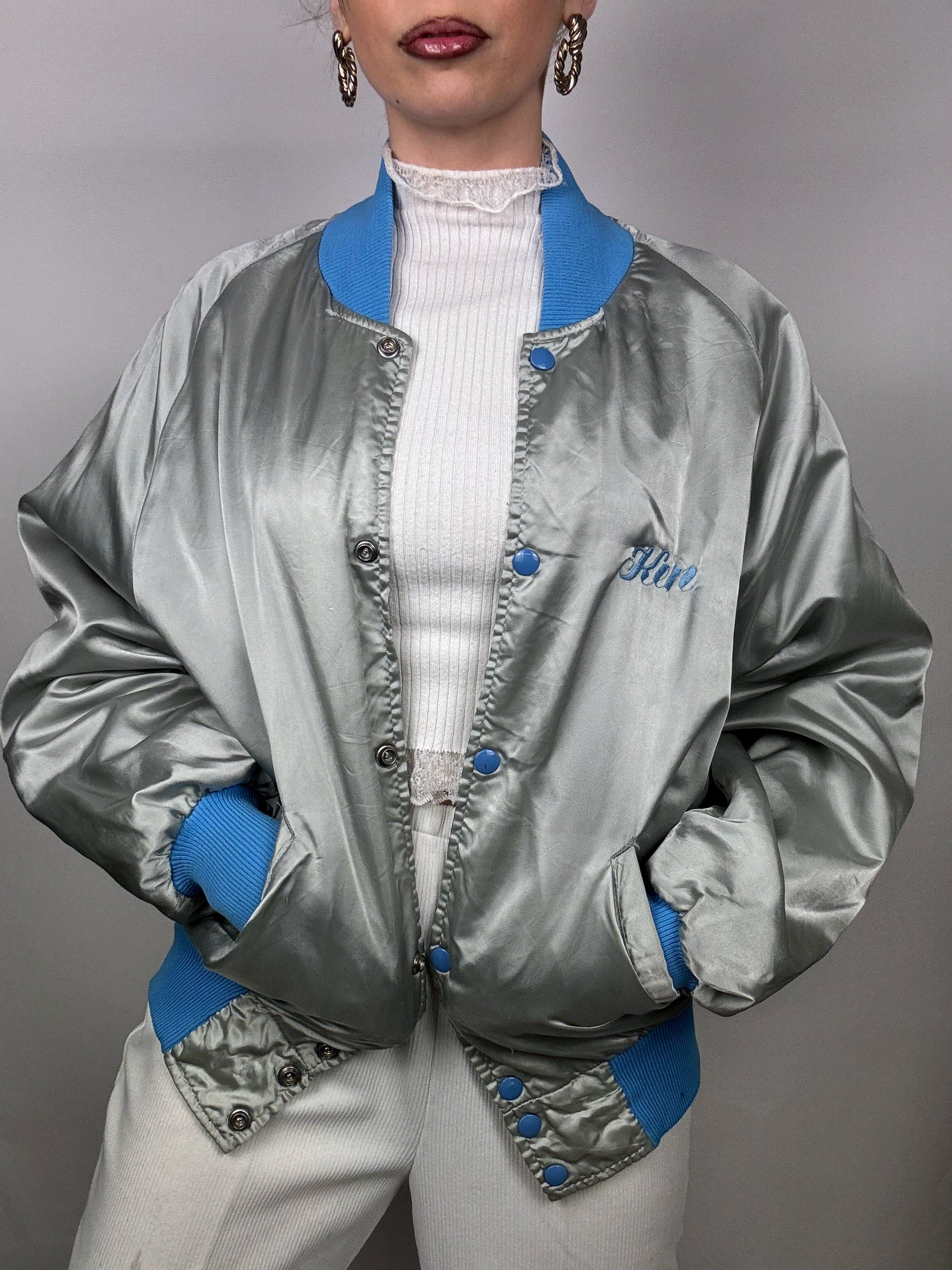 Bomber en Nylon argenté et bleu L vintage