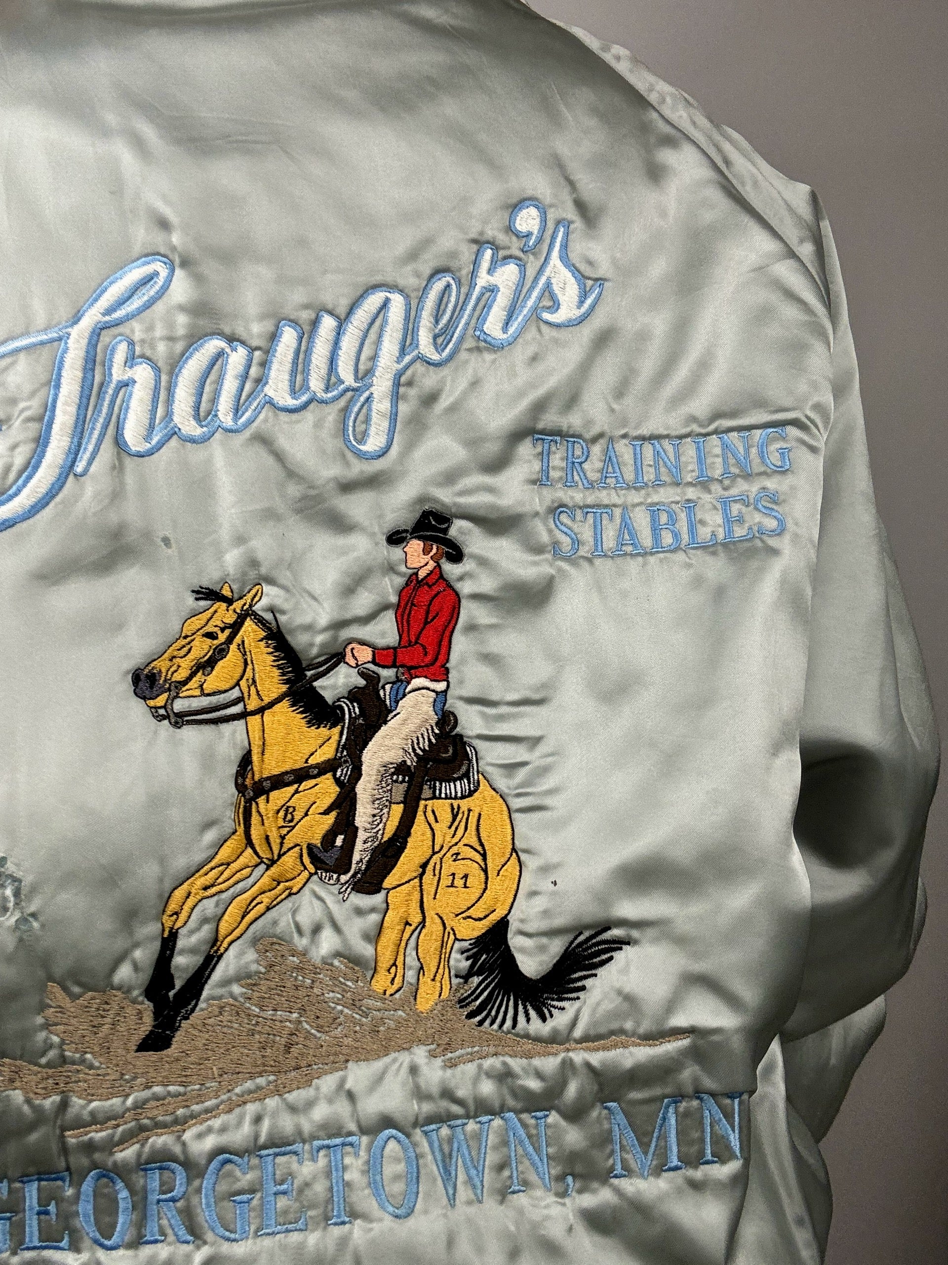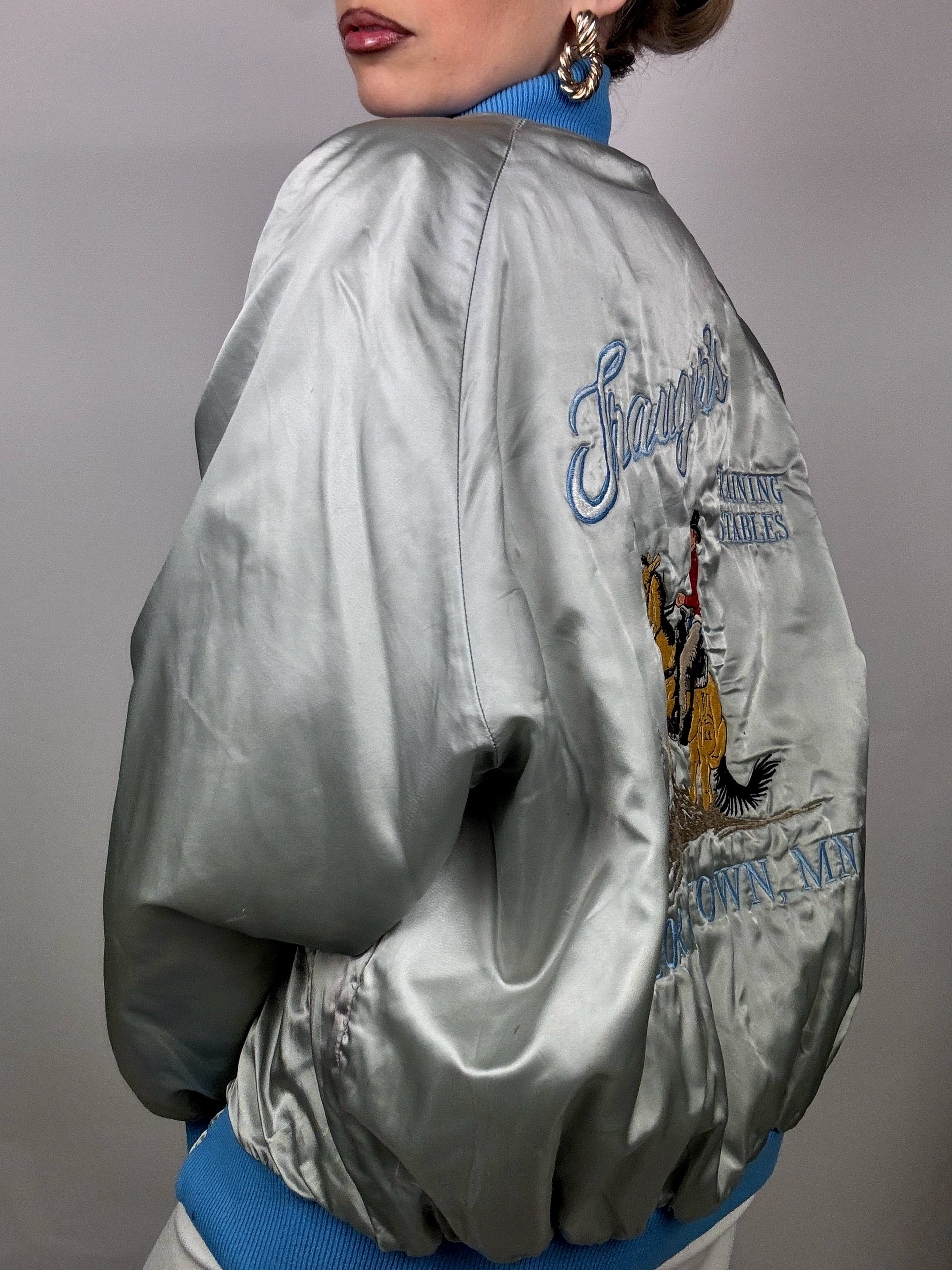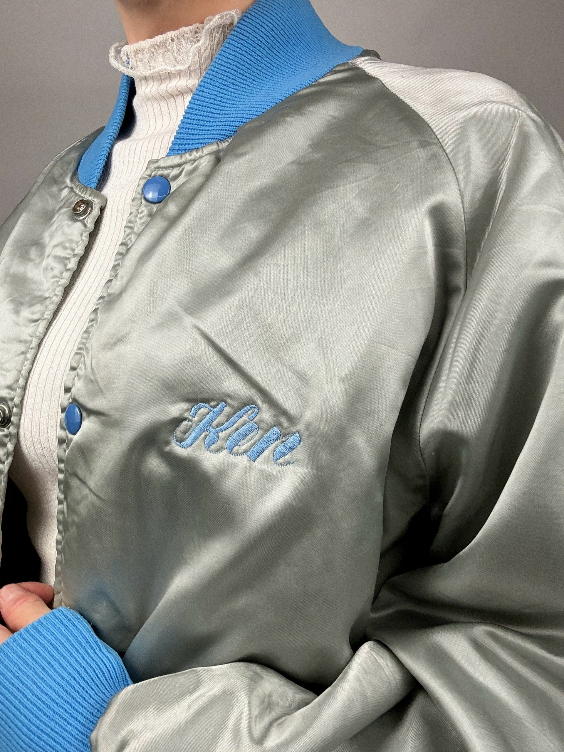 Bomber en Nylon argenté et bleu L vintage