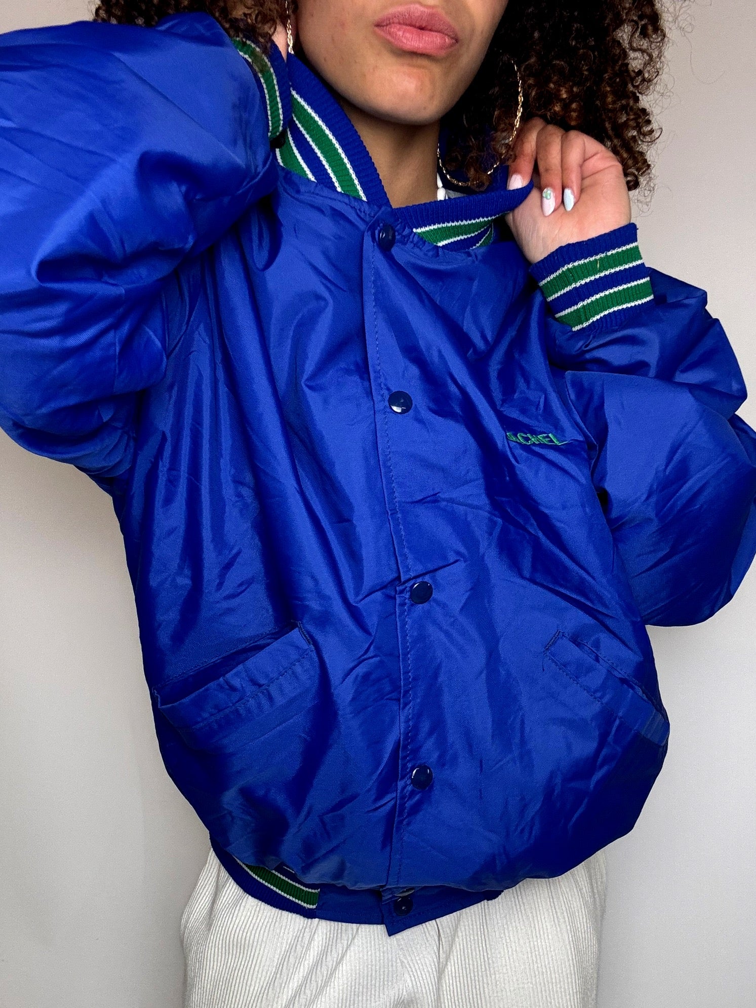 Bomber en Nylon bleu NEW TRIER L vintage