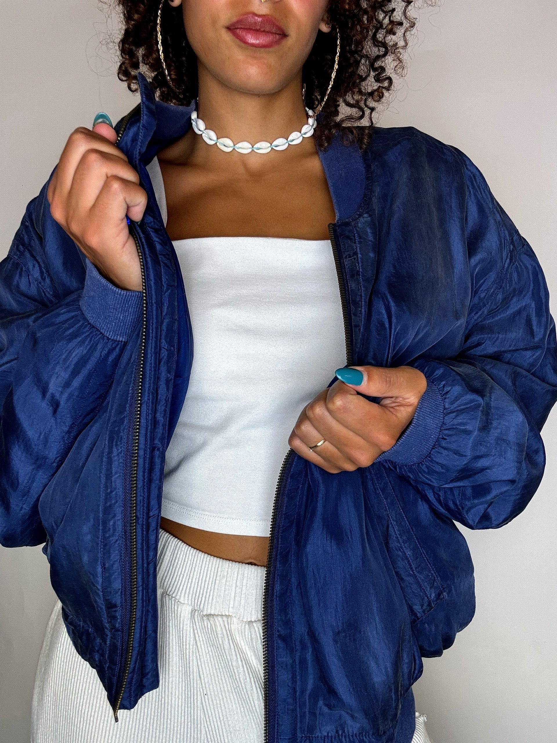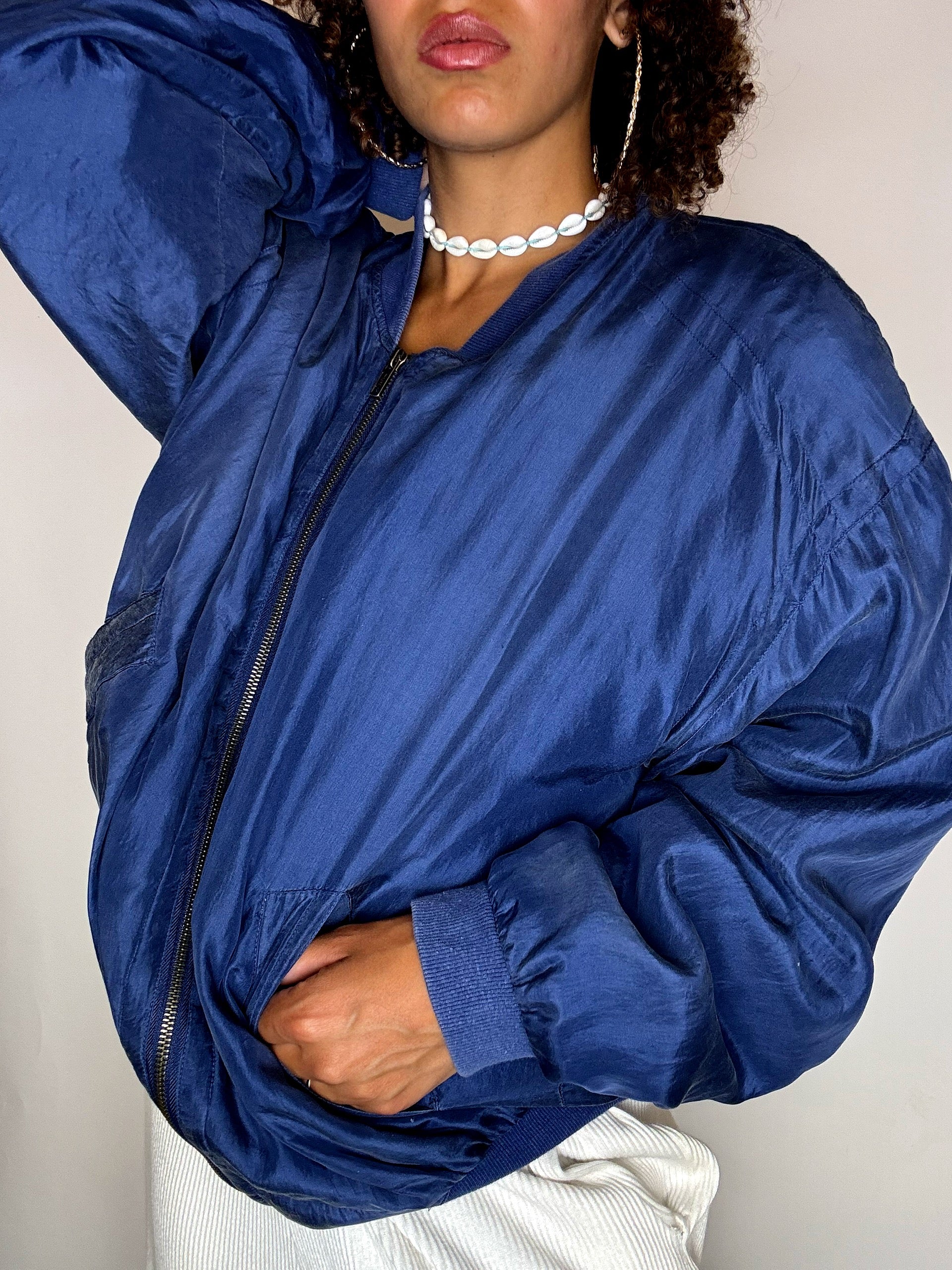 Bomber en soie bleu M vintage