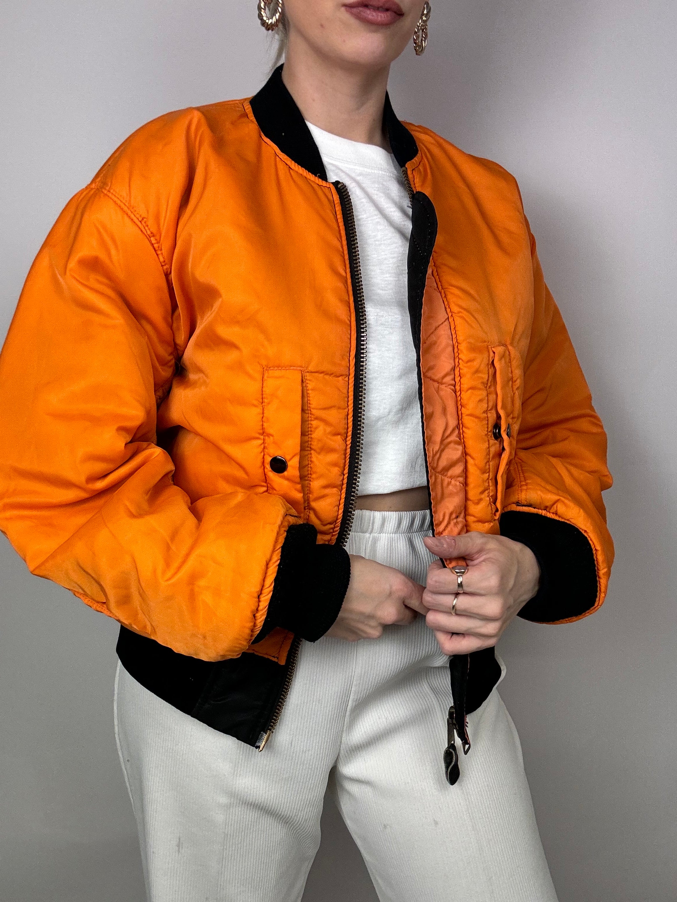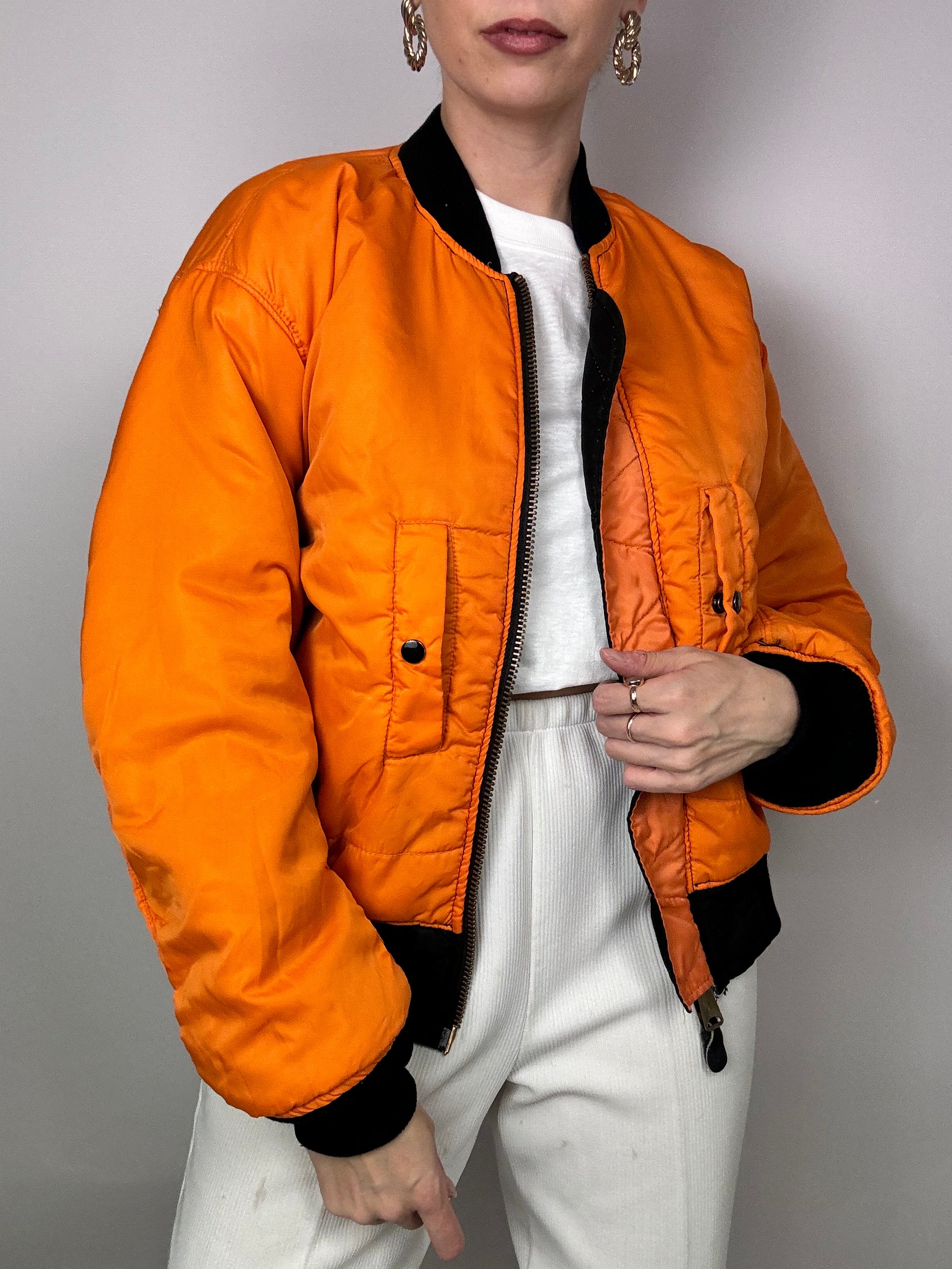 Bomber vintage réversible noir et orange vintage