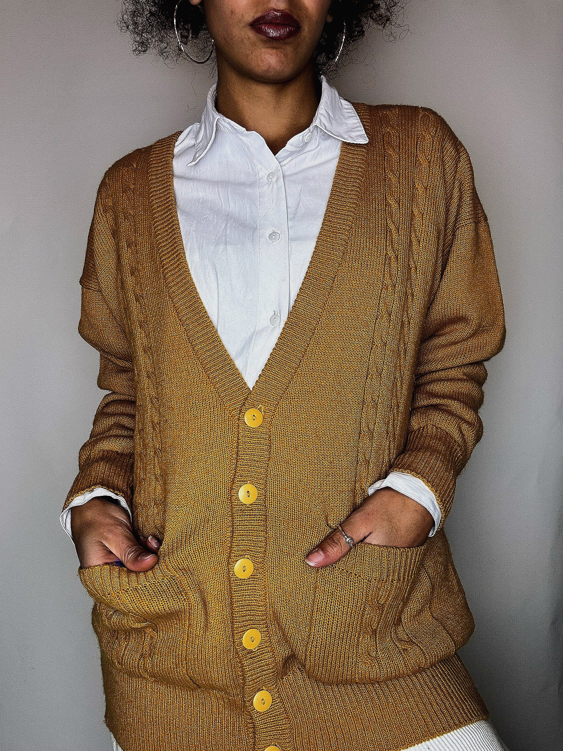 Cardigan à boutons moutarde M vintage