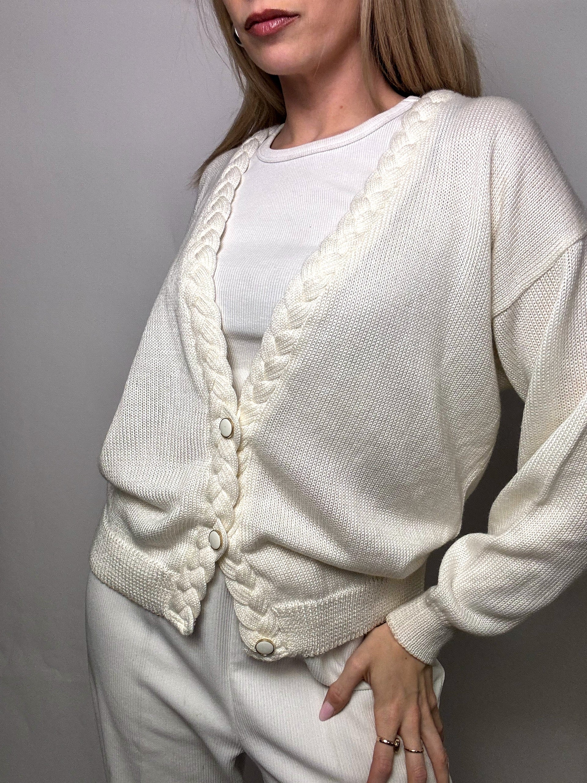 Cardigan à col tressé blanc M vintage