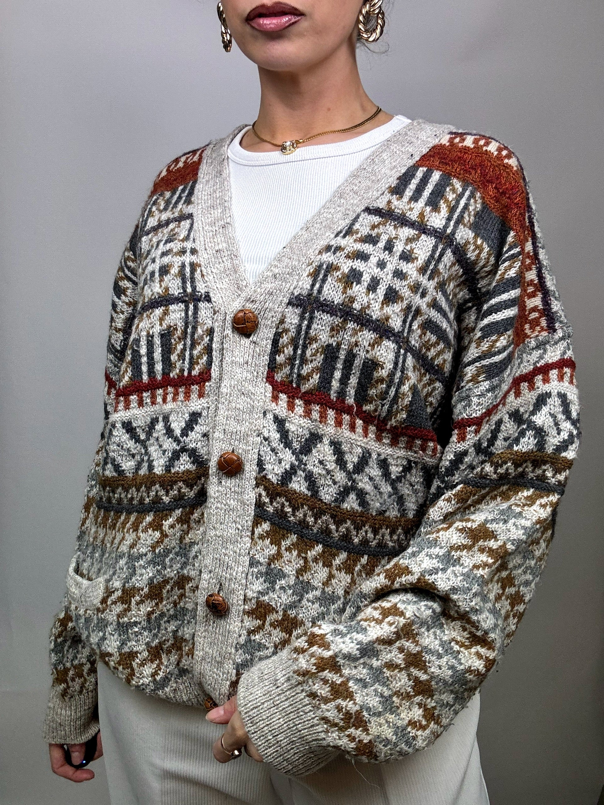 Cardigan à motif en laine L/XL Vintage