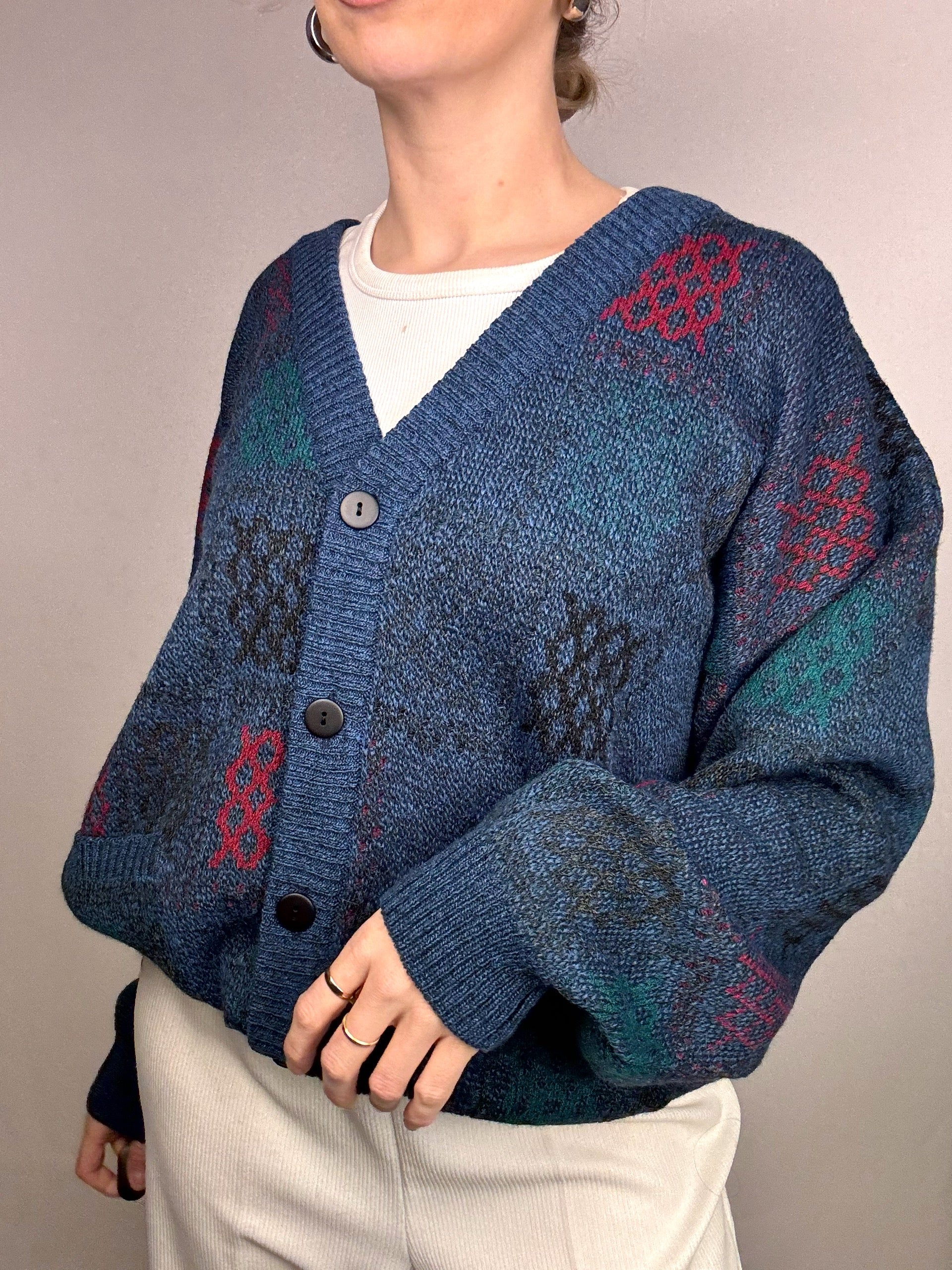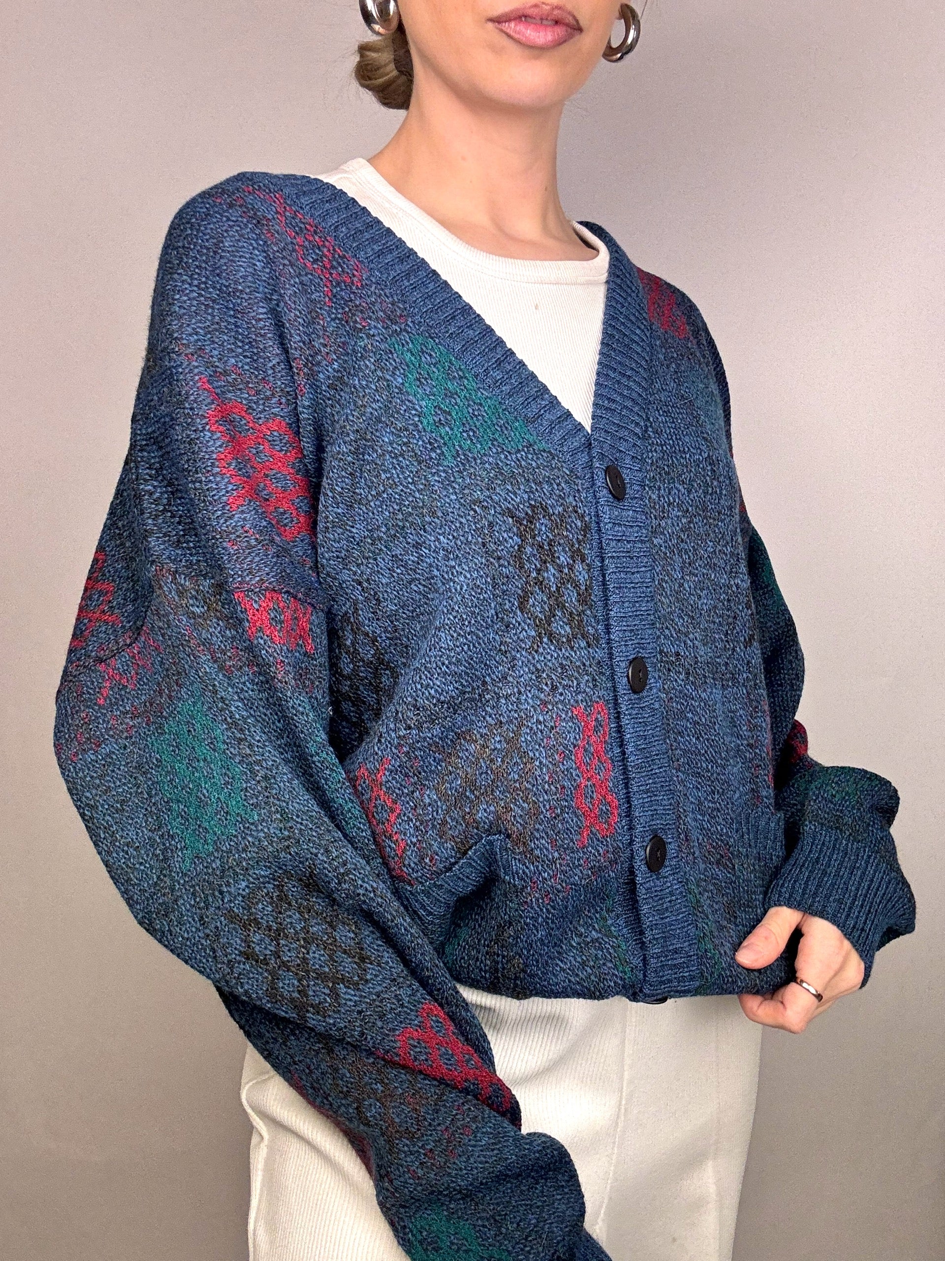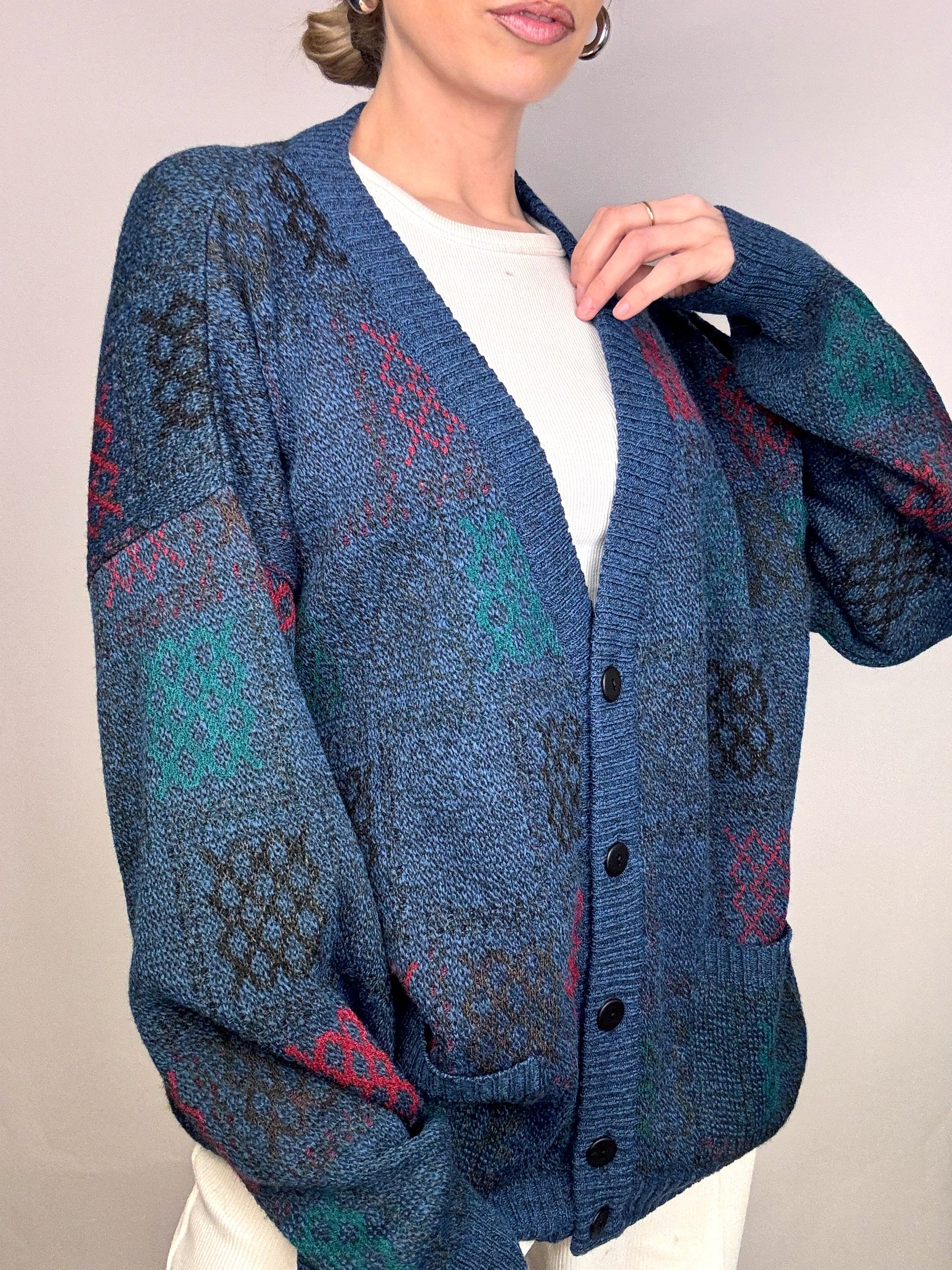 Cardigan bleu à motifs M vintage