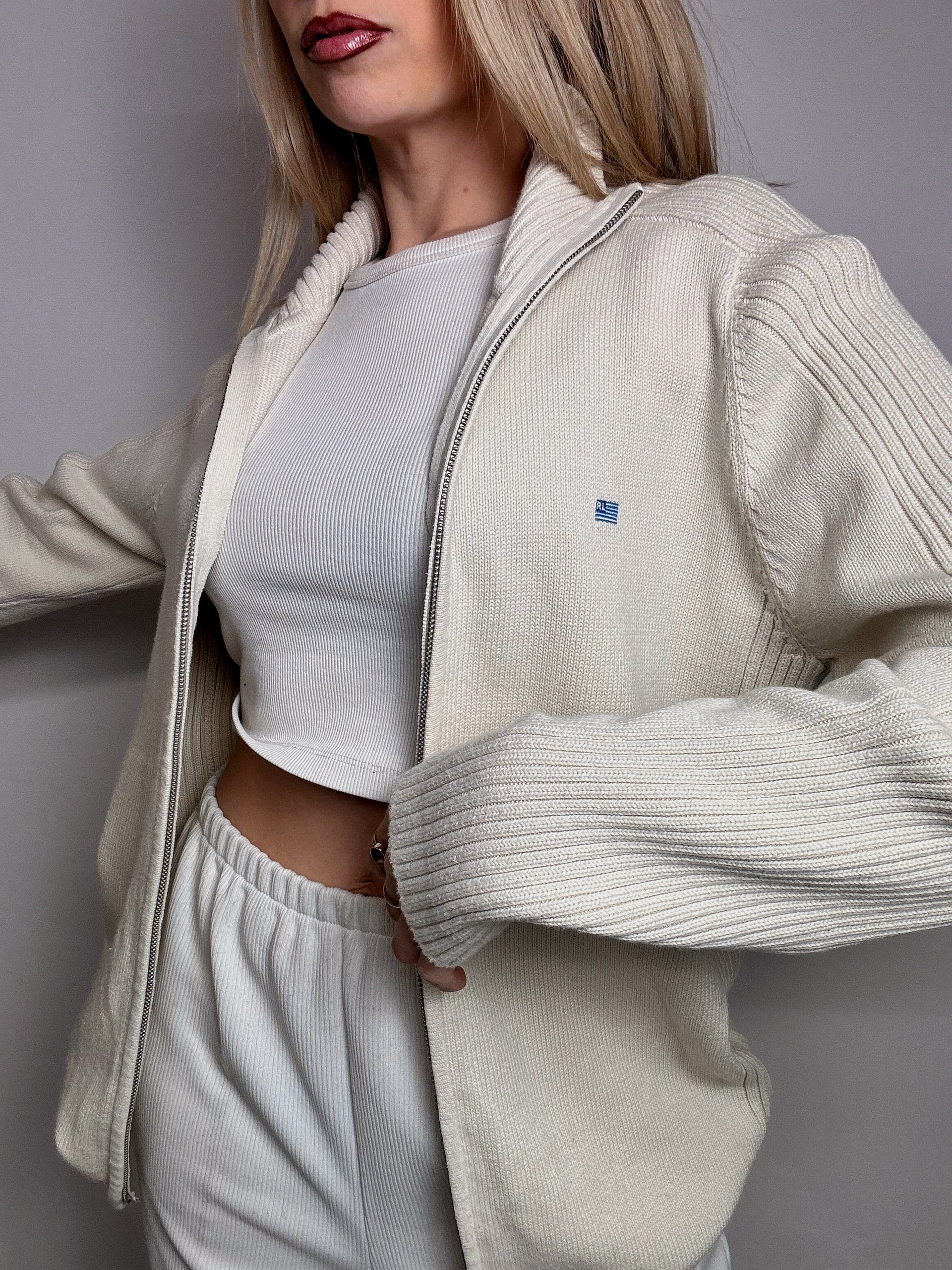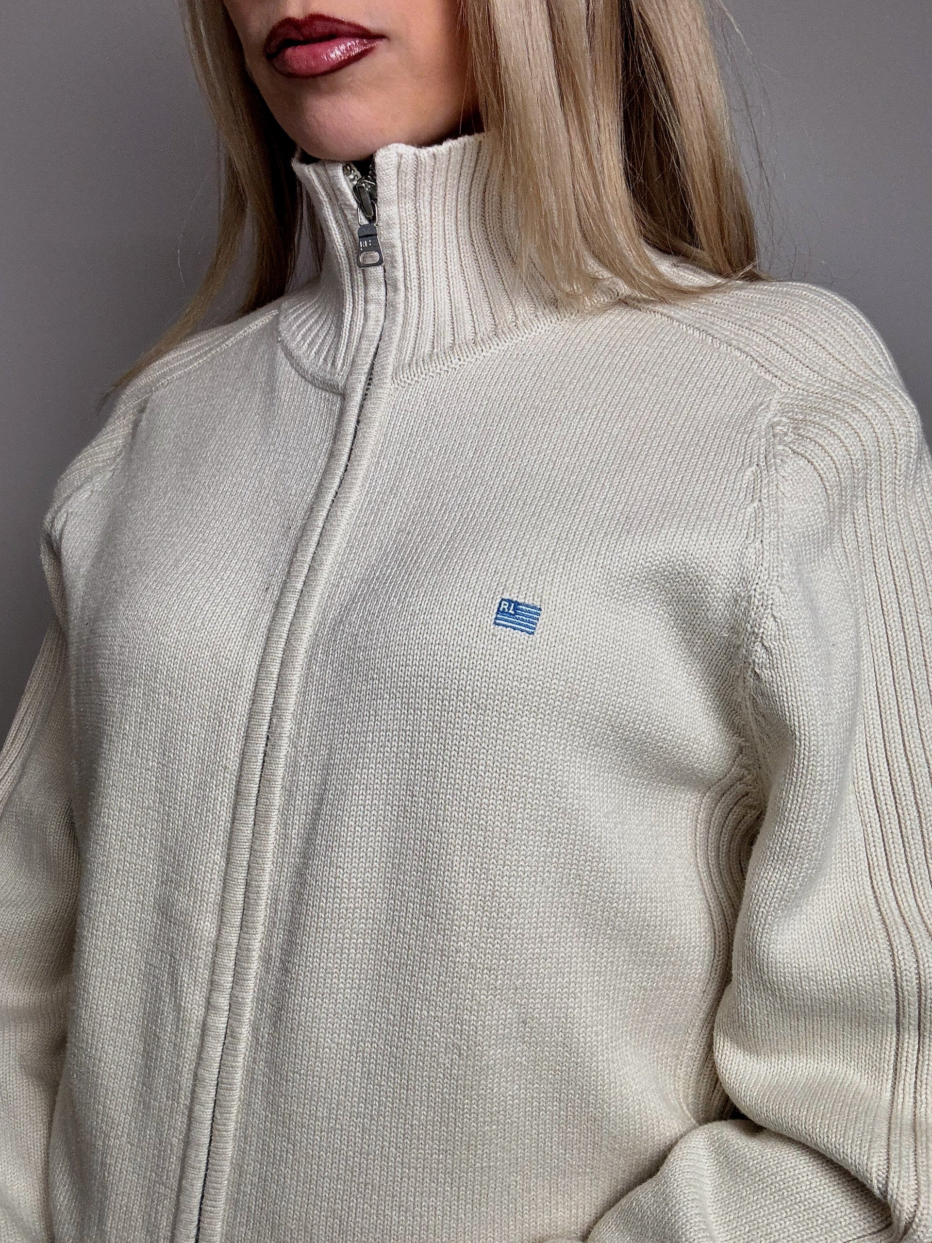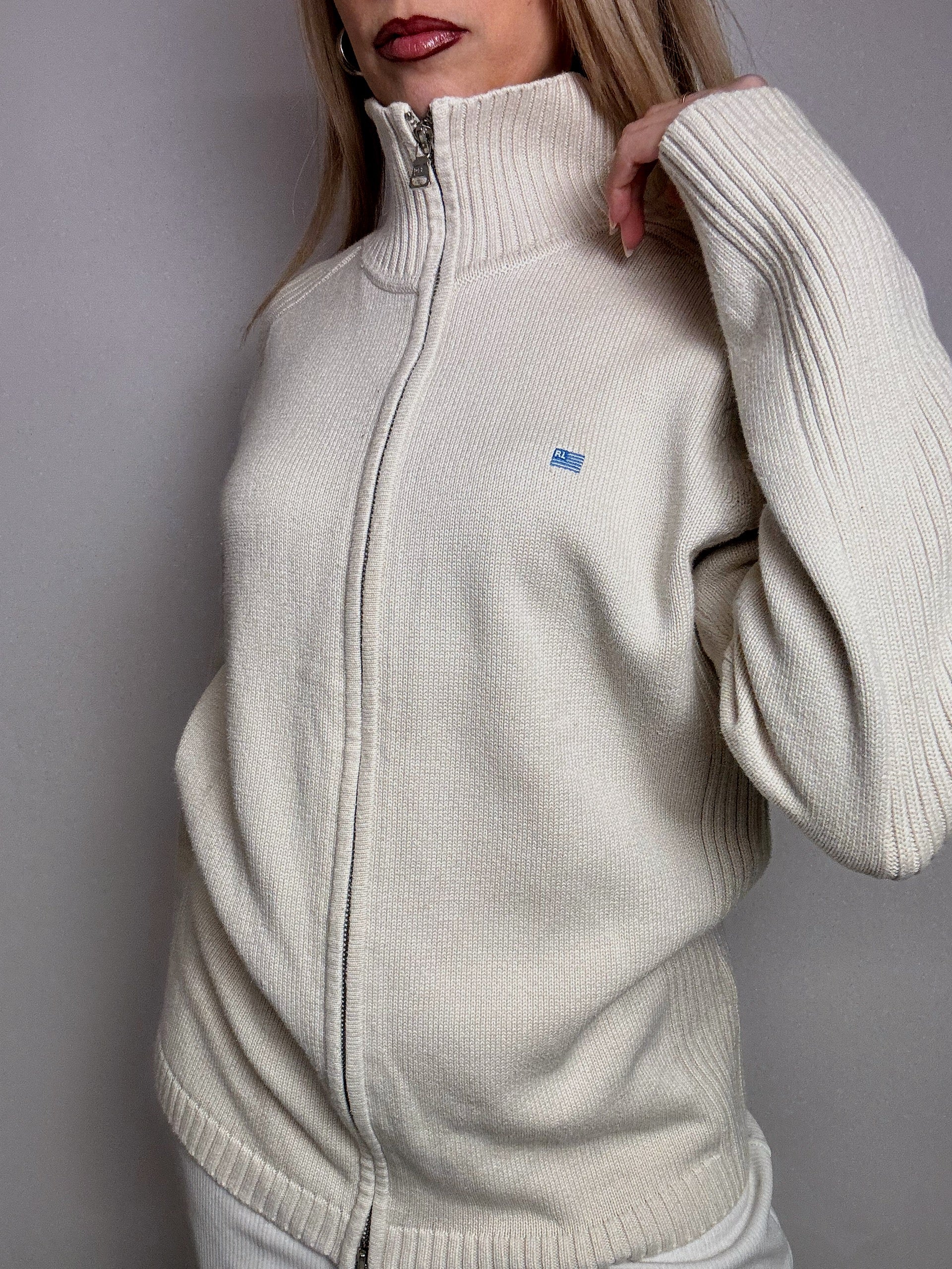 Cardigan crème à zip RALPH LAUREN L vintage