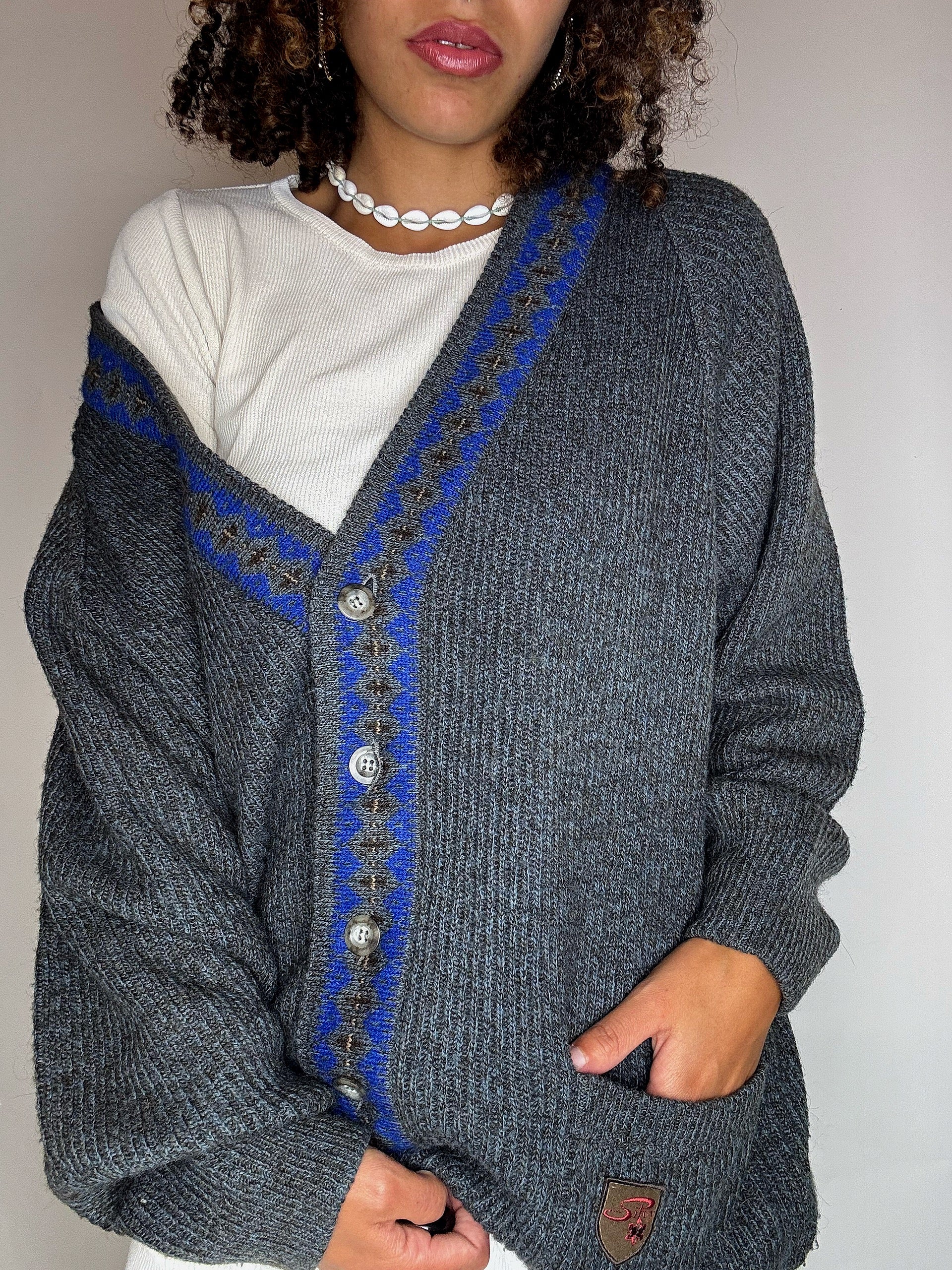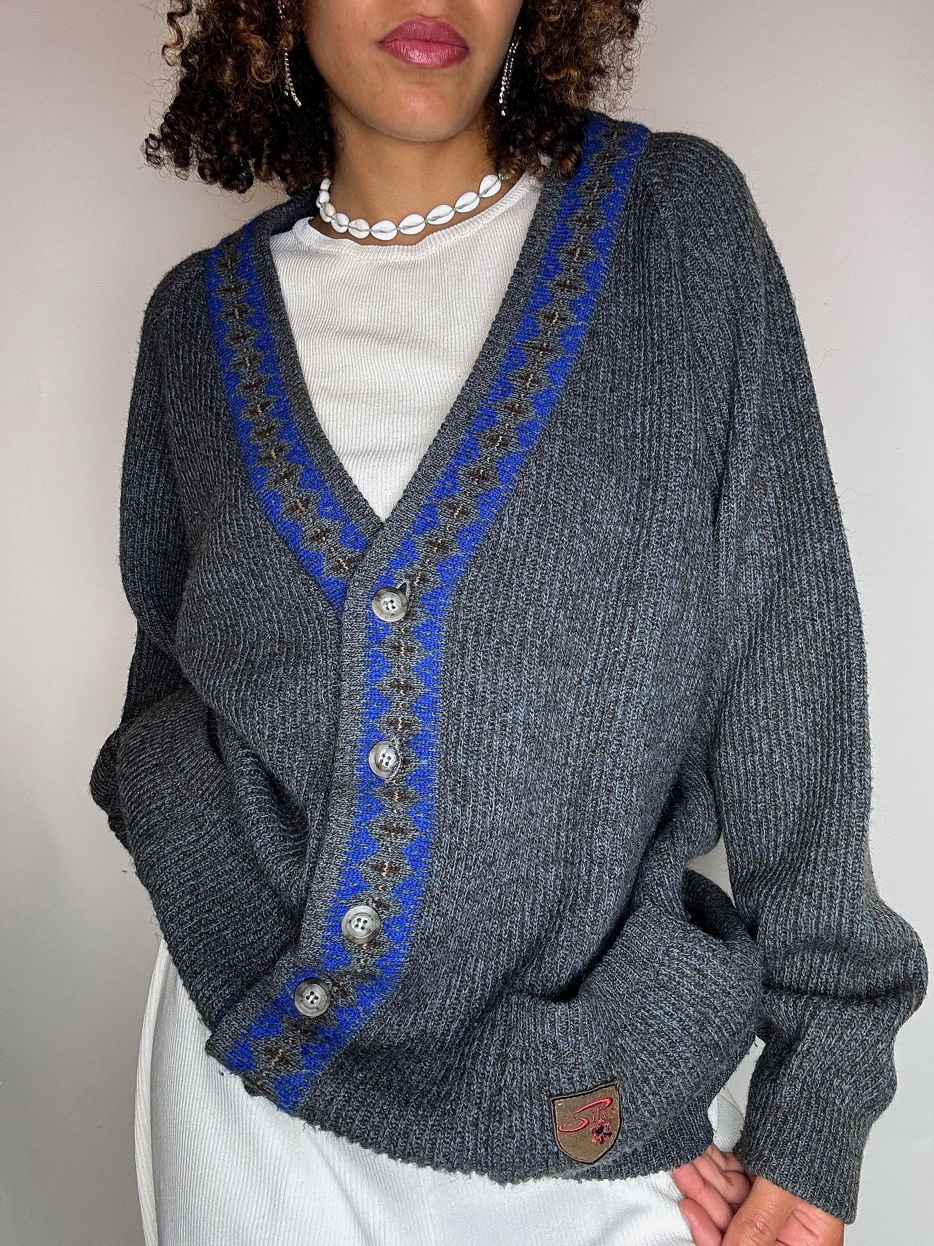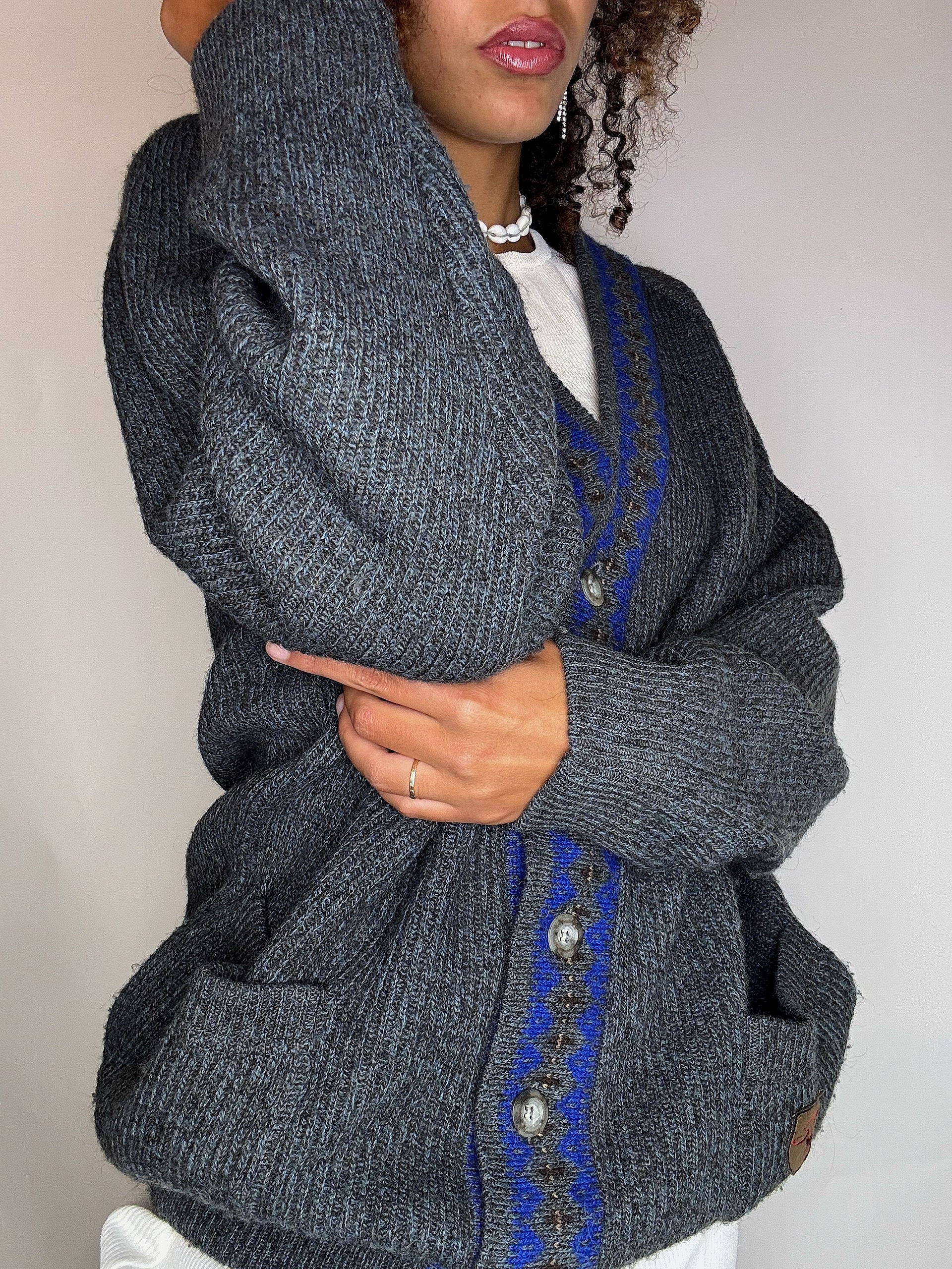 Cardigan en laine gris L/XL vintage