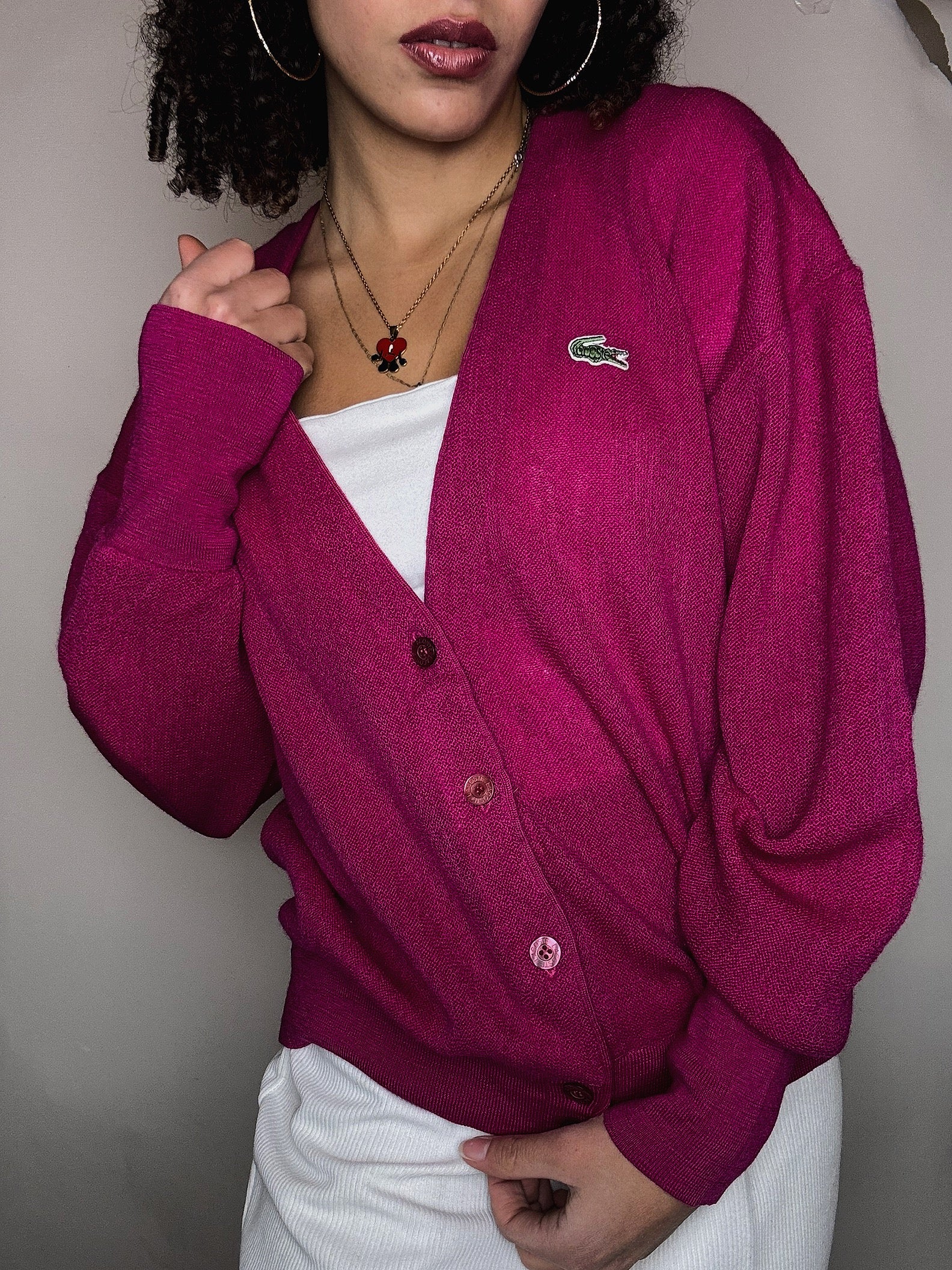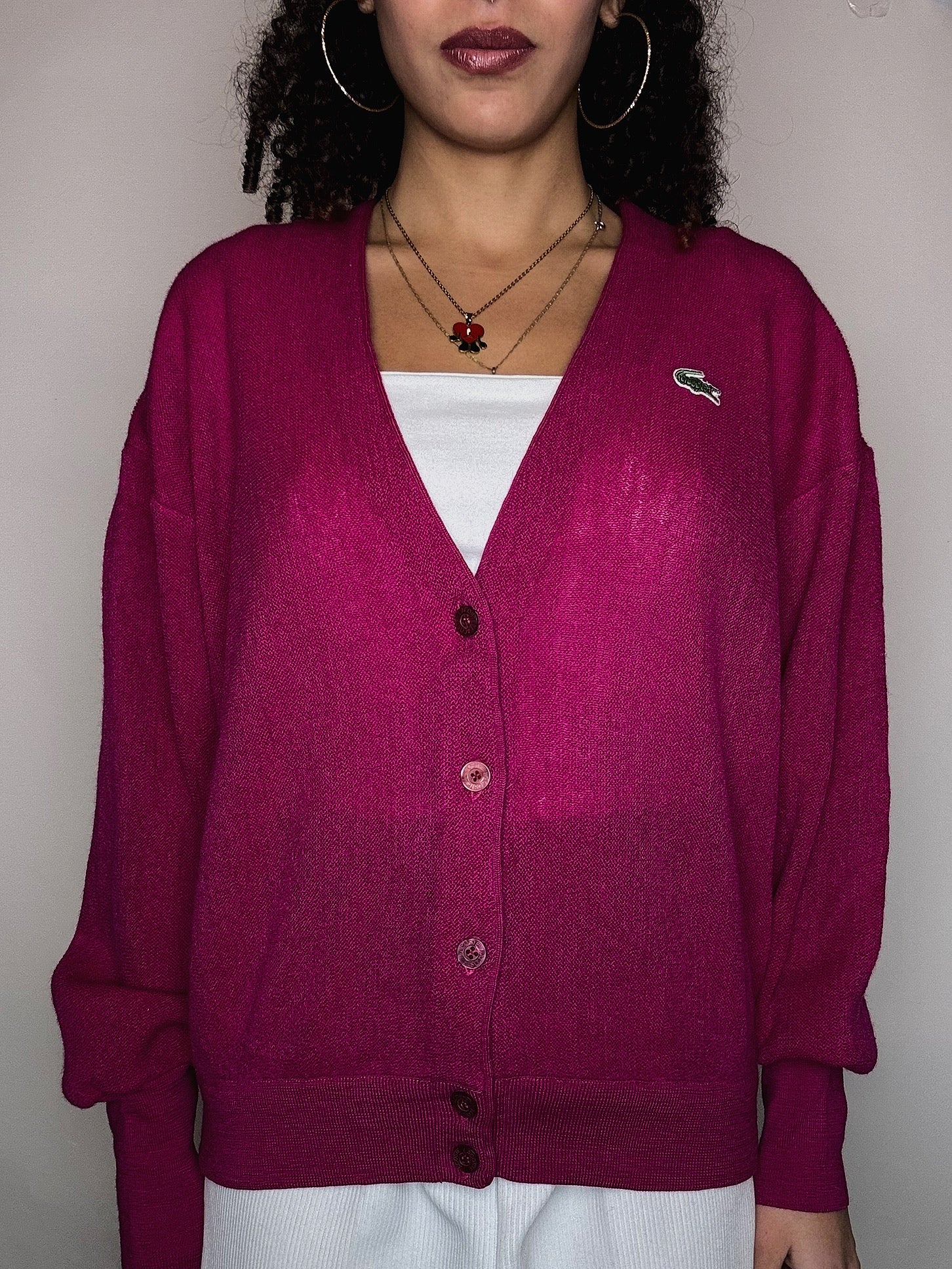 Cardigan en maille fuchsia Lacoste M vintage