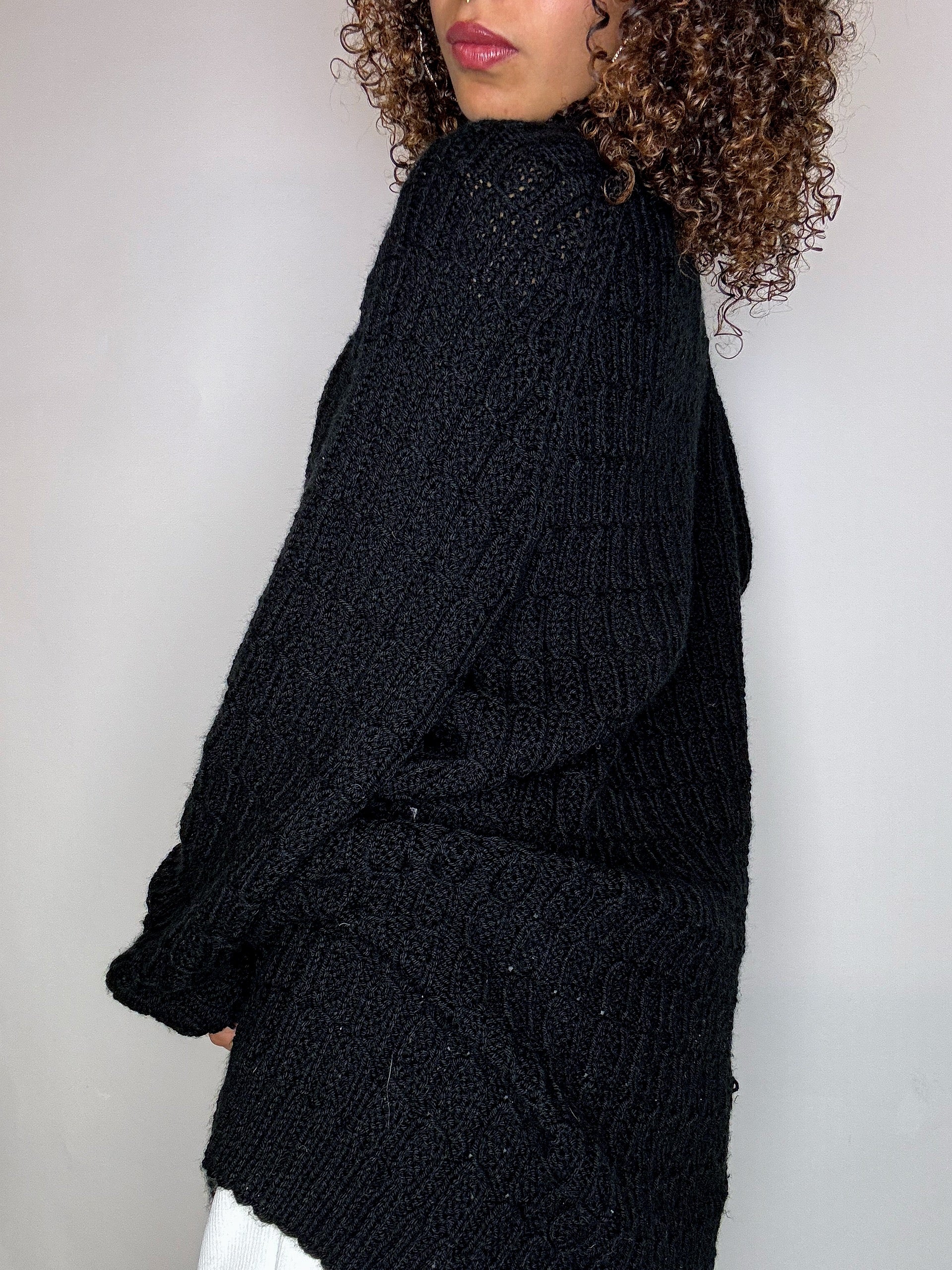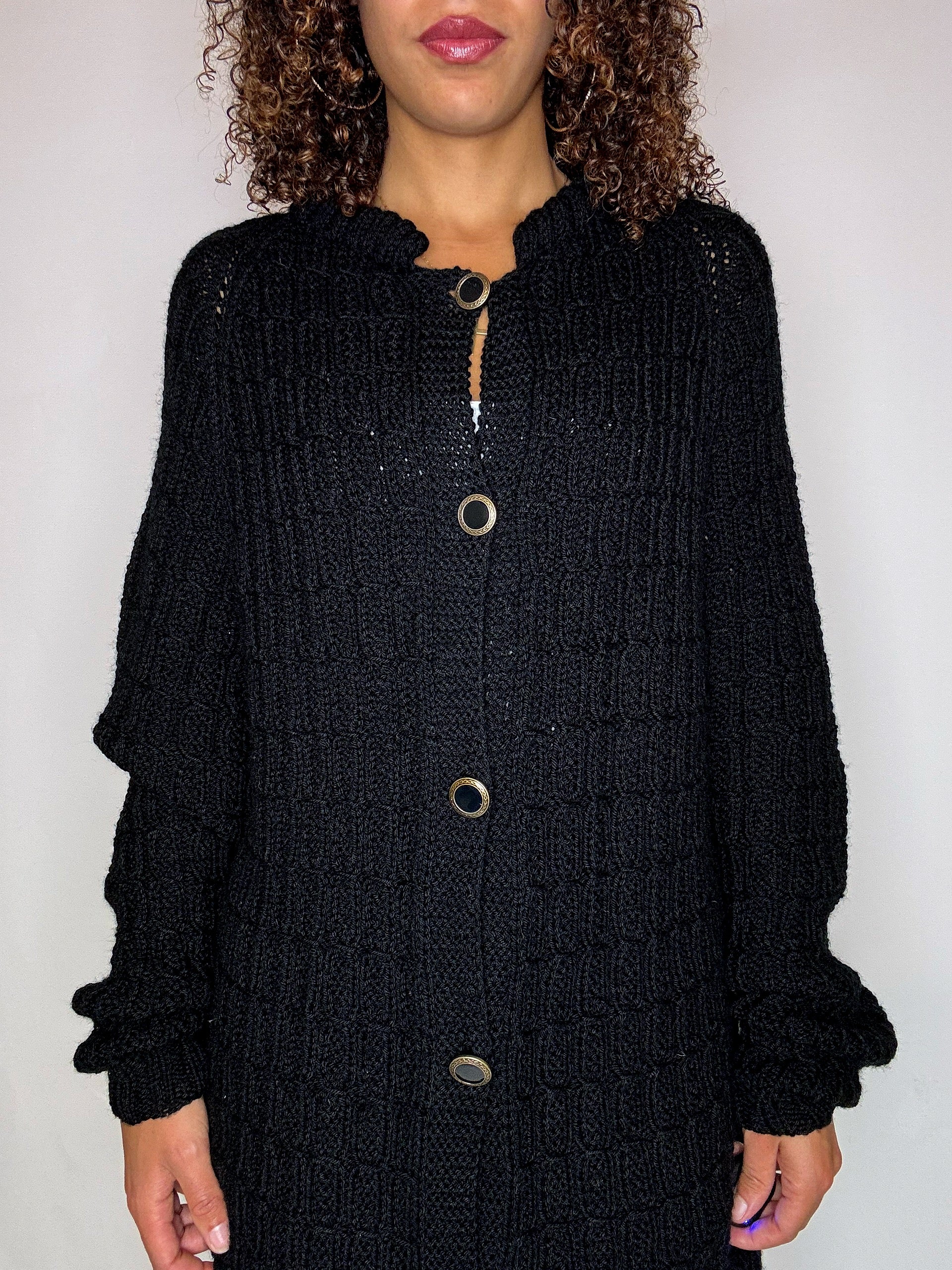 Cardigan en maille noir avec boutons bijoux XL vintage