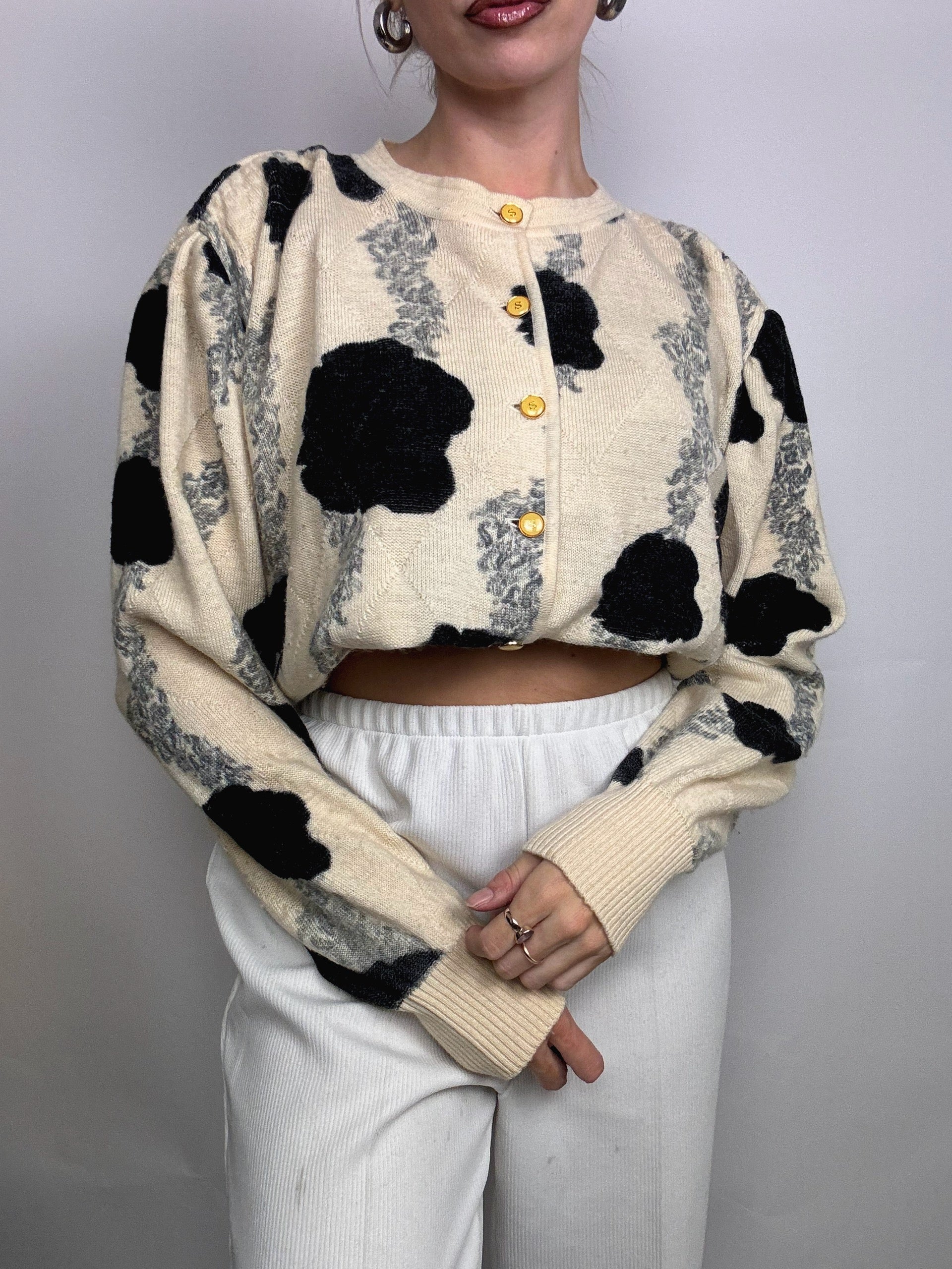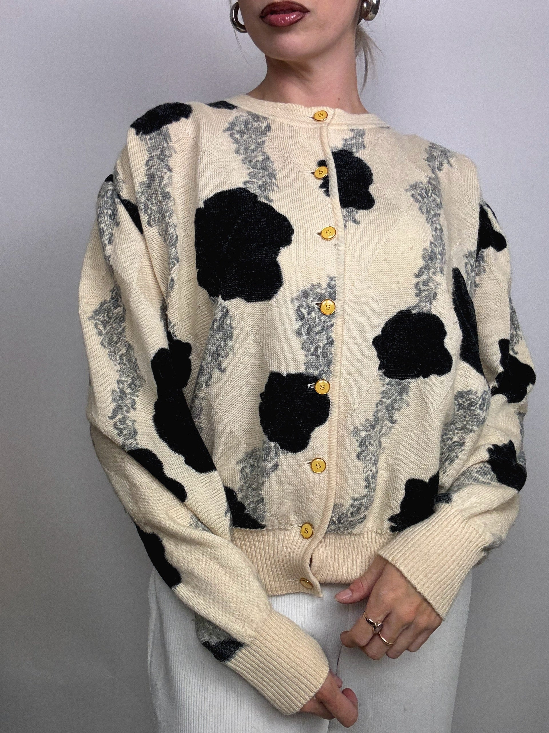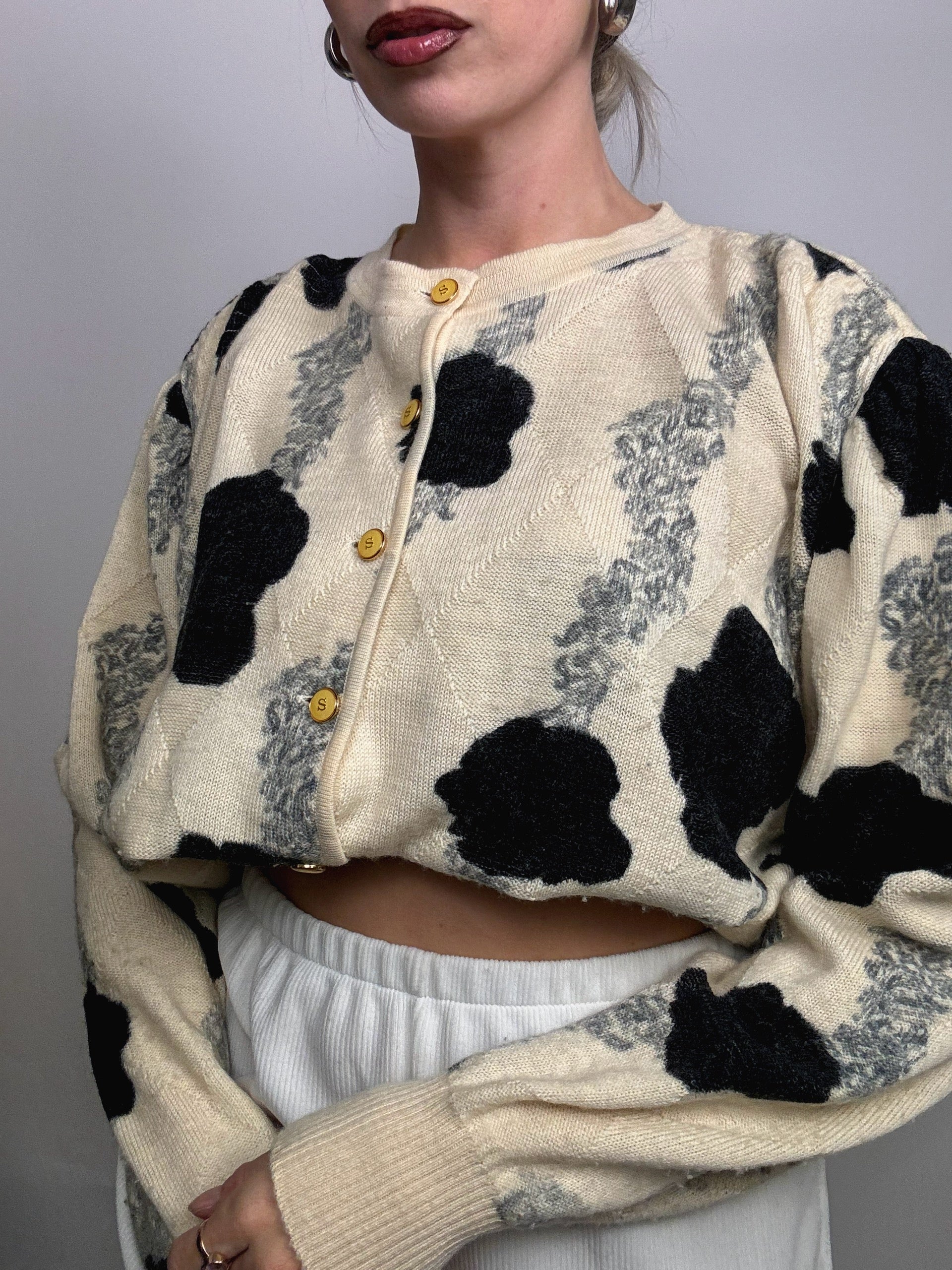 Cardigan crème en laine vintage