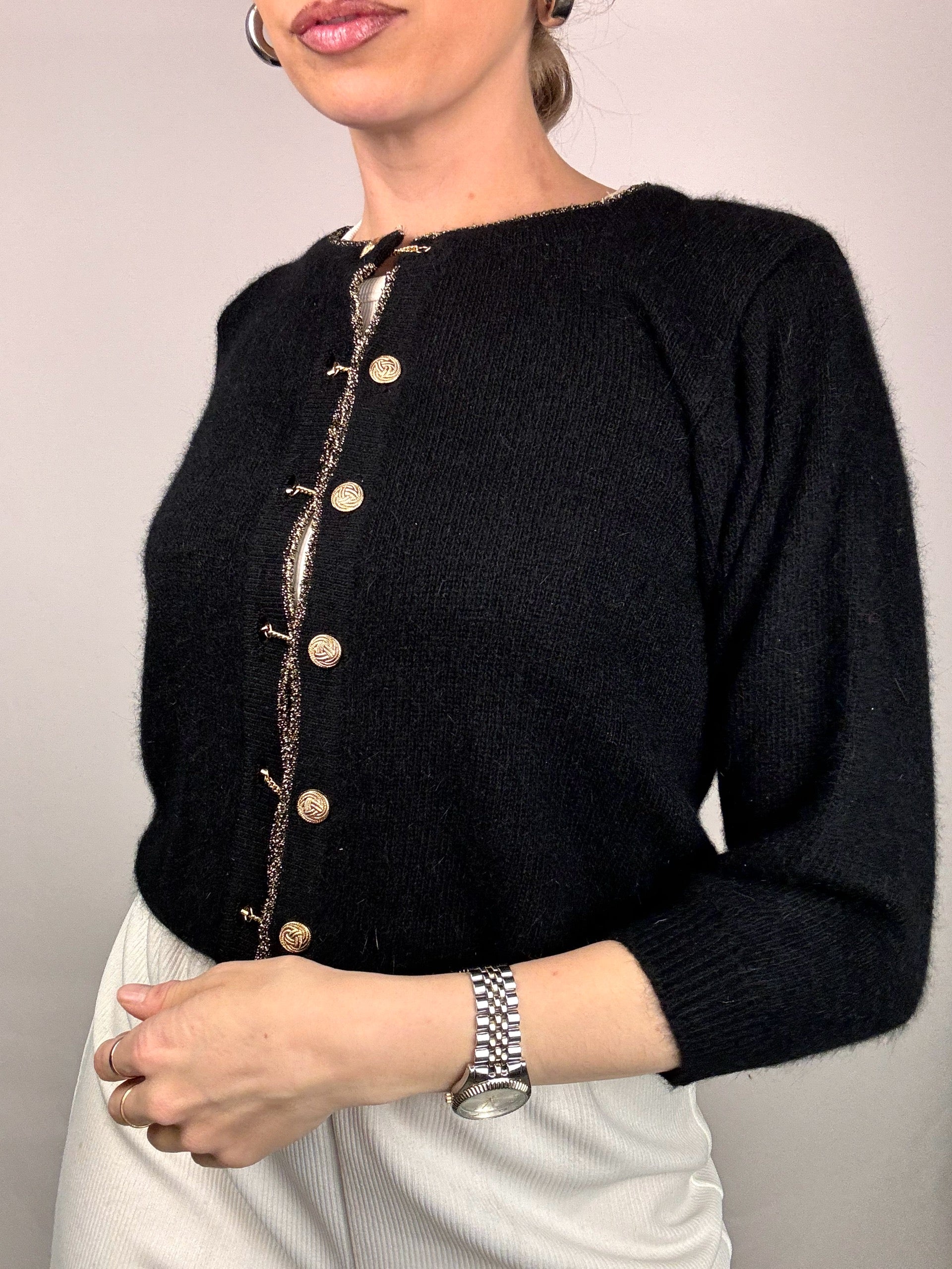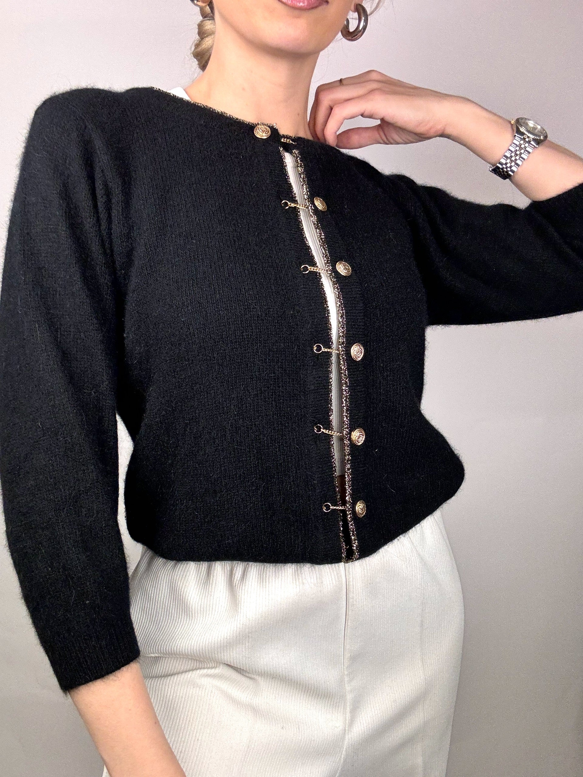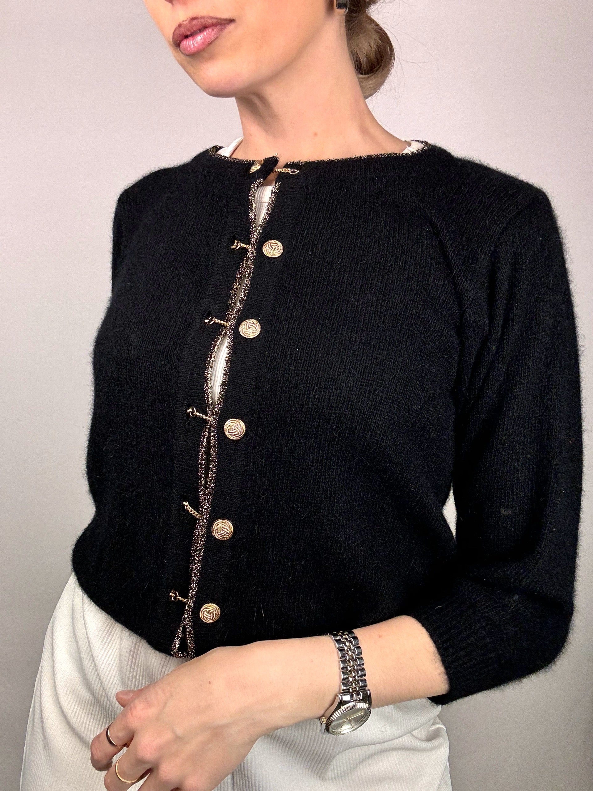 Cardigan noir avec boutonnière bijoux dorée CAROLL S vintage