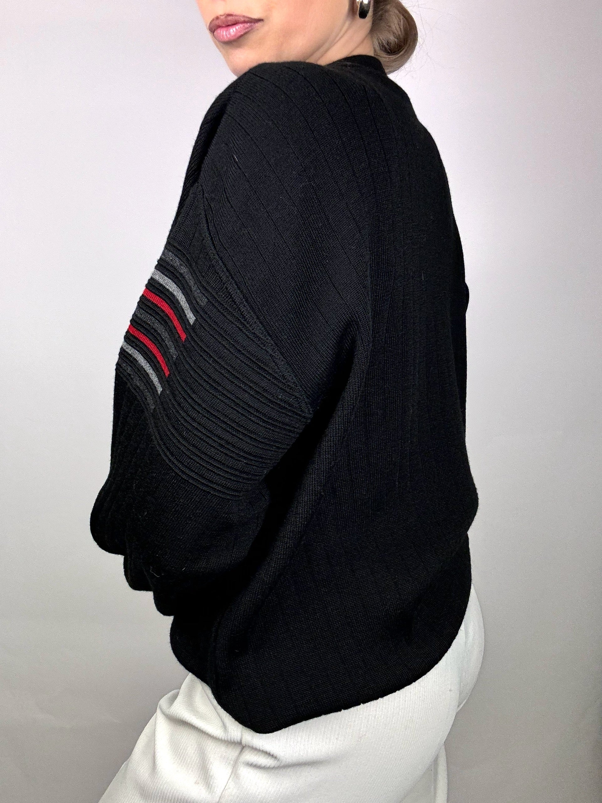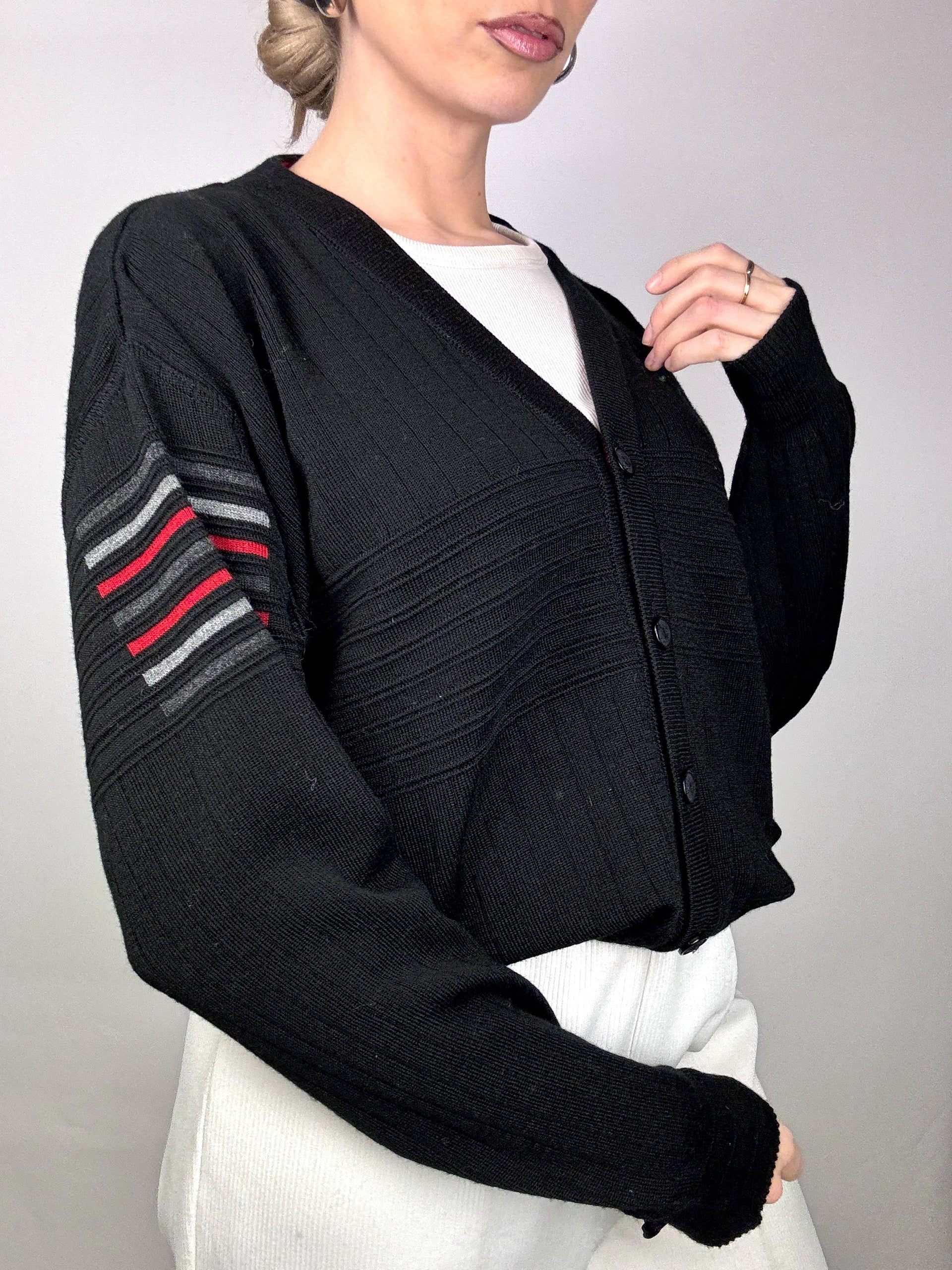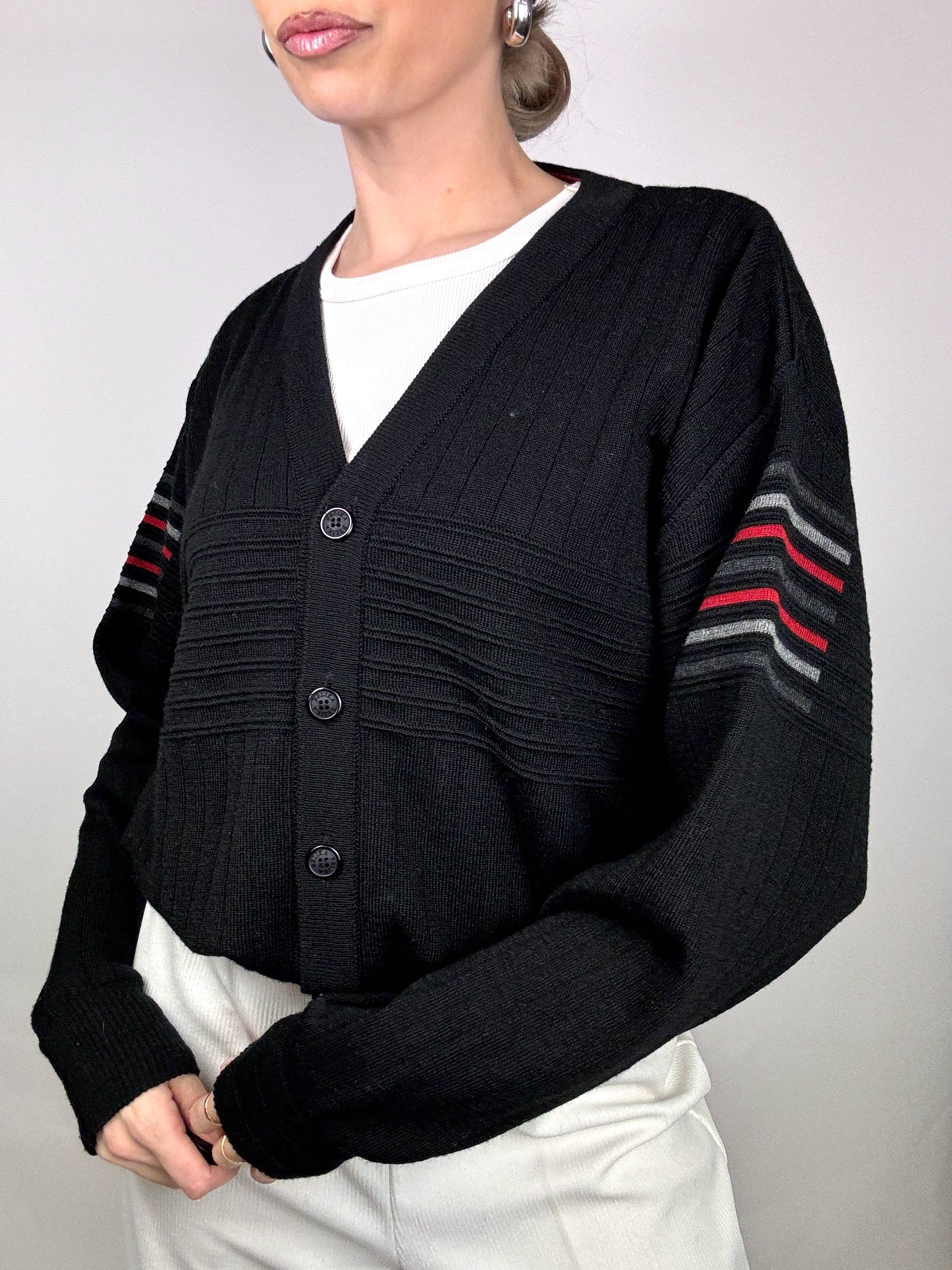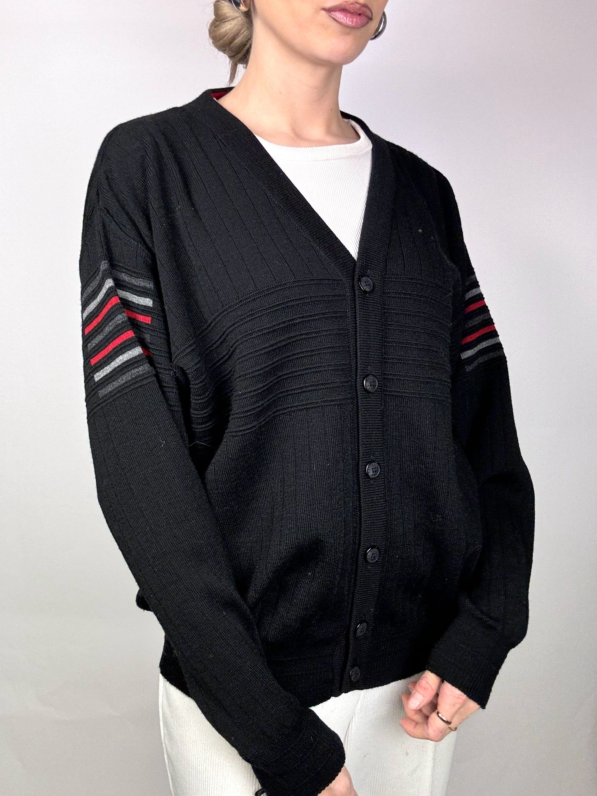 Cardigan noir avec rayures sur les manches L/XL vintage