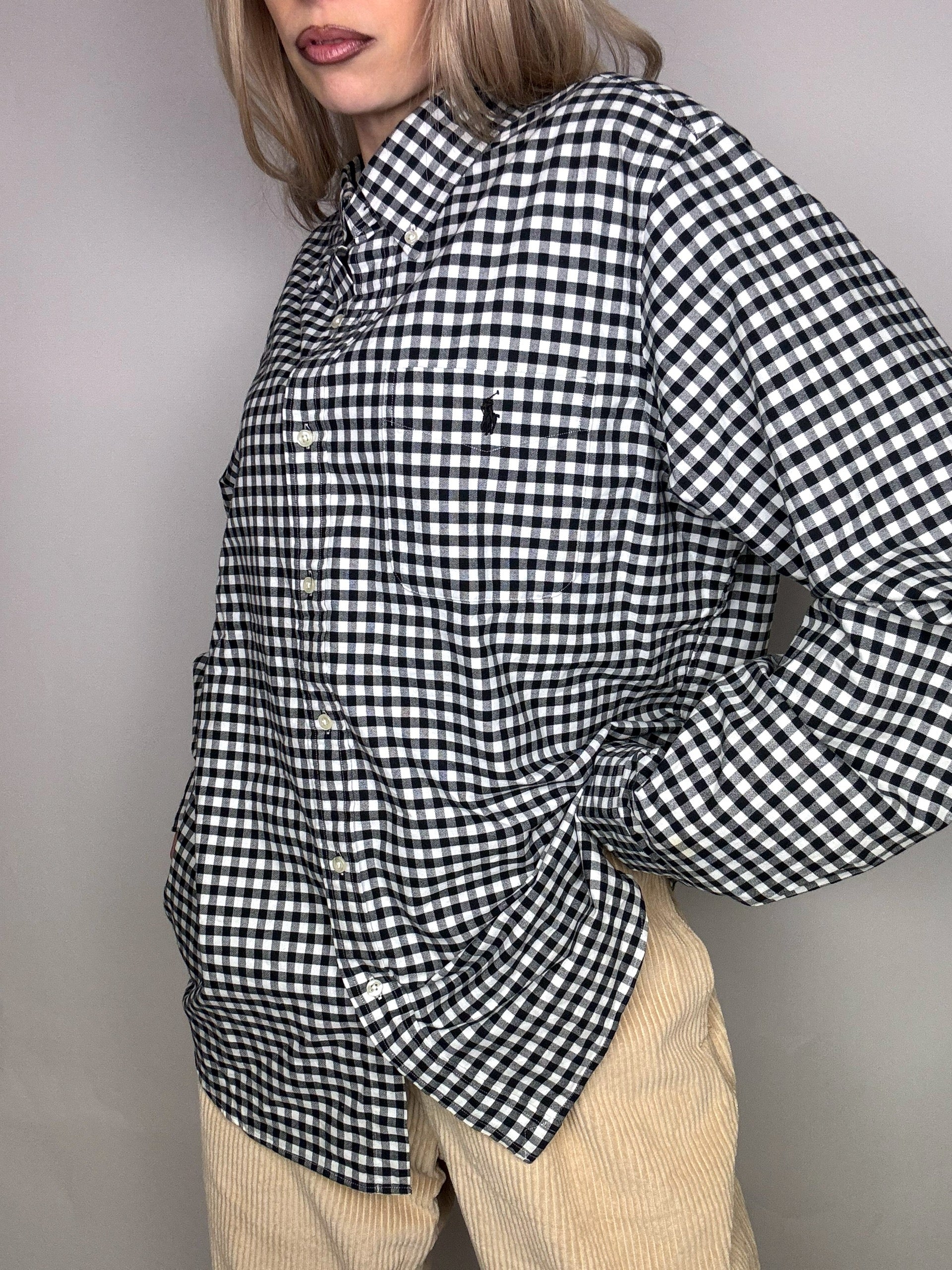 Chemise à carreaux noire et blanche RALPH LAUREN XL Vintage