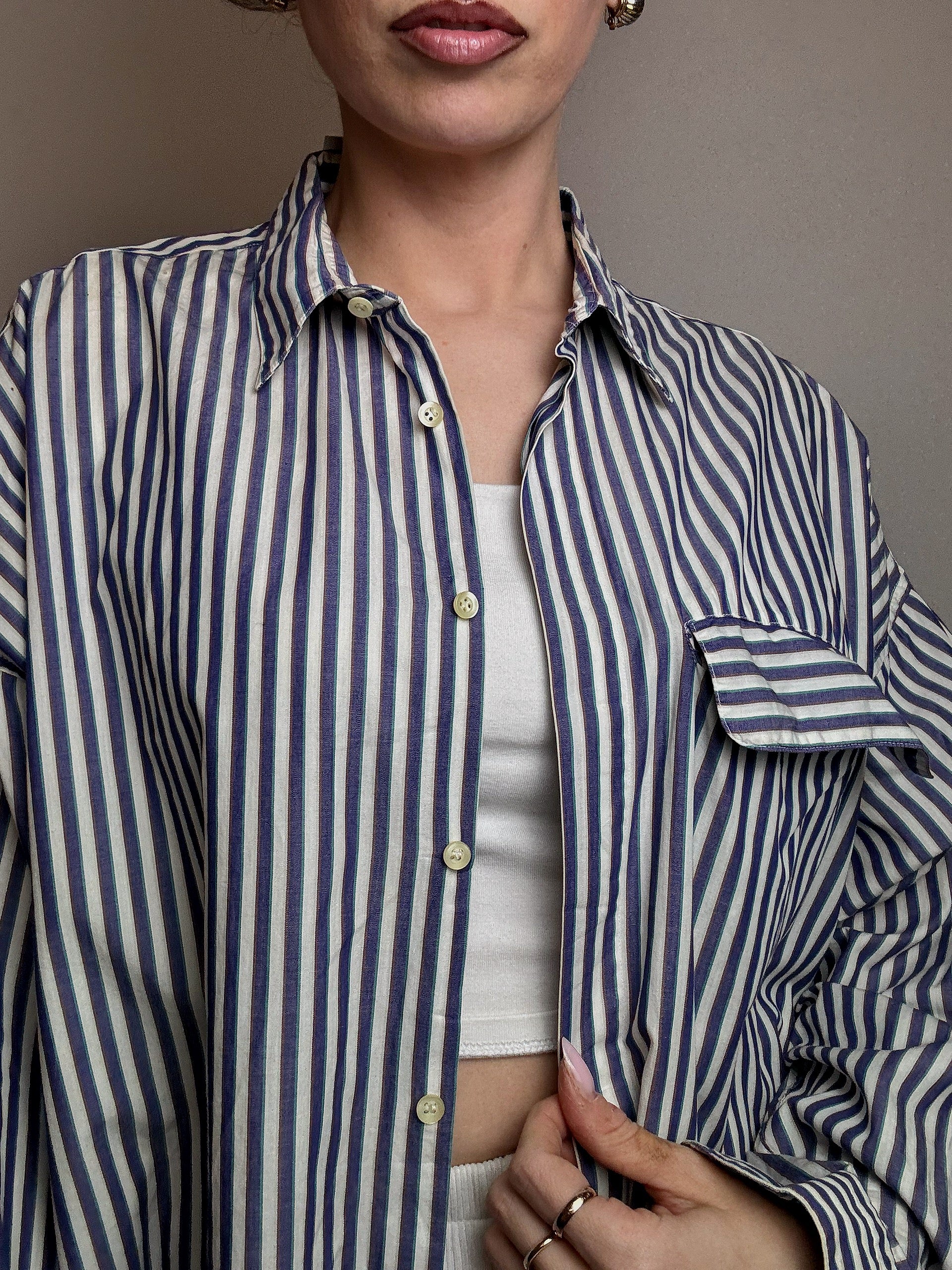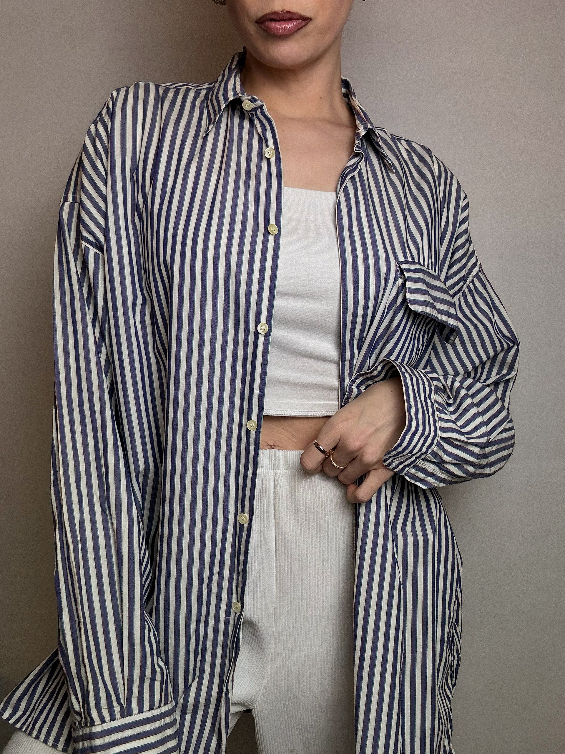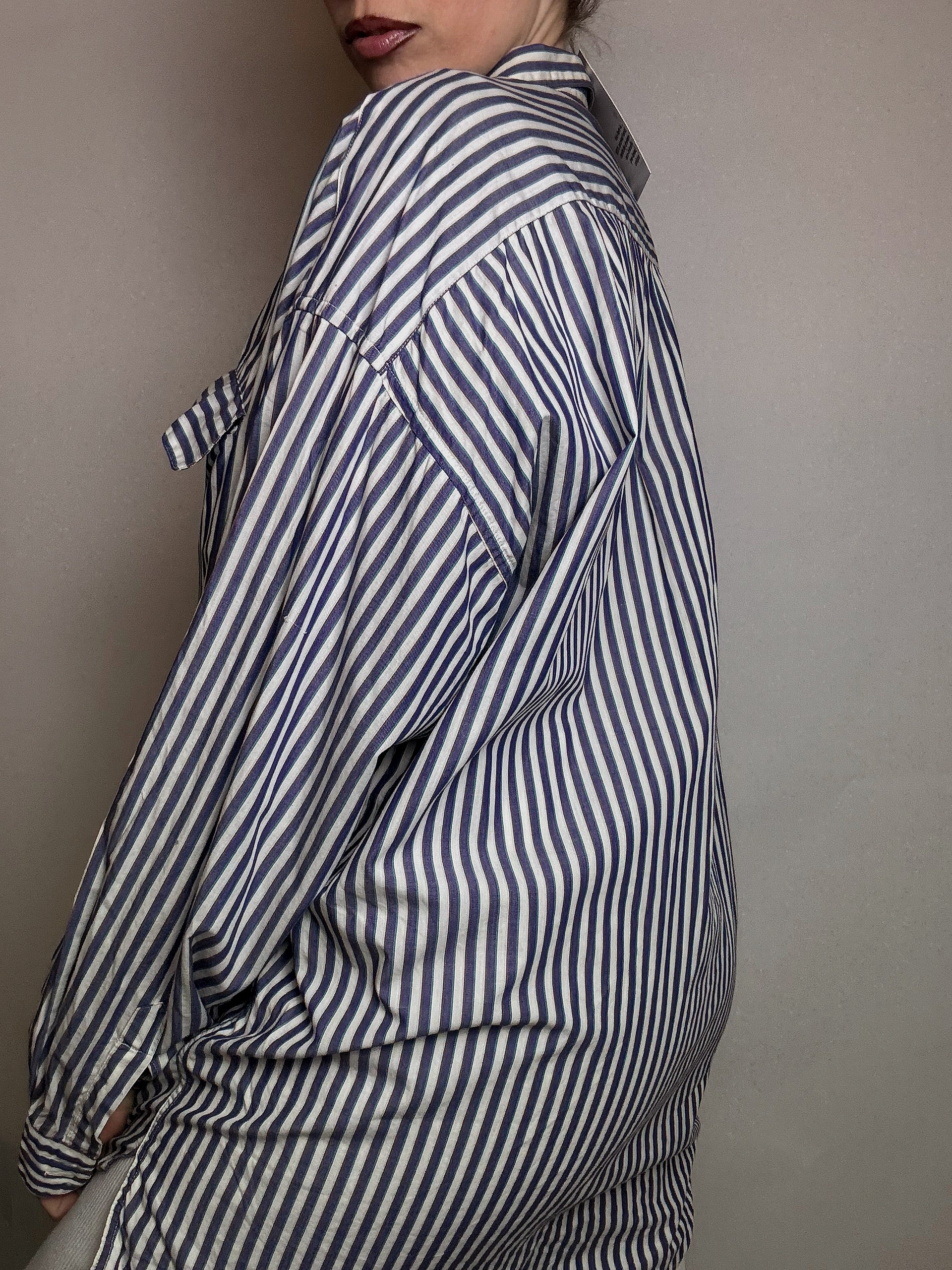Chemise en coton rayée blanche et marine M vintage