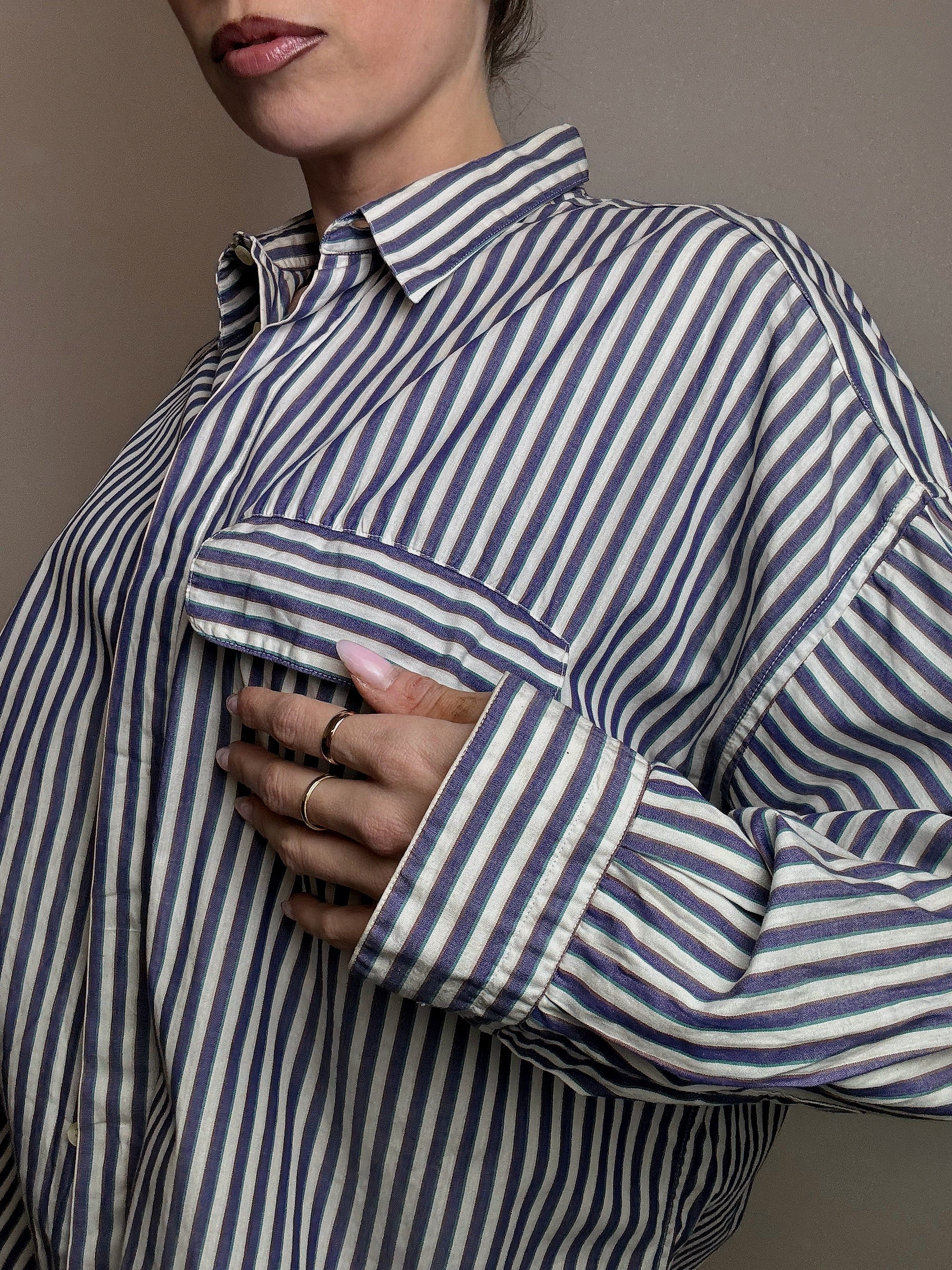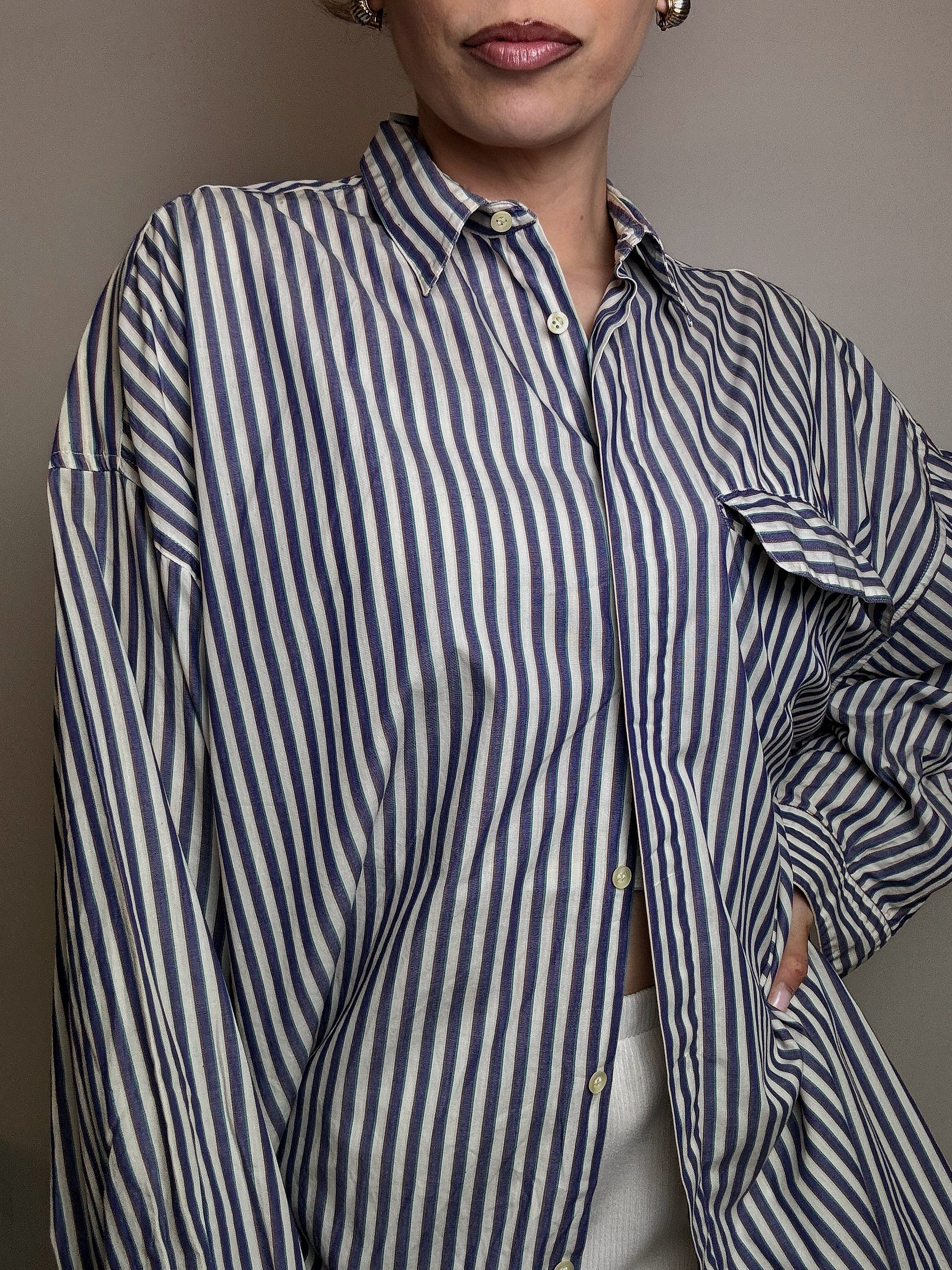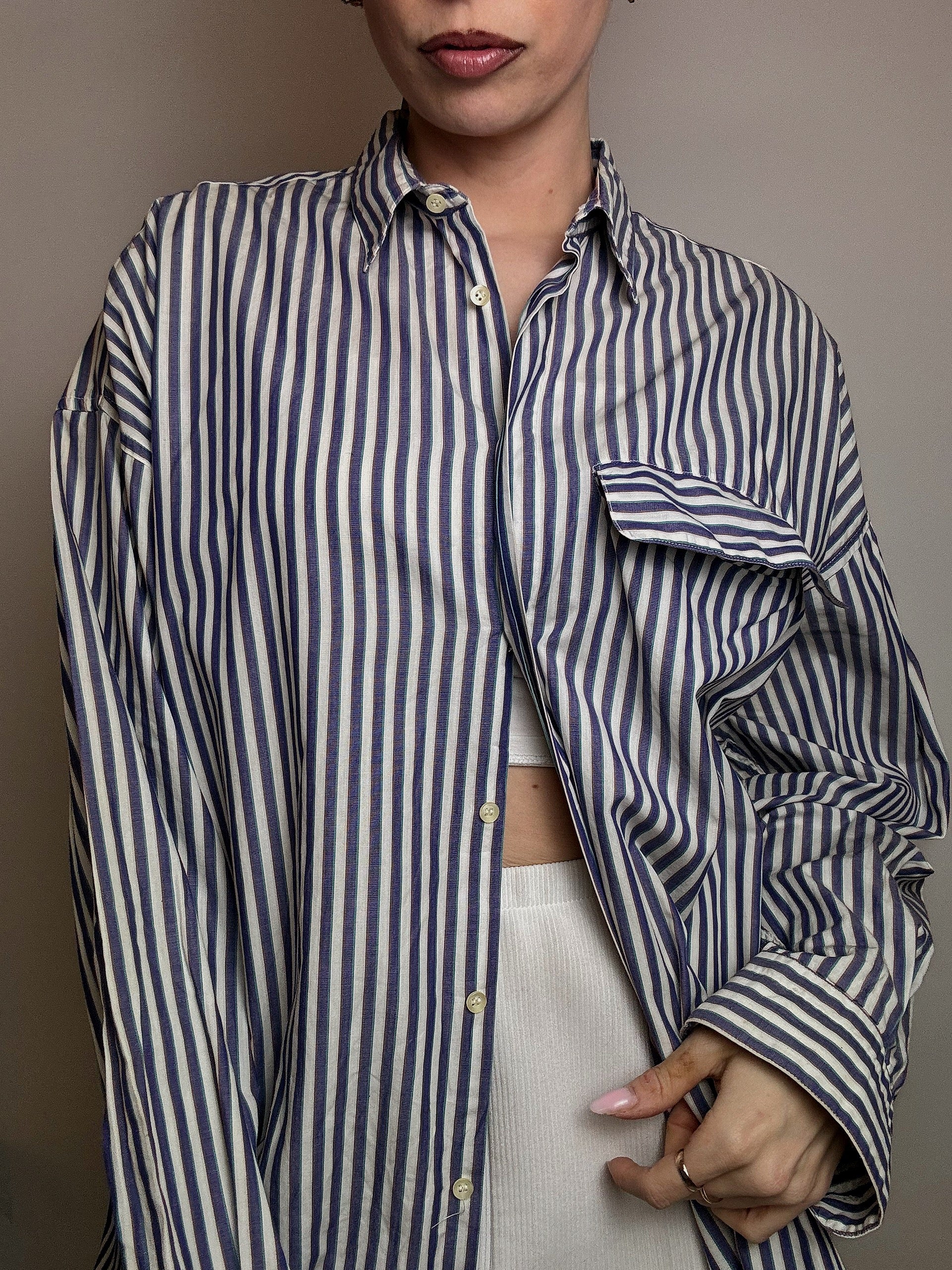 Chemise en coton rayée blanche et marine M vintage